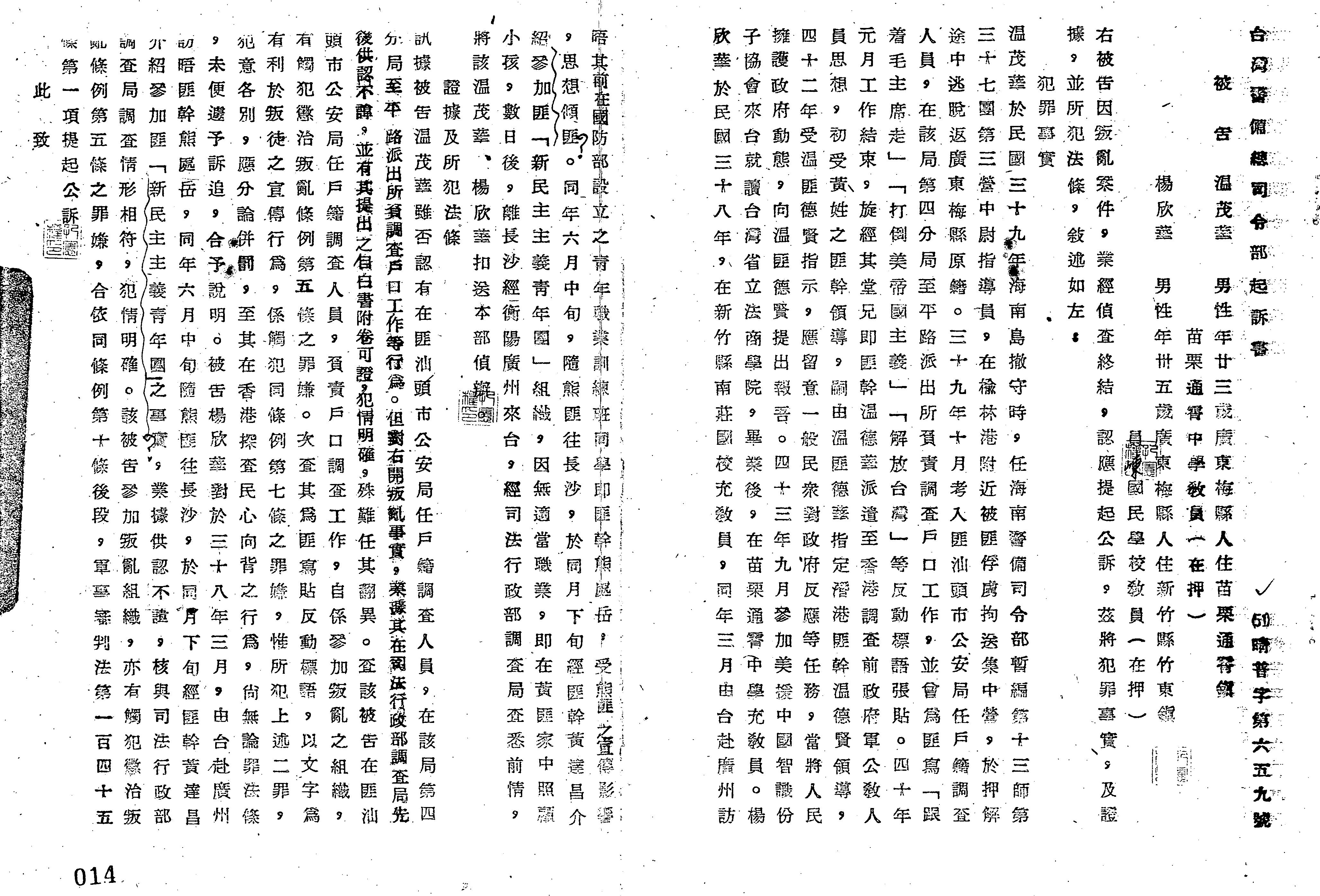 裁判書主文/要旨:溫茂華等因叛亂案件業經偵查終結認應提起公訴。