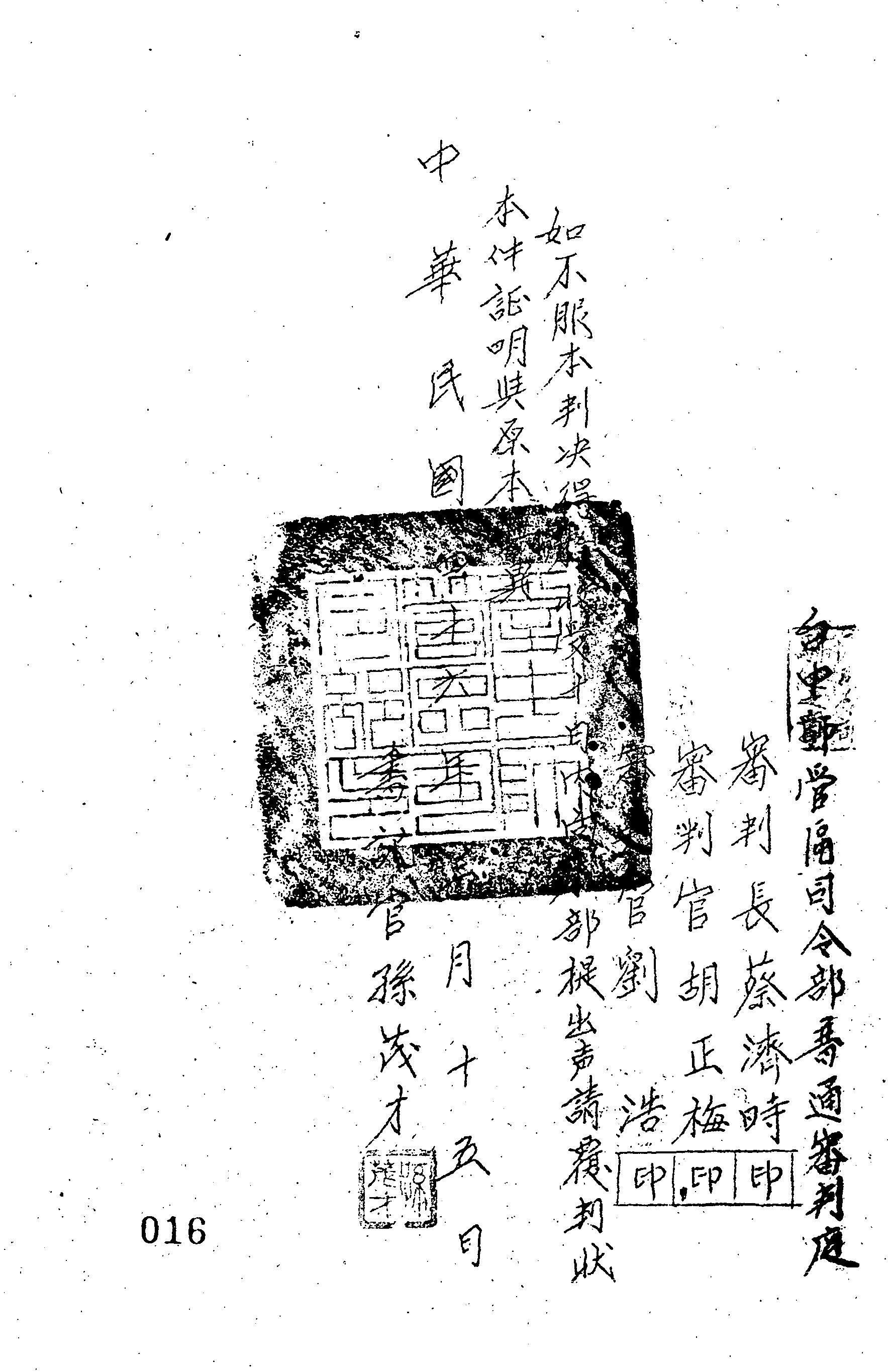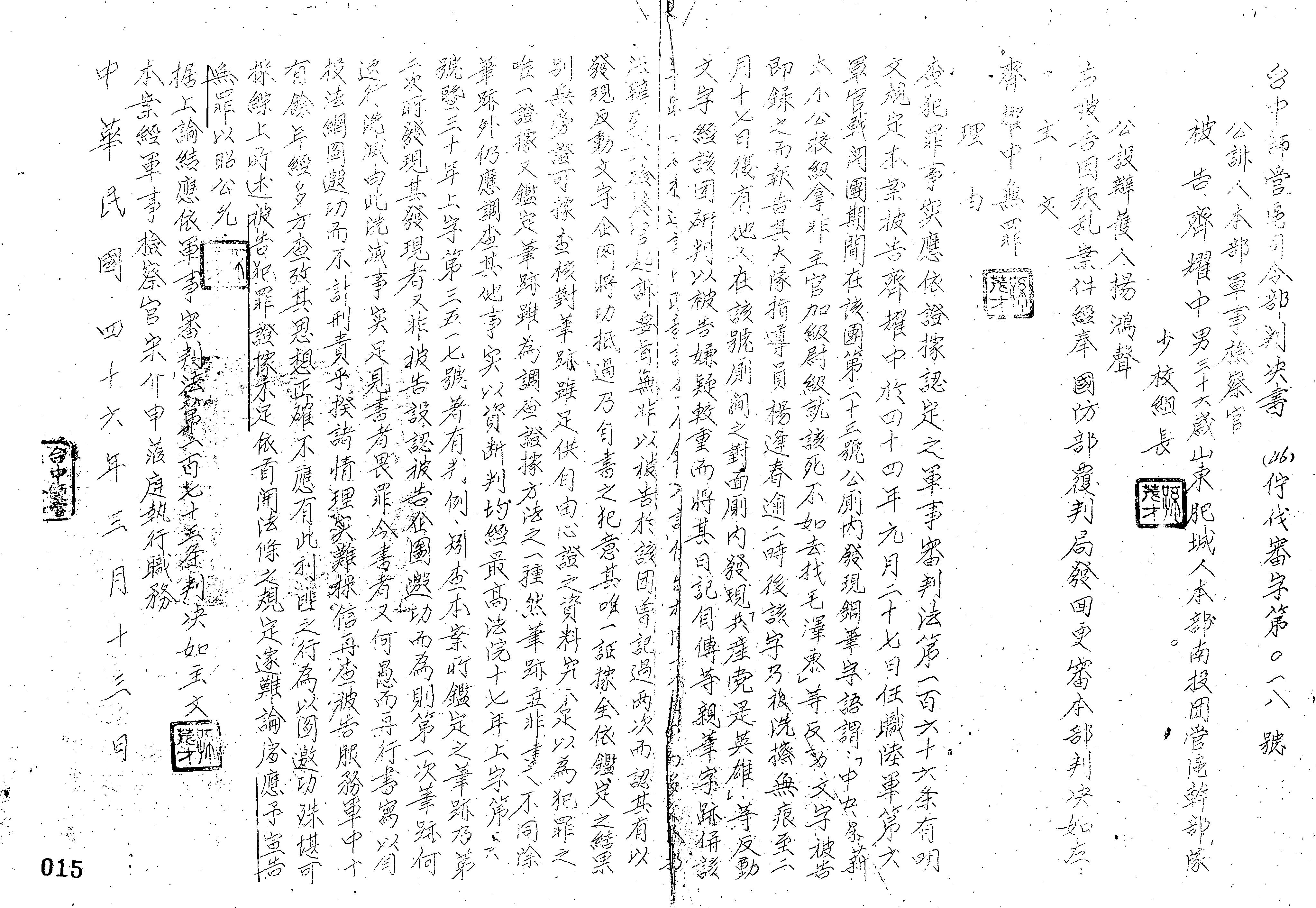 臺中師管區司令部46年佇伐審字第0018號判決書