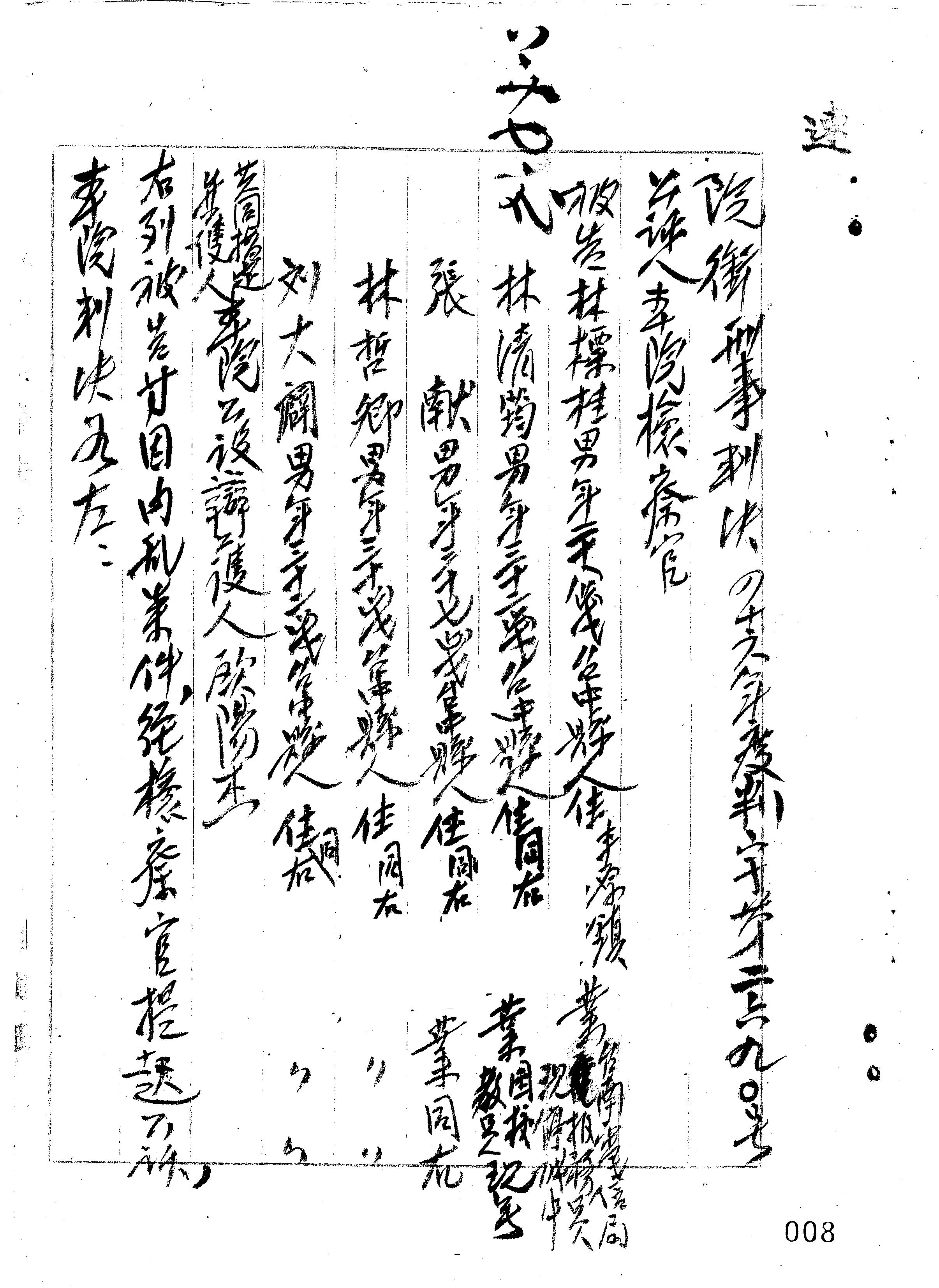 - 裁判書主文/要旨:林標桂、林清筠、張献、林哲卿、劉大闢「陰謀以非法之方法顛覆政府」,林標桂、林清筠各處有期徒刑1年6月,褫奪公權1年;張獻、林哲卿、劉大闢各處有期徒刑1年2月,褫奪公權1年。