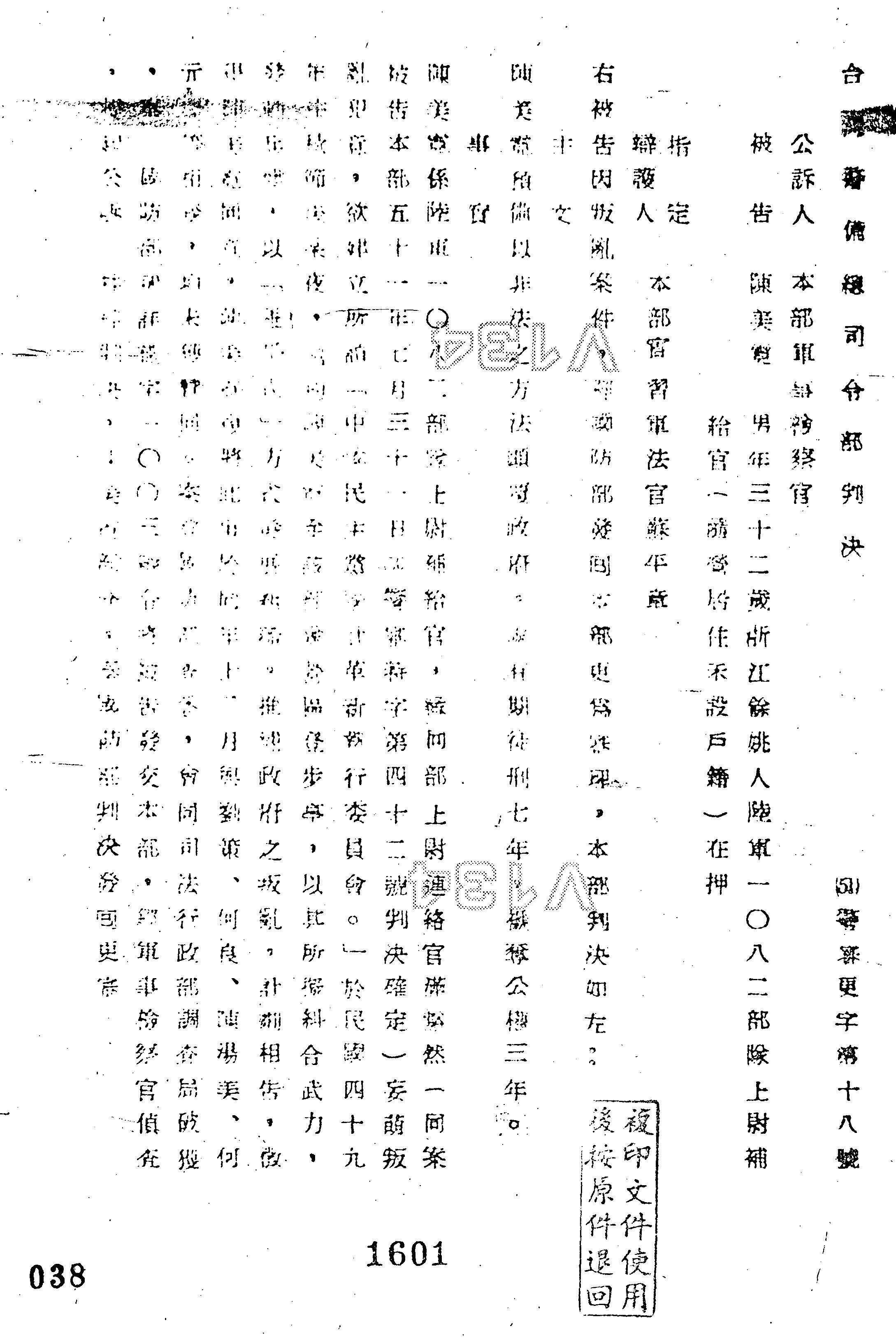 裁判書主文/要旨:陳美霓「預備以非法之方法顛覆政府」,處有期徒刑7年,褫奪公權3年。