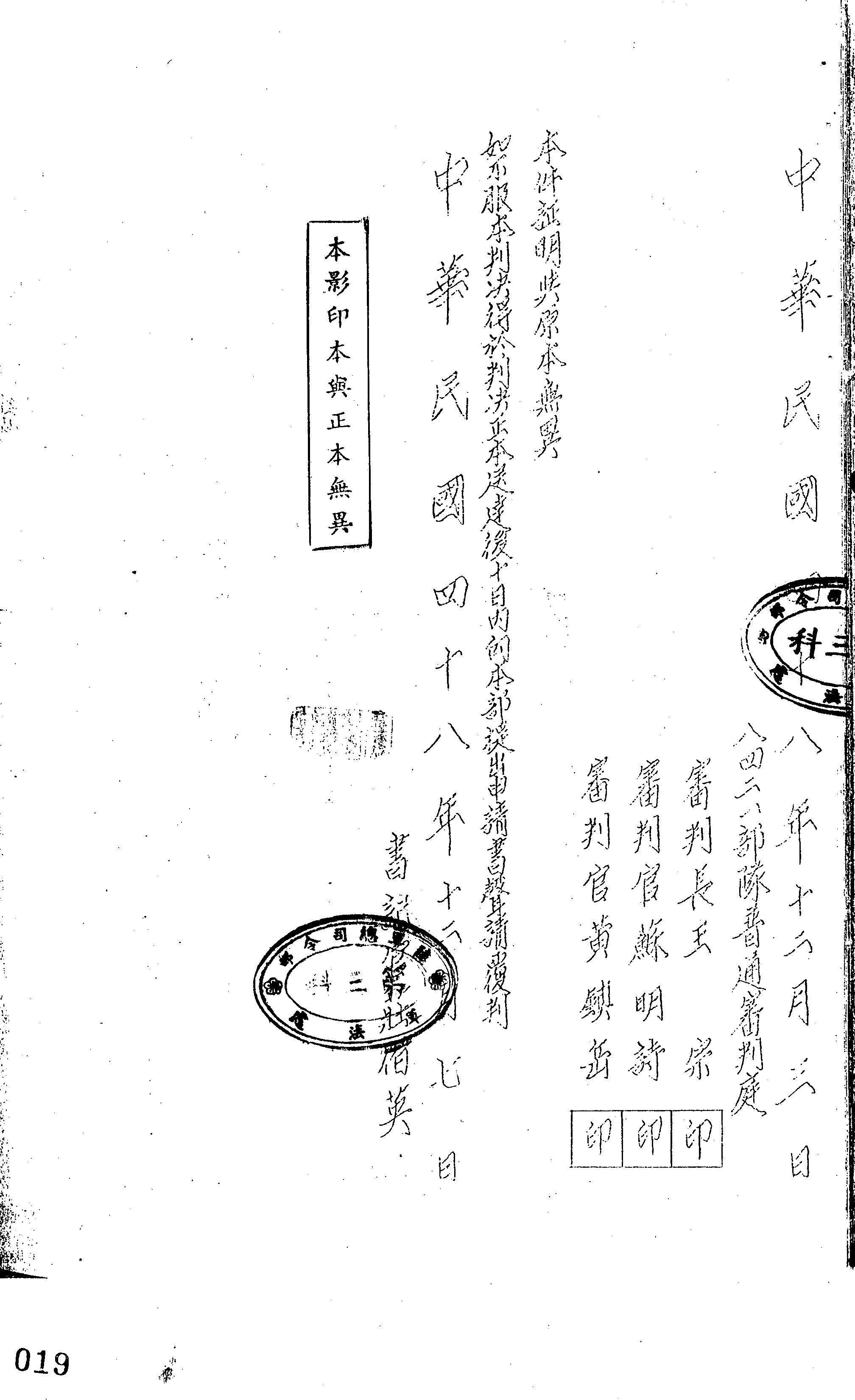 捌肆貳壹部隊48年秤穆判字第0038號判決書