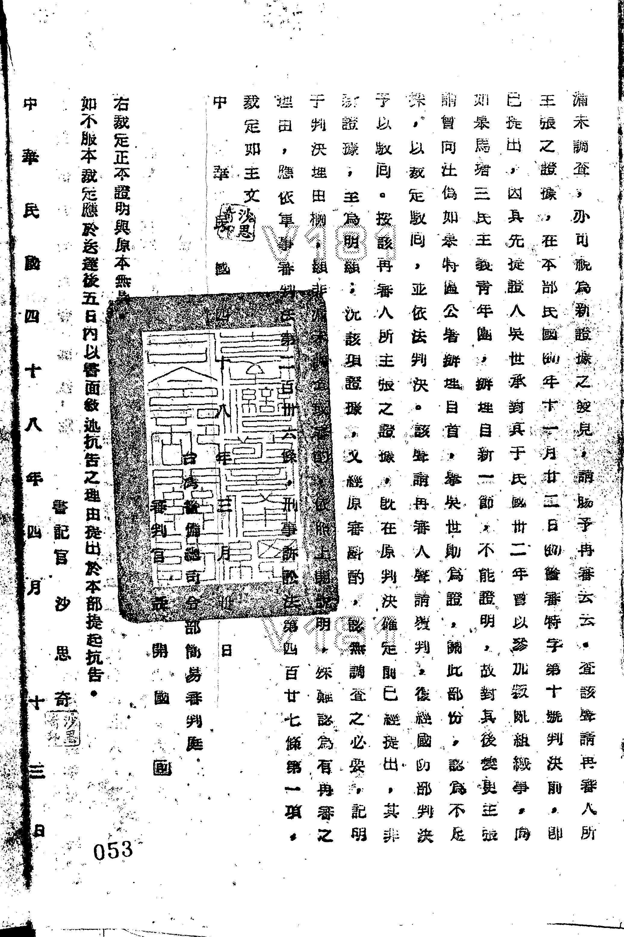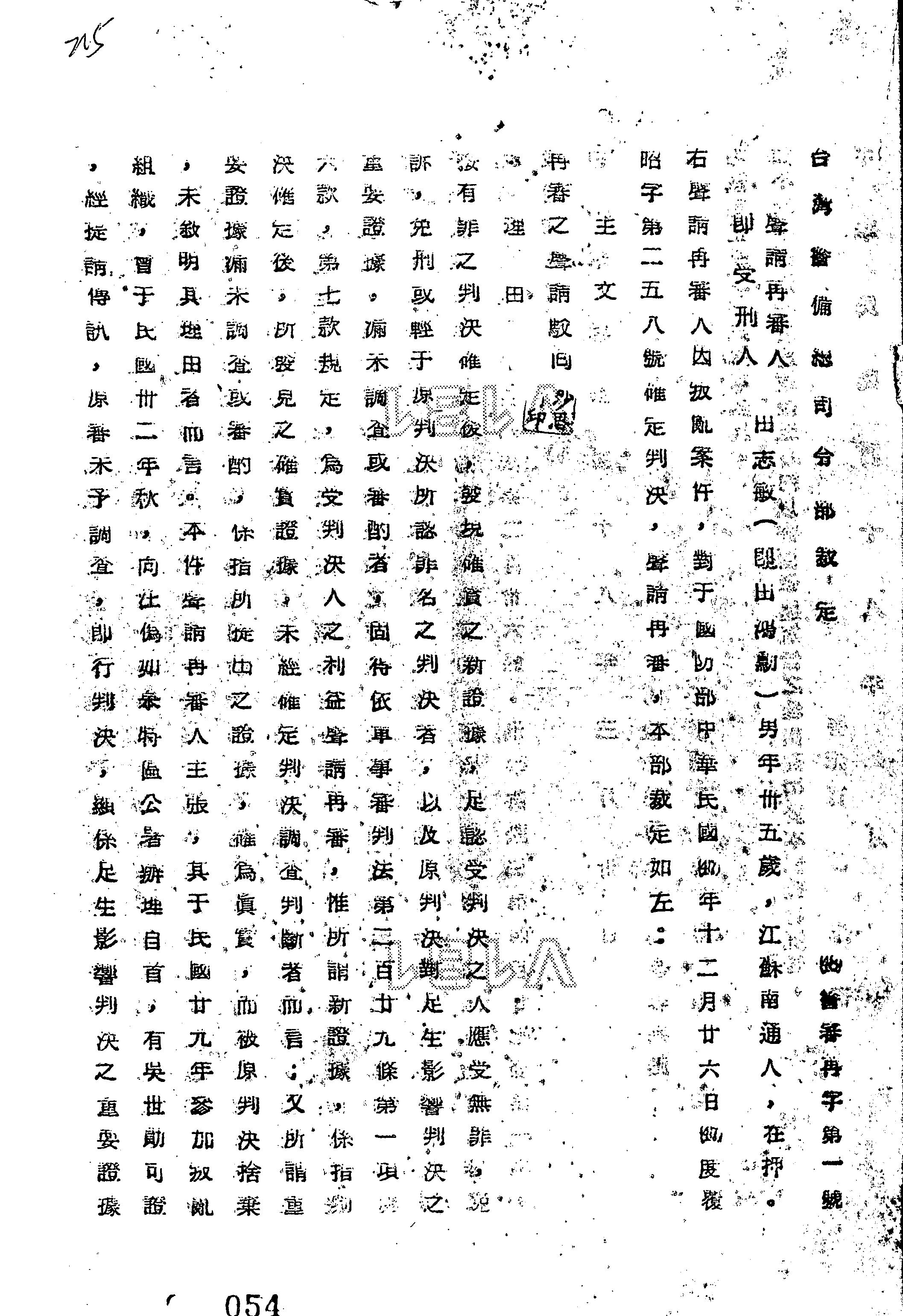 臺灣警備總司令部48年警審再字第0001號裁定書