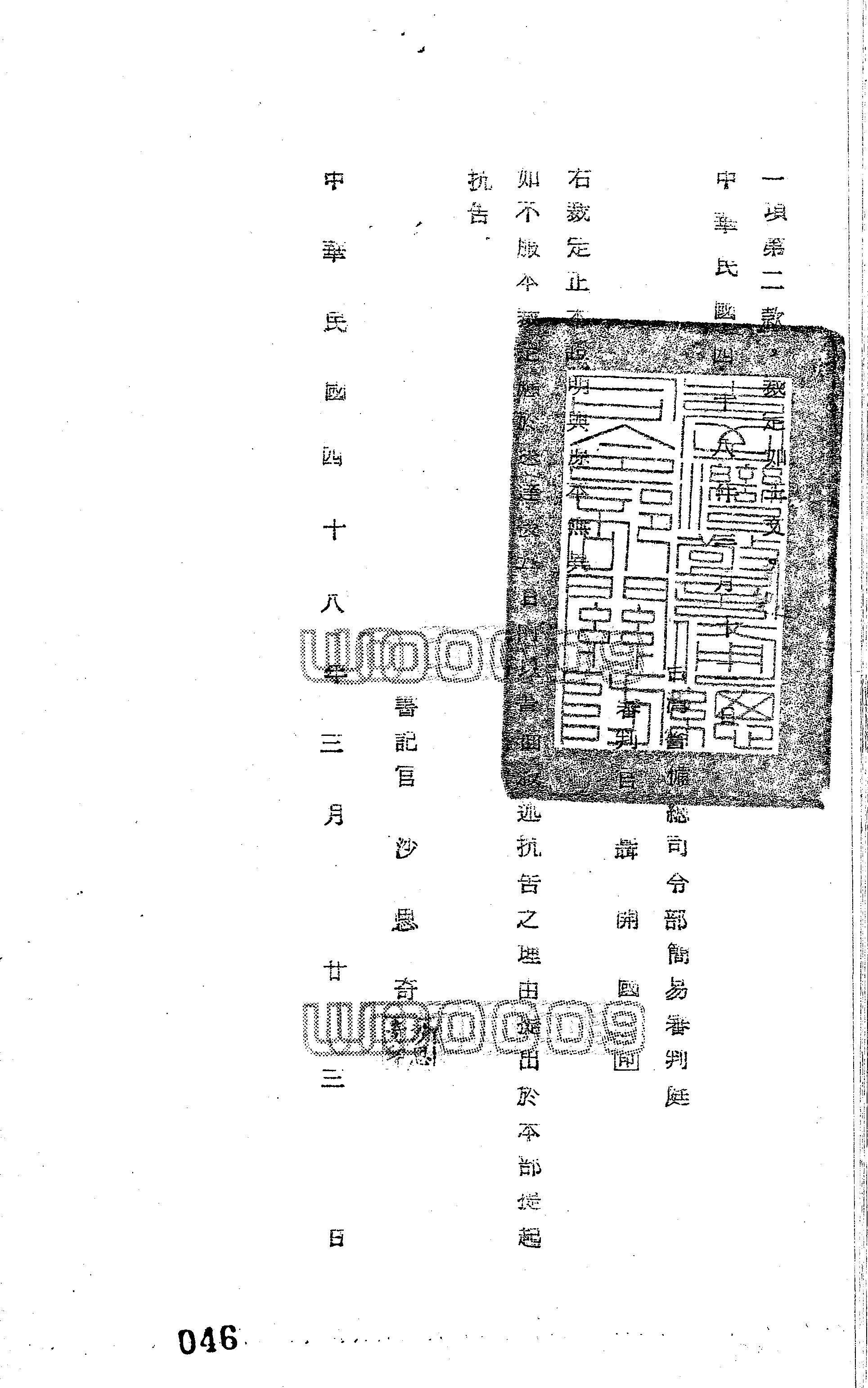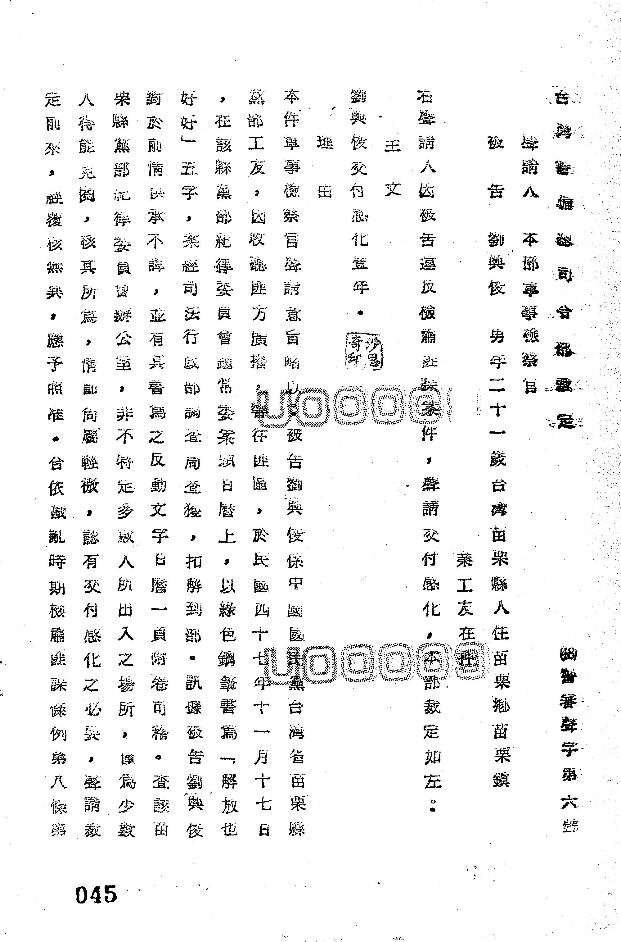 臺灣警備總司令部48年警審聲字第0006號裁定書