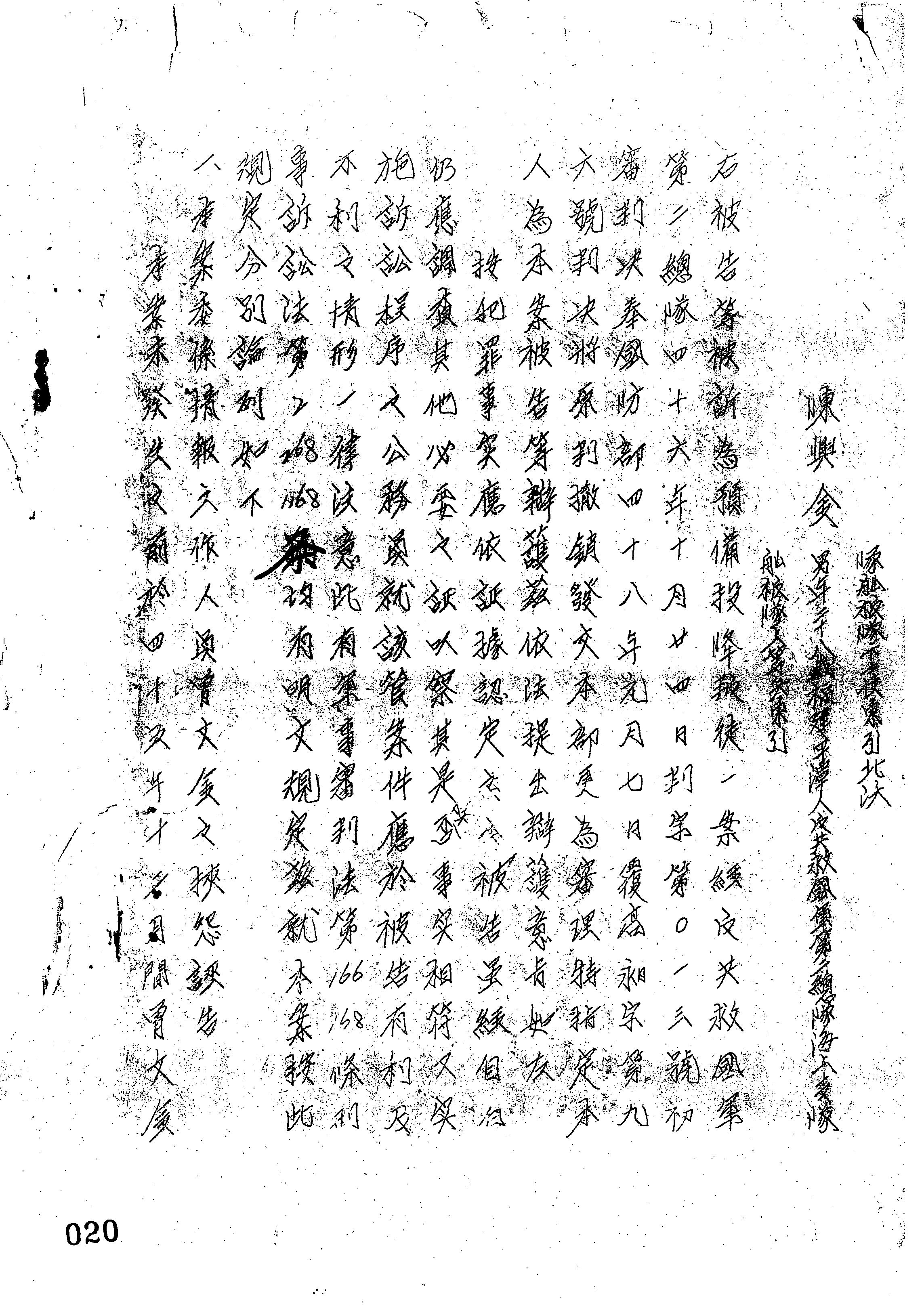 陸軍總司令部49年耿穎字第0007號公設辯護人辯護書