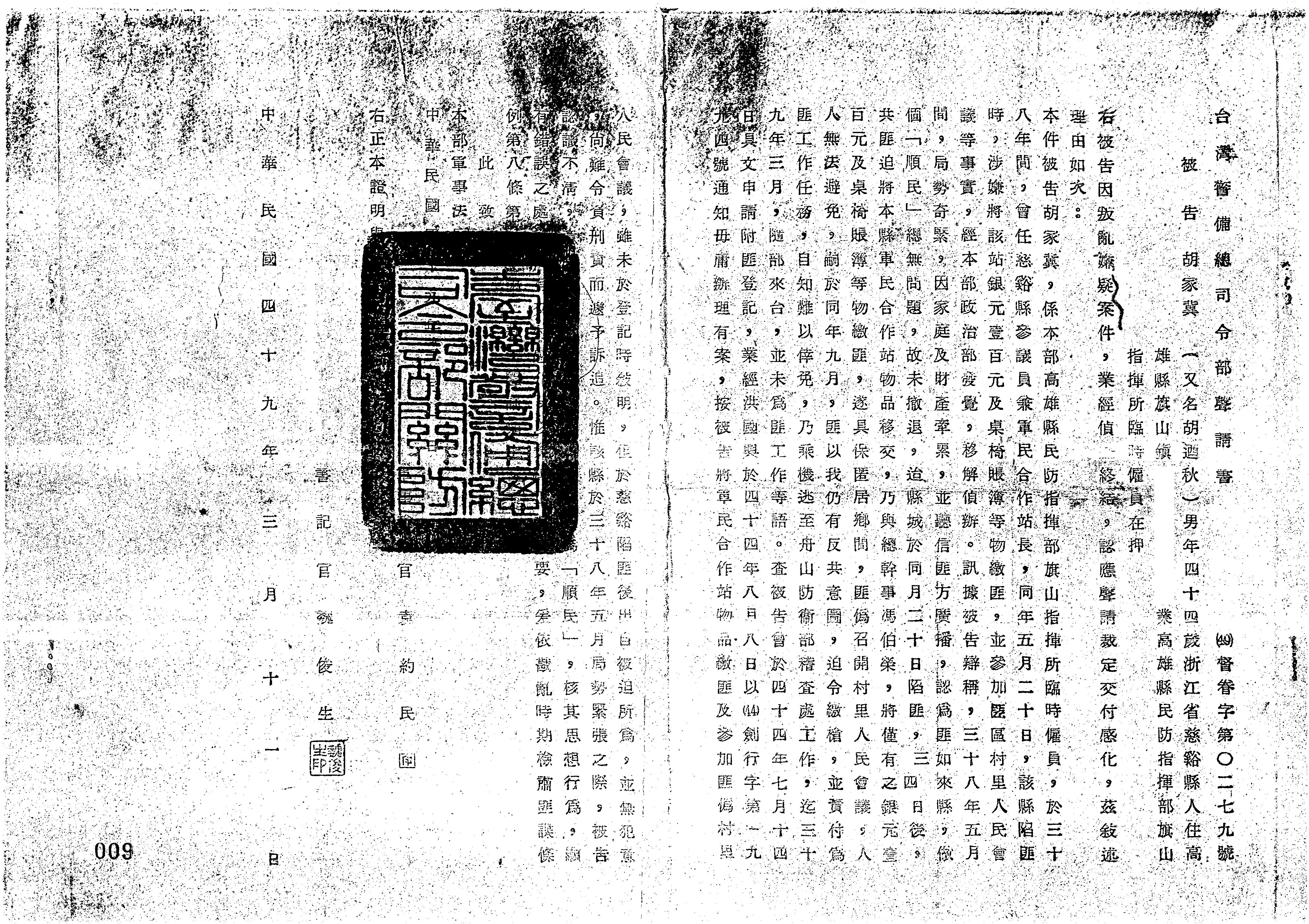 裁判書主文/要旨:胡家冀因叛亂嫌疑案件,業經偵查終結,認應聲請裁定交付感化。