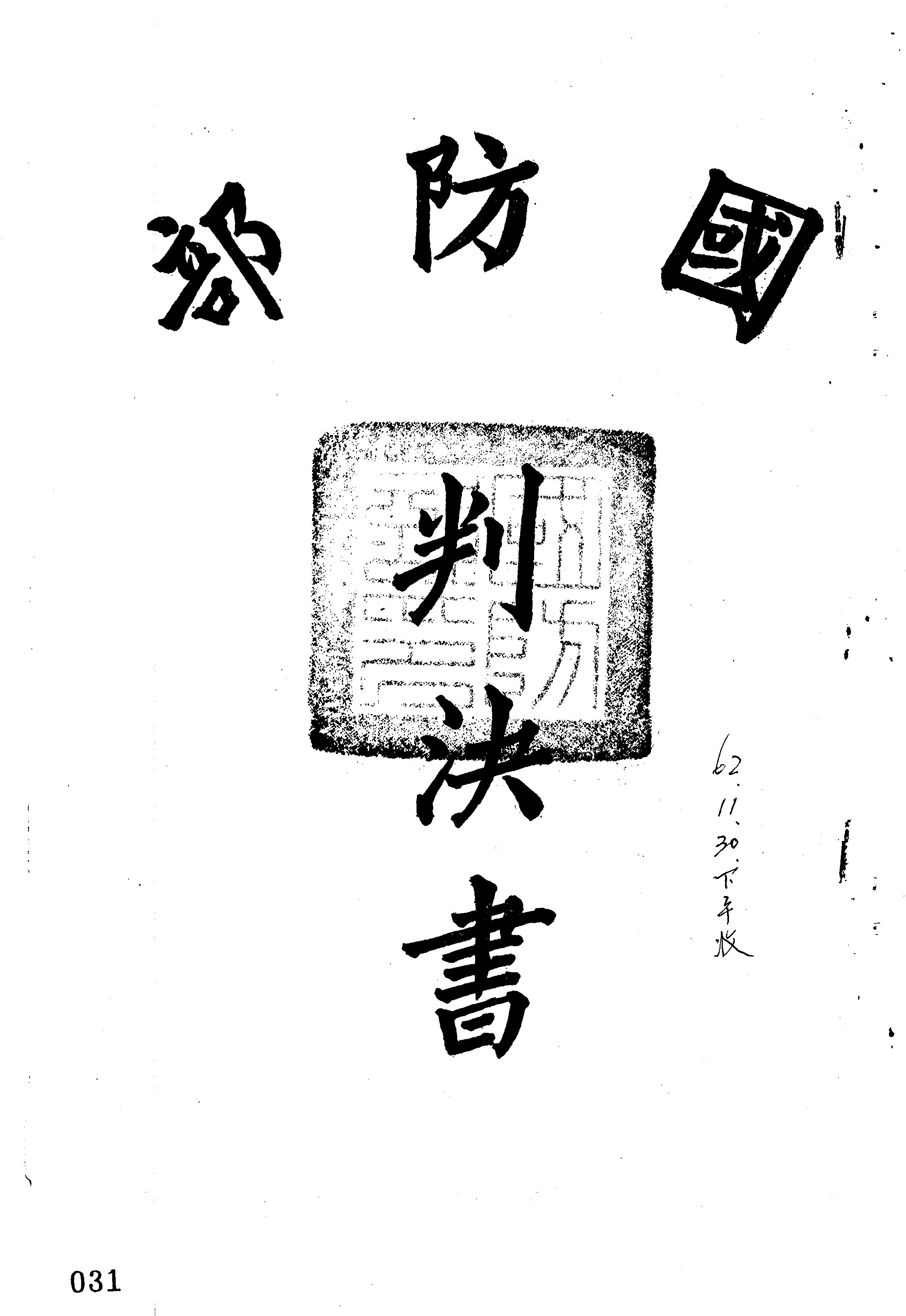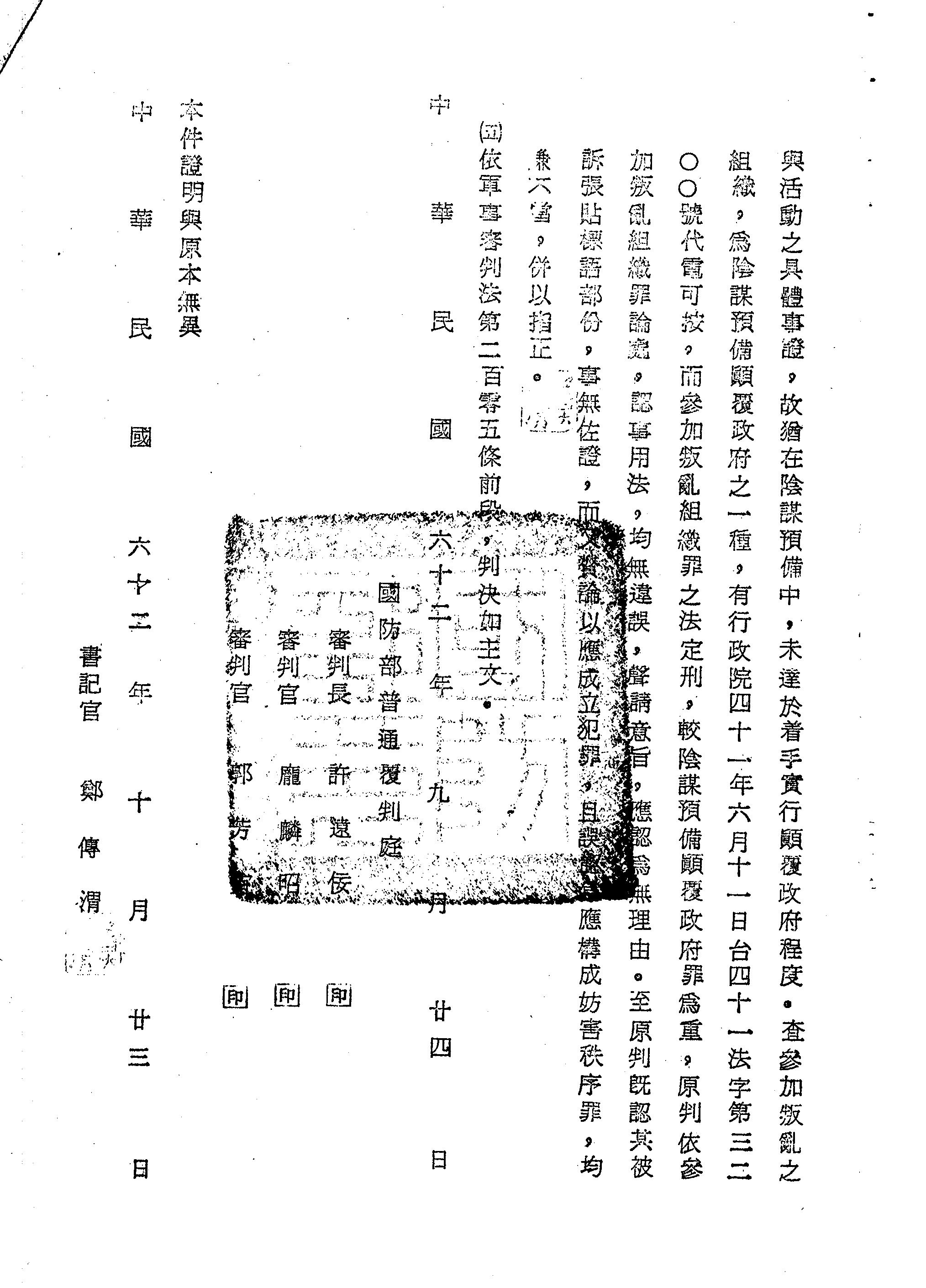 國防部62年覆普傳信字第0048號判決書