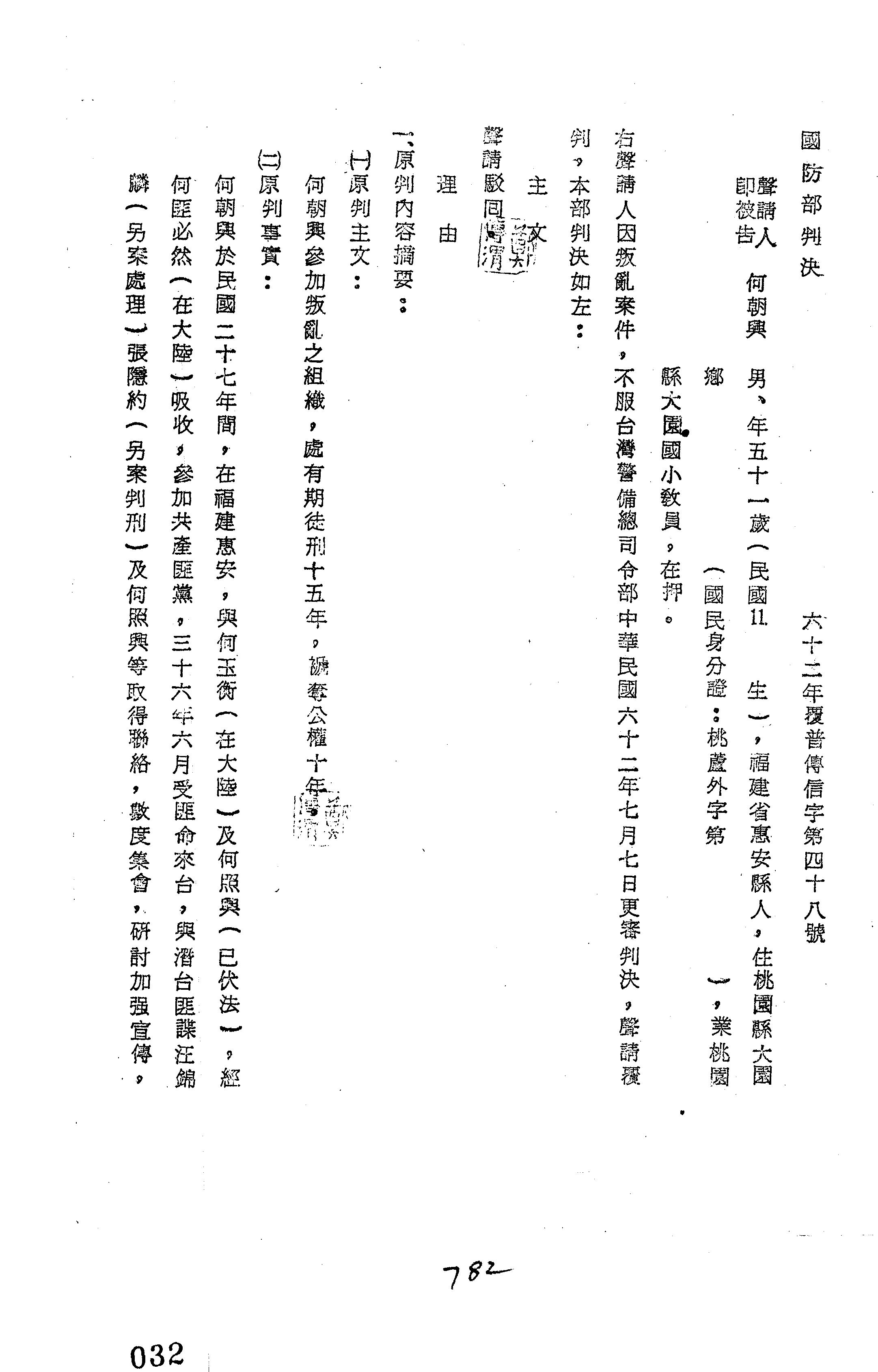 裁判書字號:(62)覆普傳信字第0048號