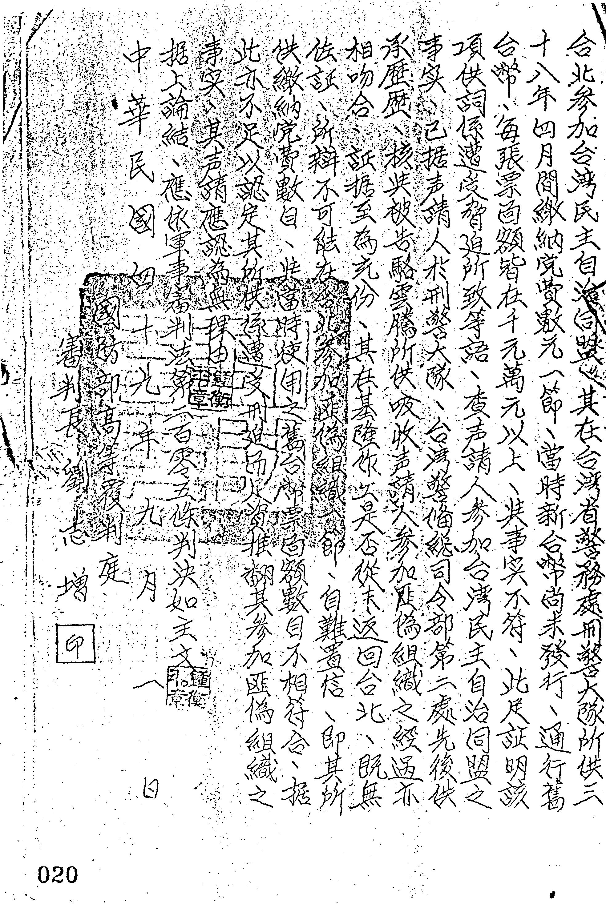 國防部49年覆高淦字第0054號判決書
