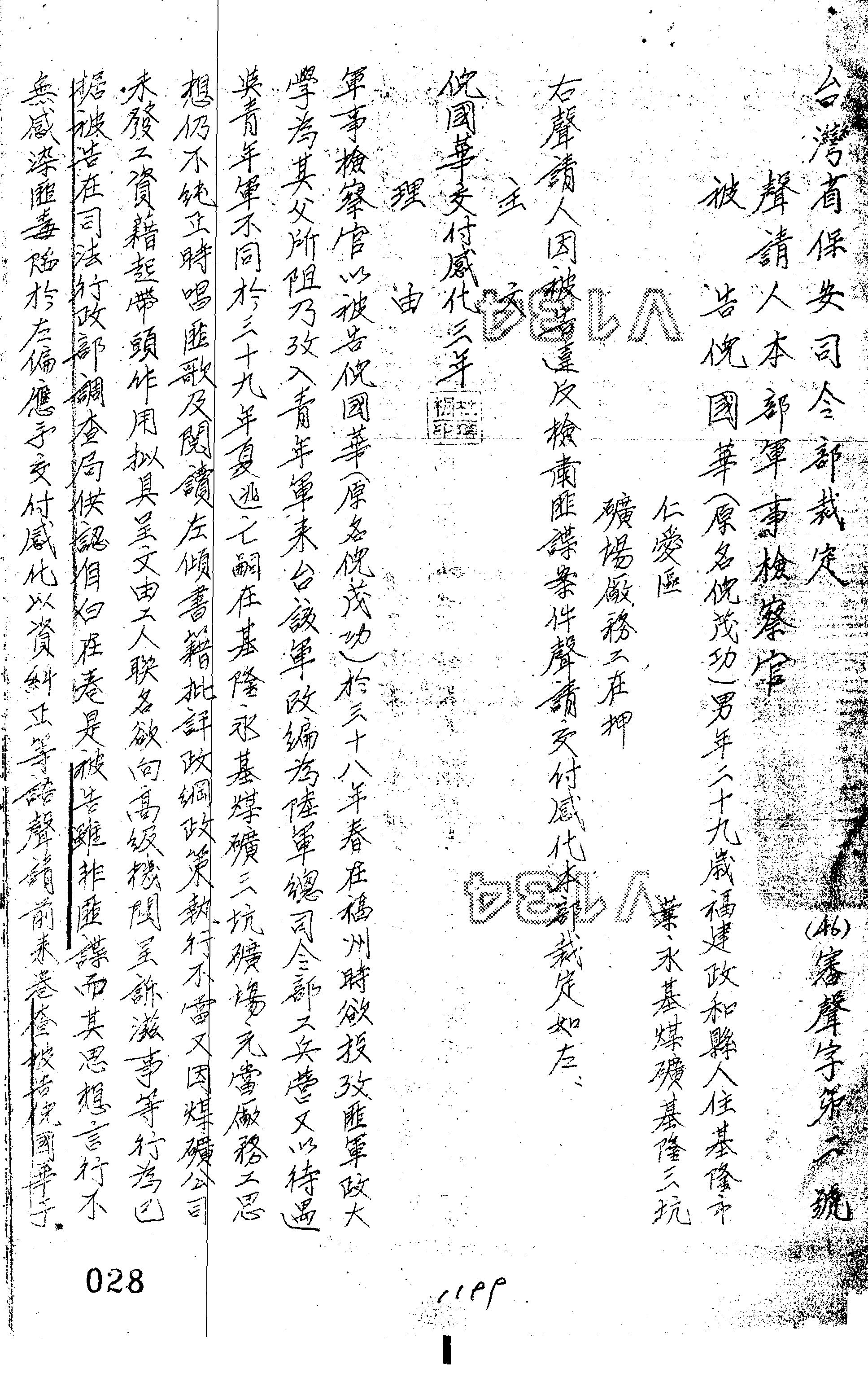 臺灣省保安司令部46年審聲字第0002號裁定書