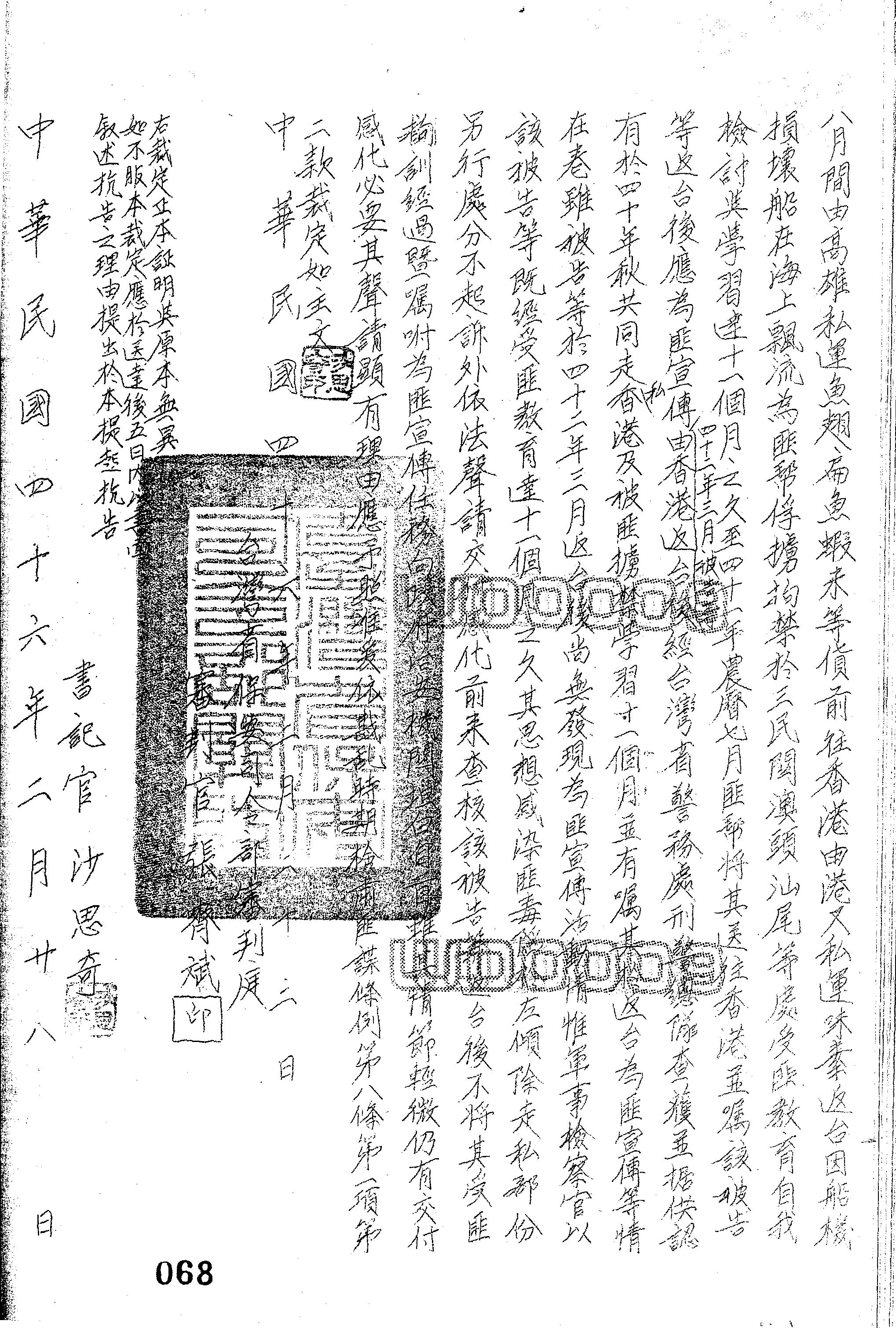 臺灣省保安司令部46年審聲字第0010號裁定書