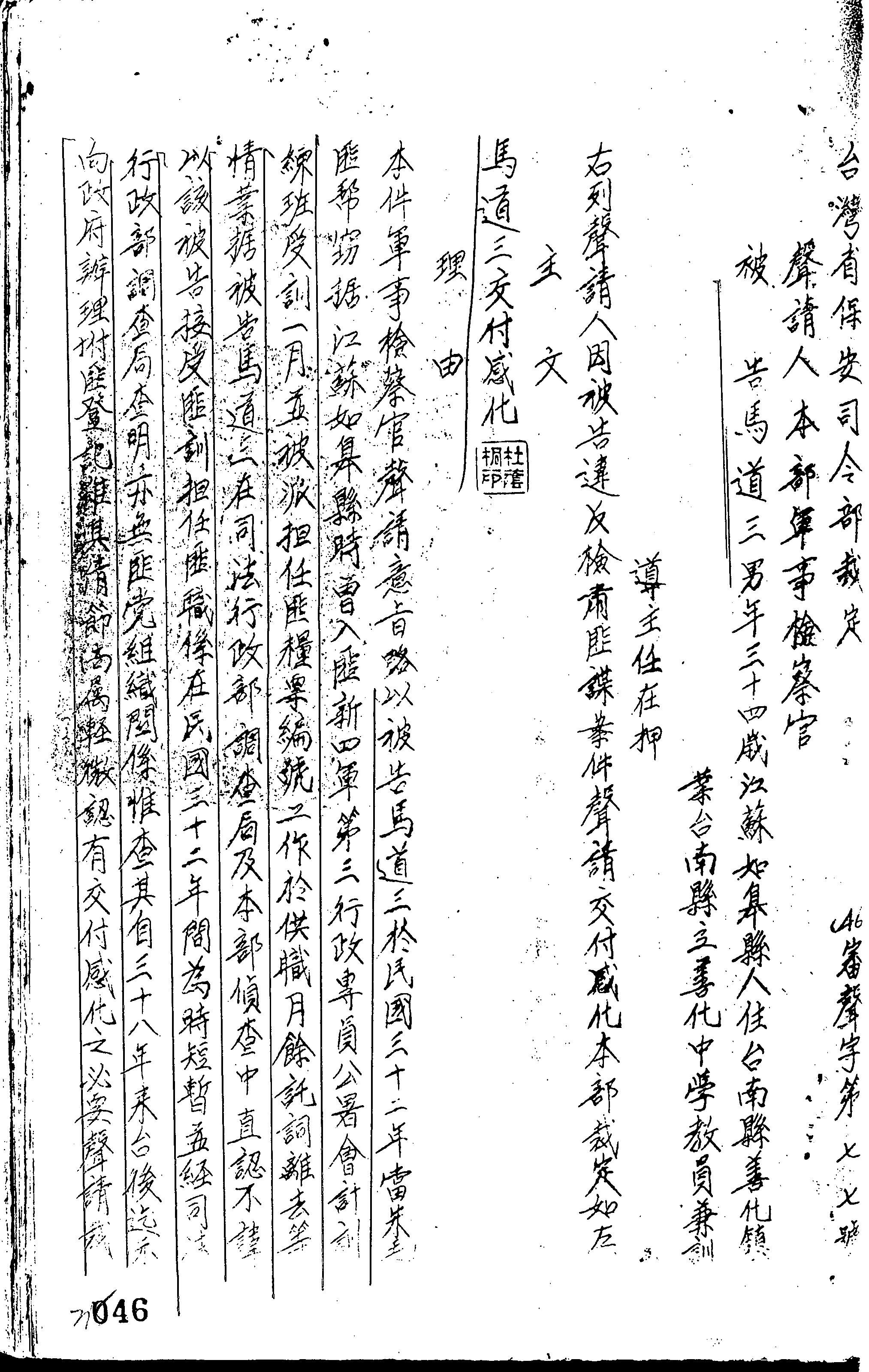 審理機關:臺灣省保安司令部