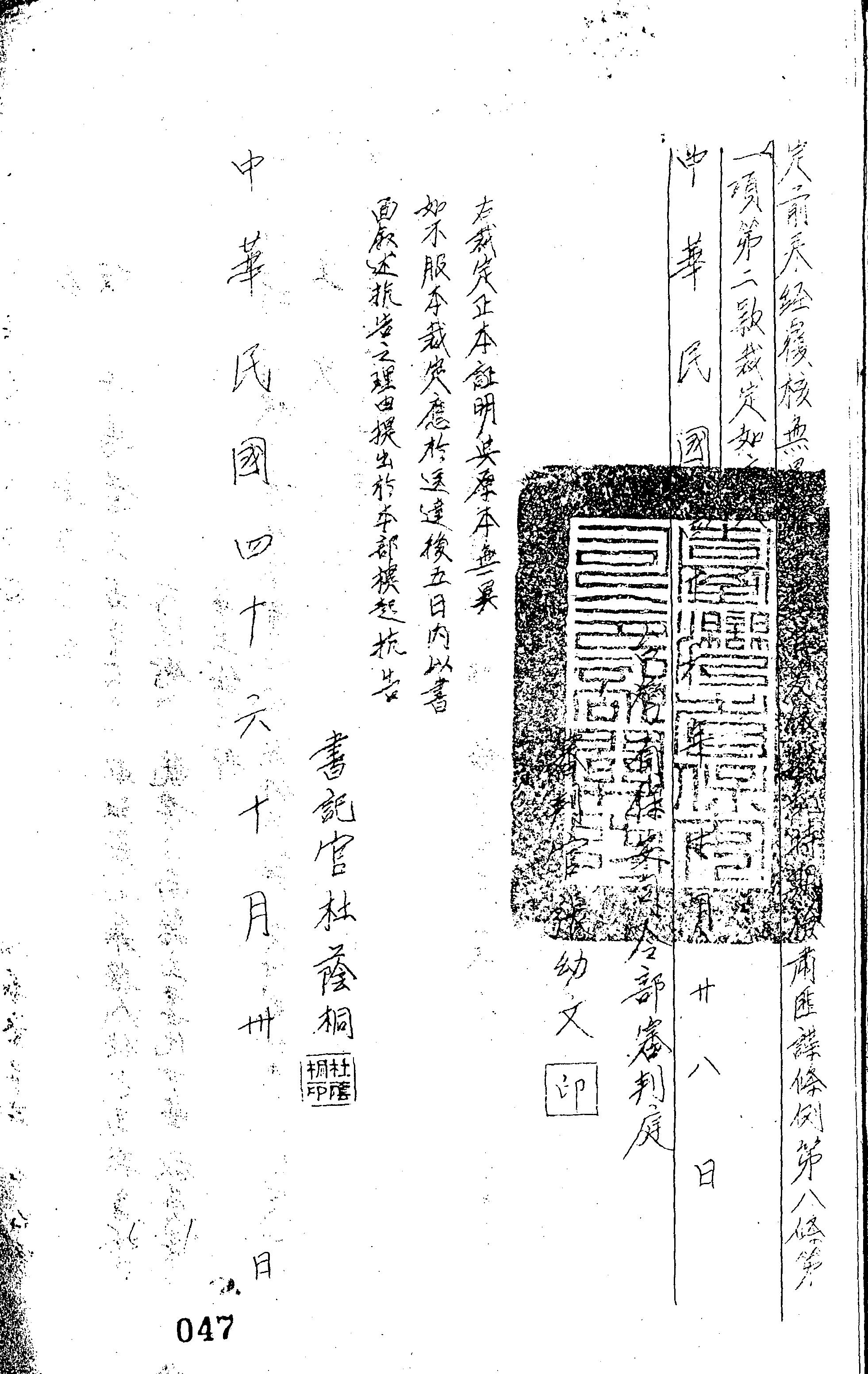 臺灣省保安司令部46年審聲字第0077號裁定書