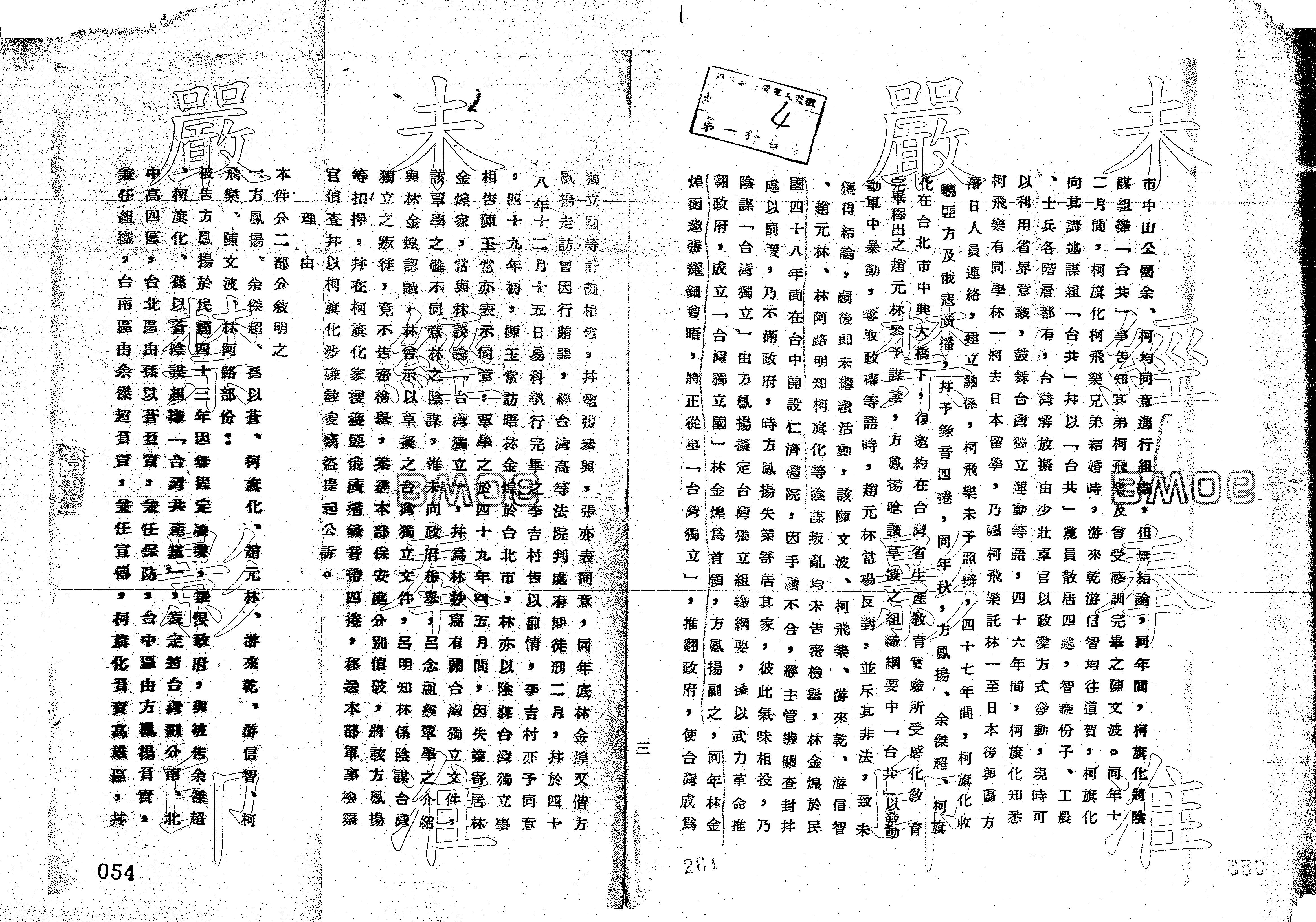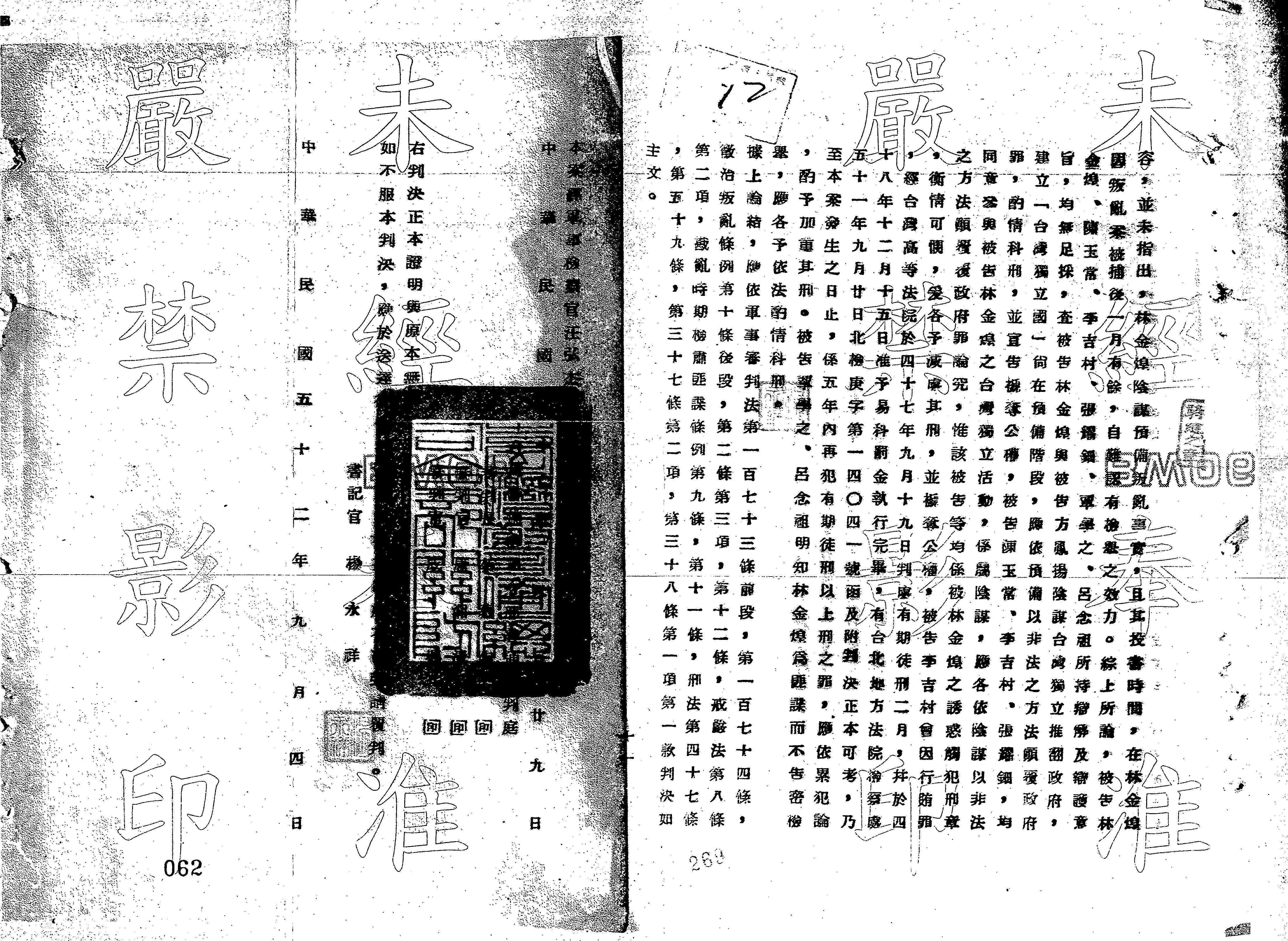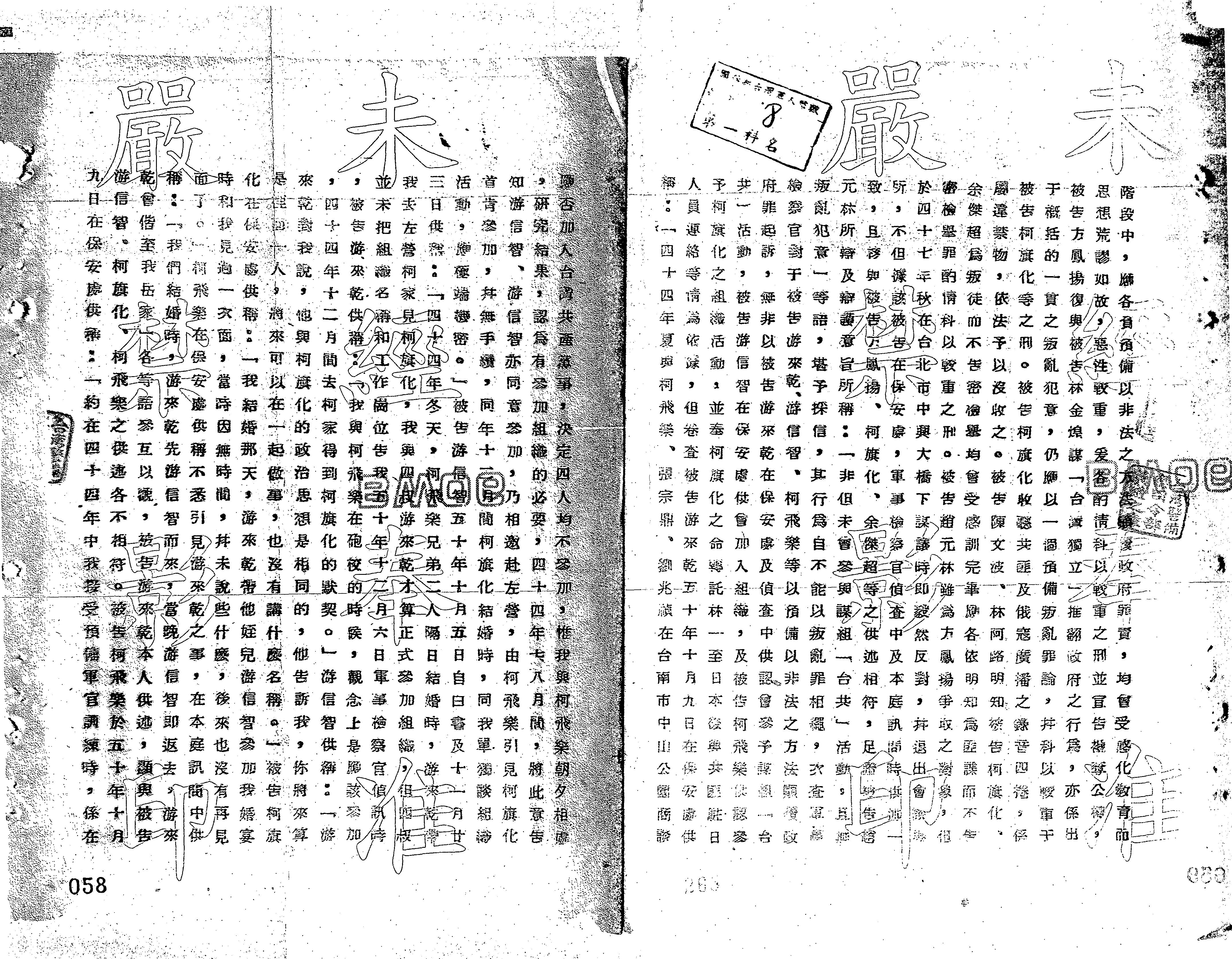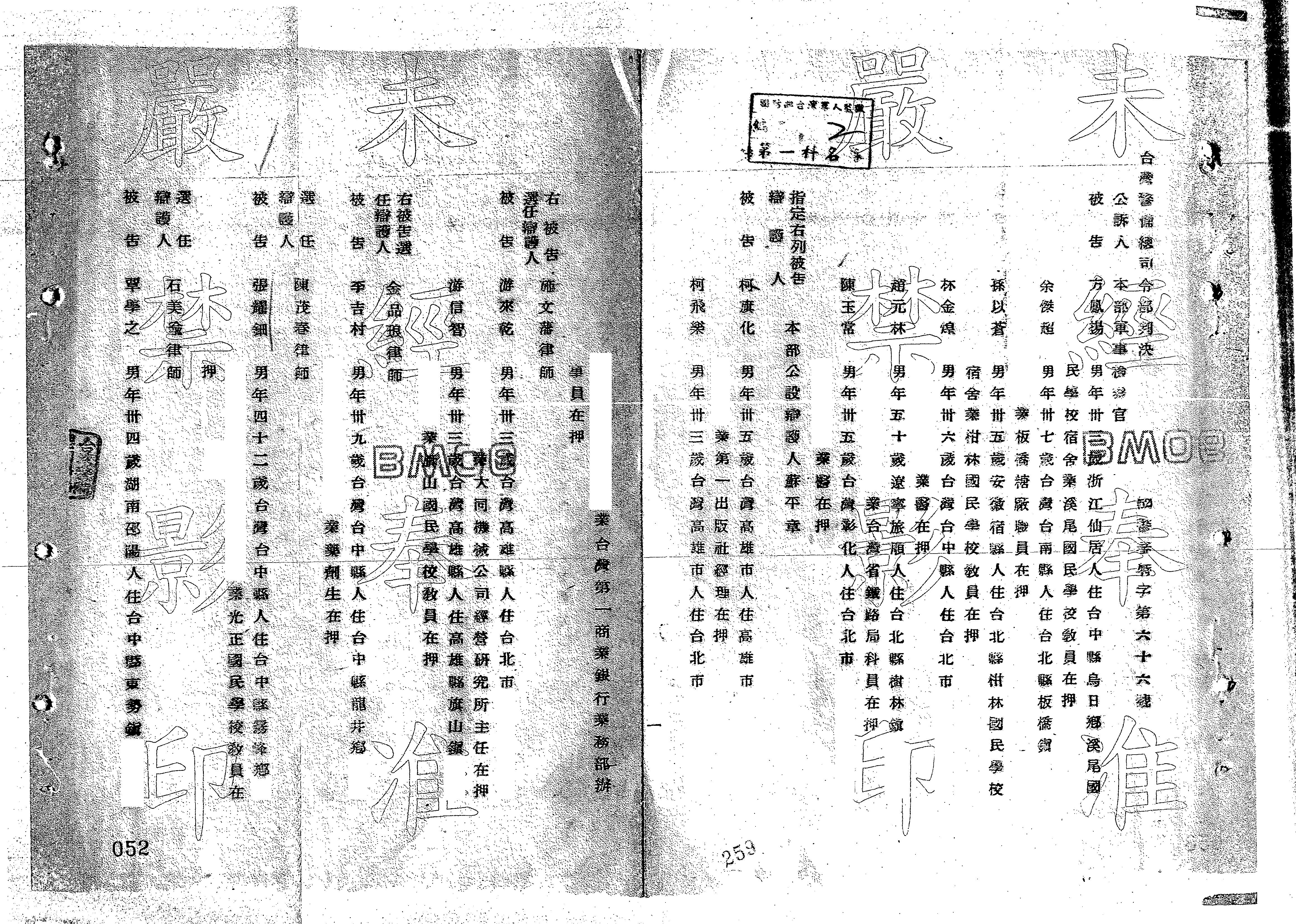 - 裁判書正題名: 臺灣警備總司令部52年警審特字第0066號判決書