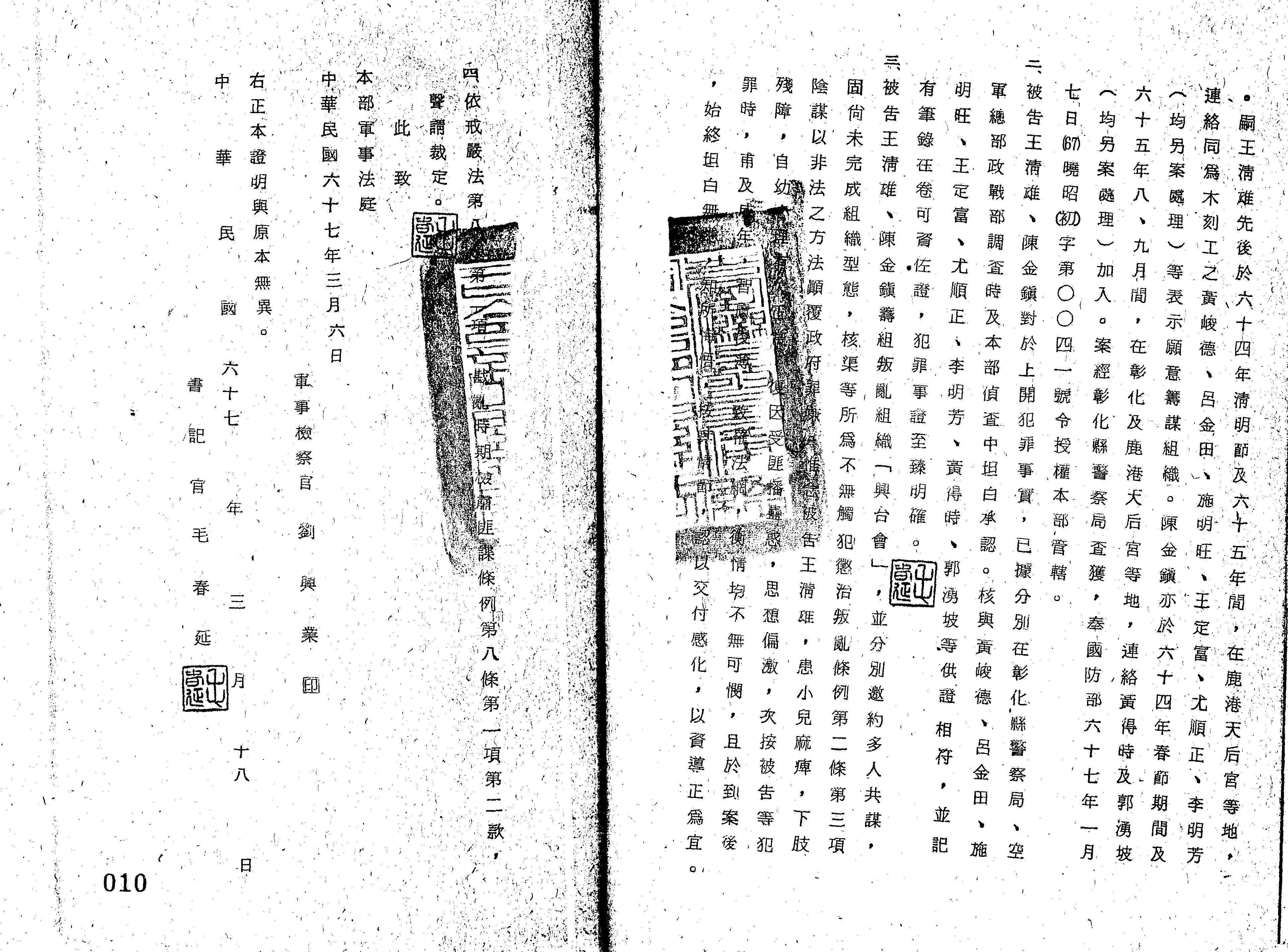 法條:戒嚴法第8條第2項;戡亂時期檢肅匪諜條例第8條第1項第2款