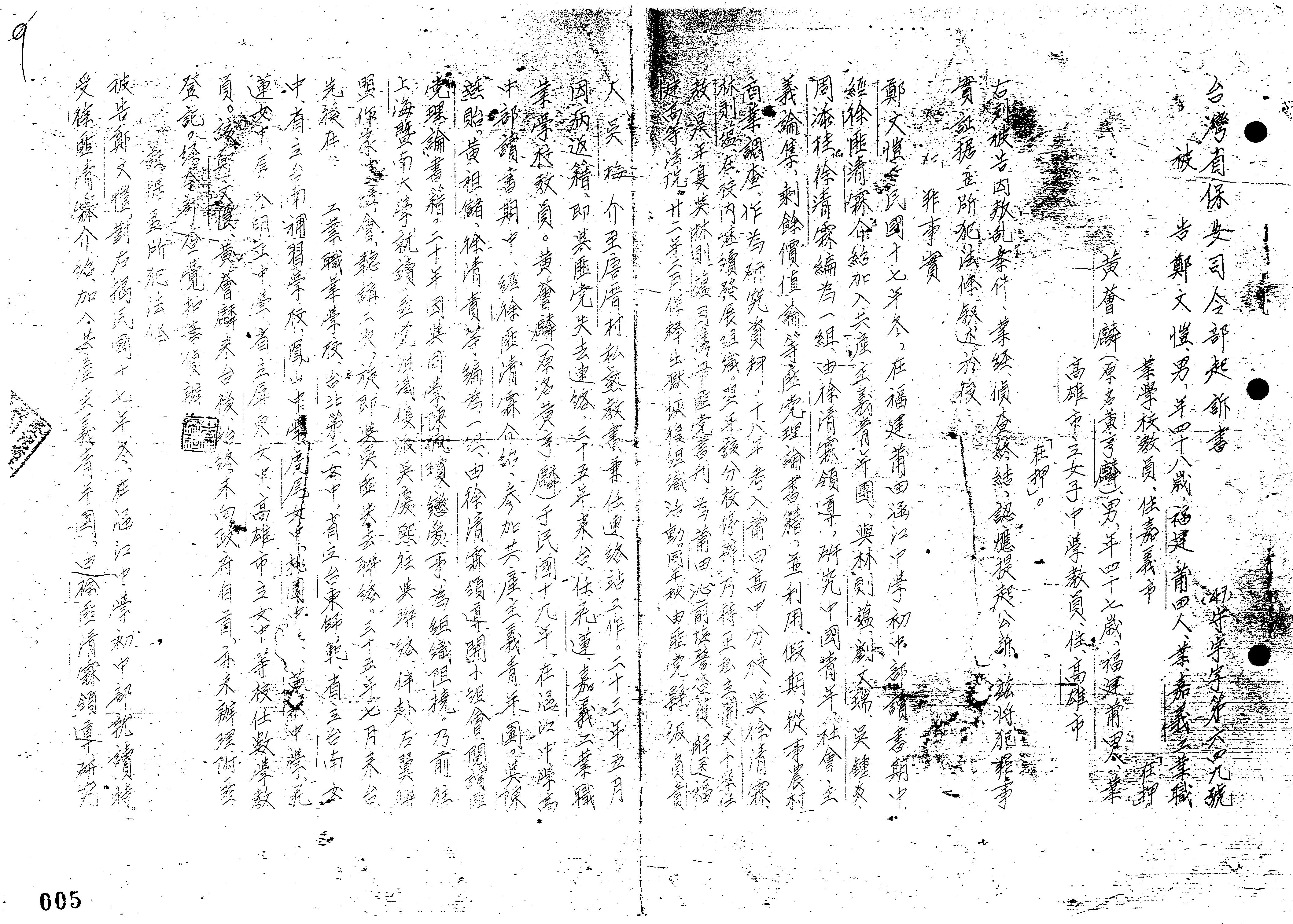 臺灣省保安司令部47年守宇字第0649號起訴書