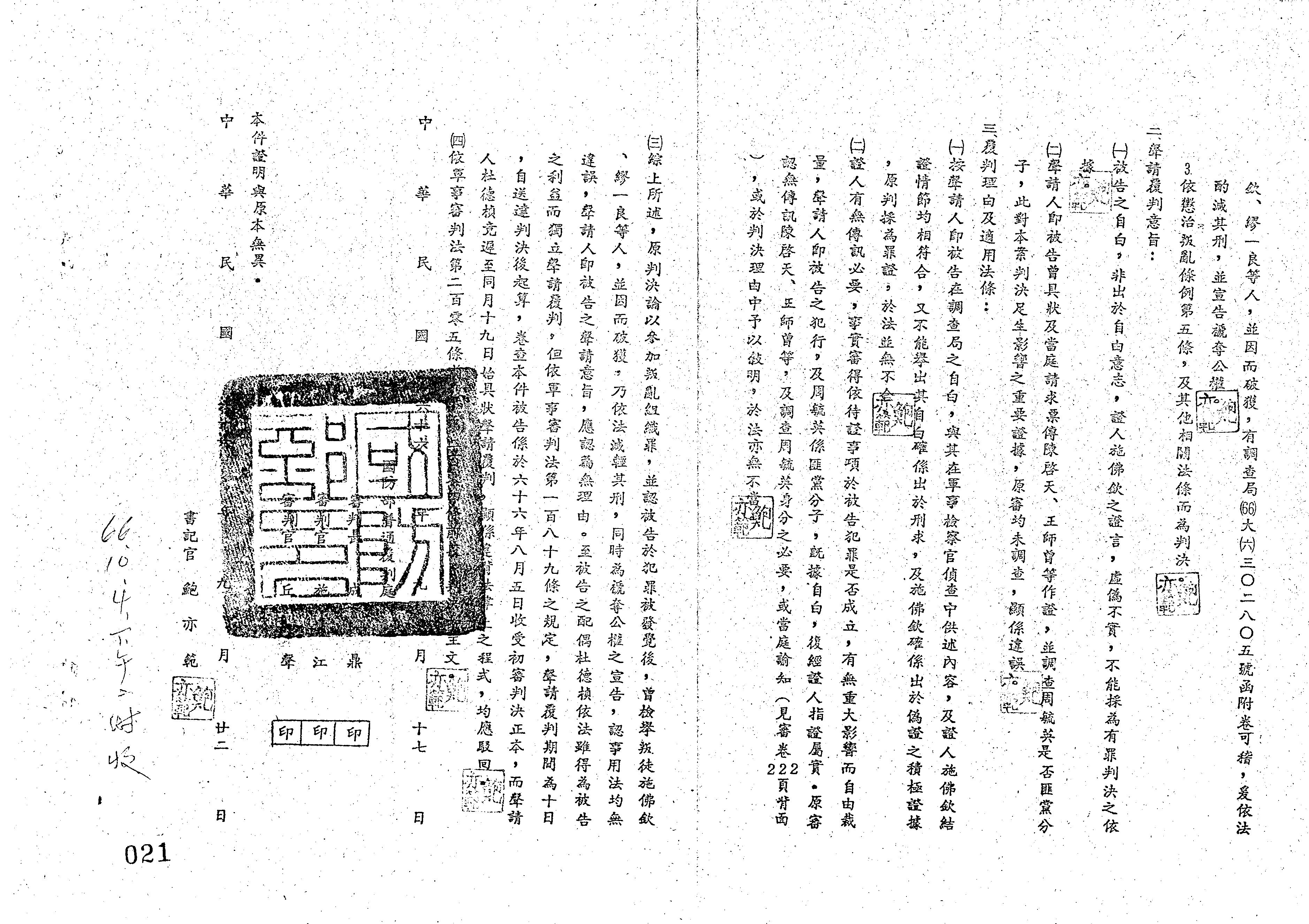 裁判書字號:(66)覆普曉明字第0076號