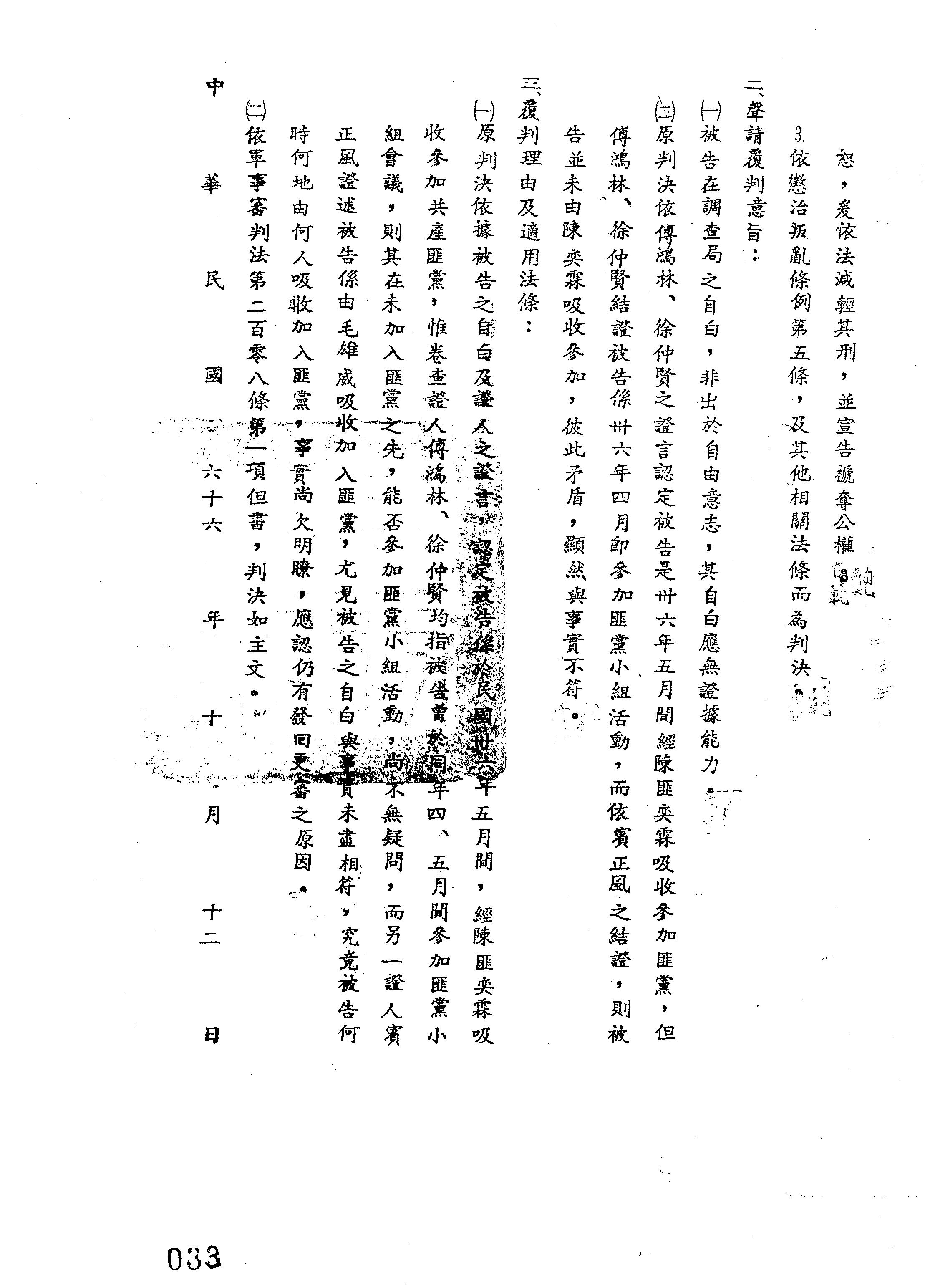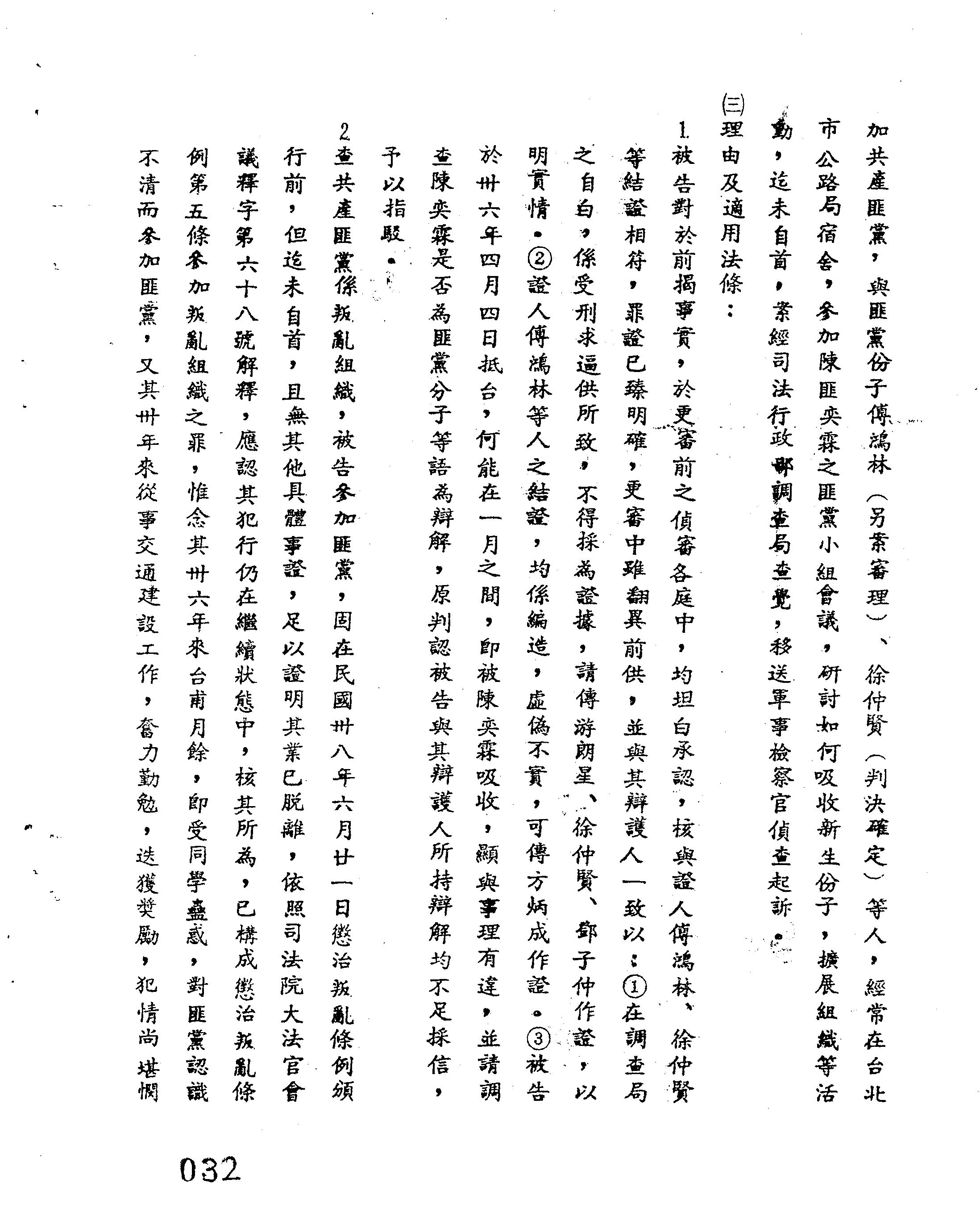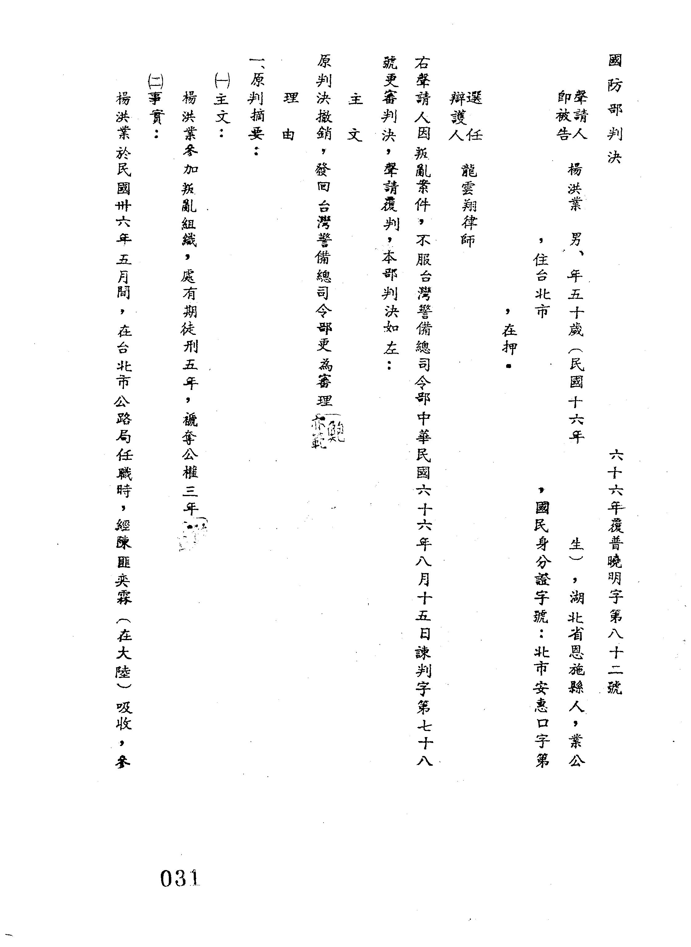 裁判書主文/要旨:原判決撤銷,發回臺灣警備總司令部更為審理。