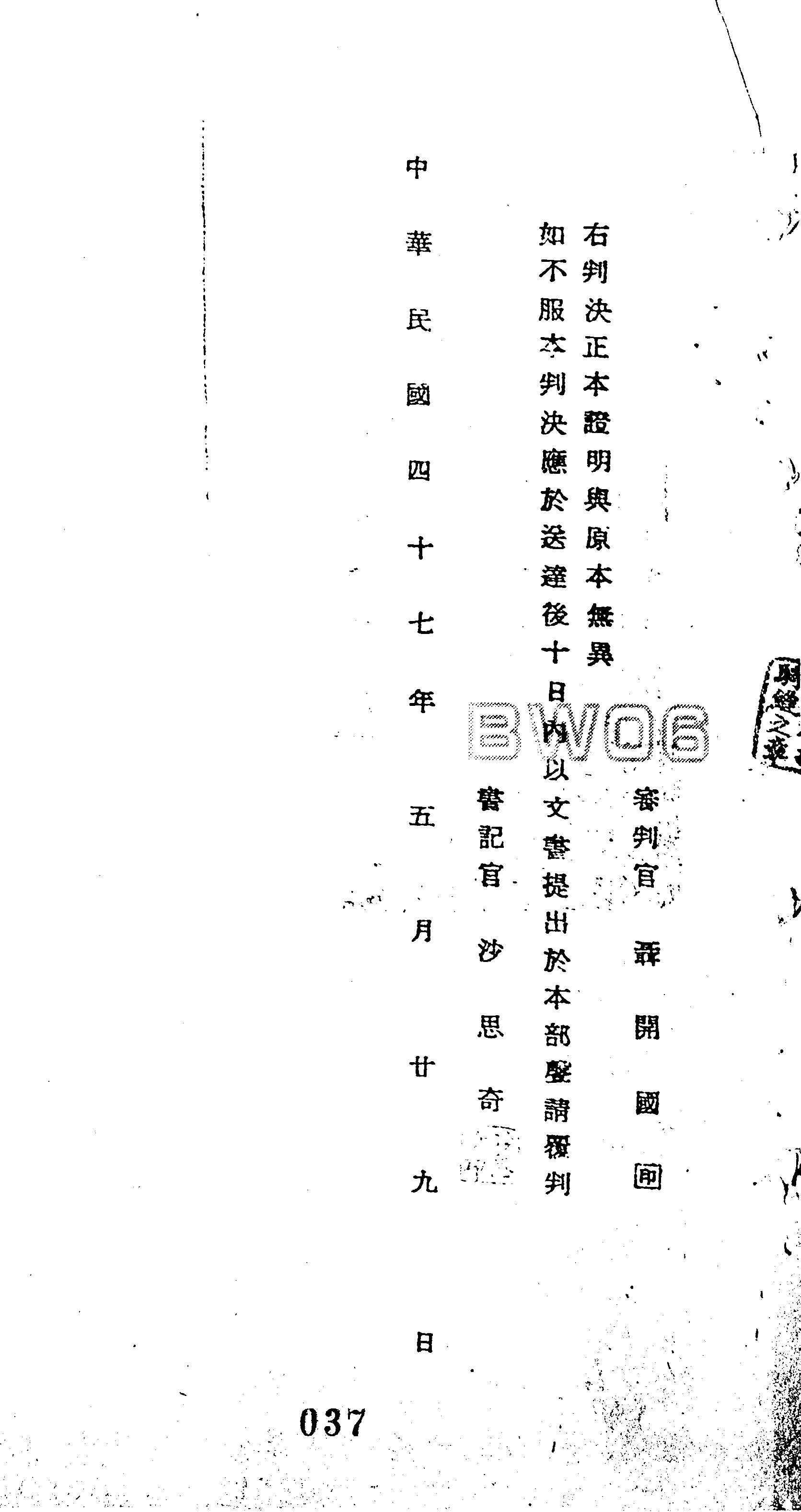 臺灣省保安司令部47年審更字第0002號判決書