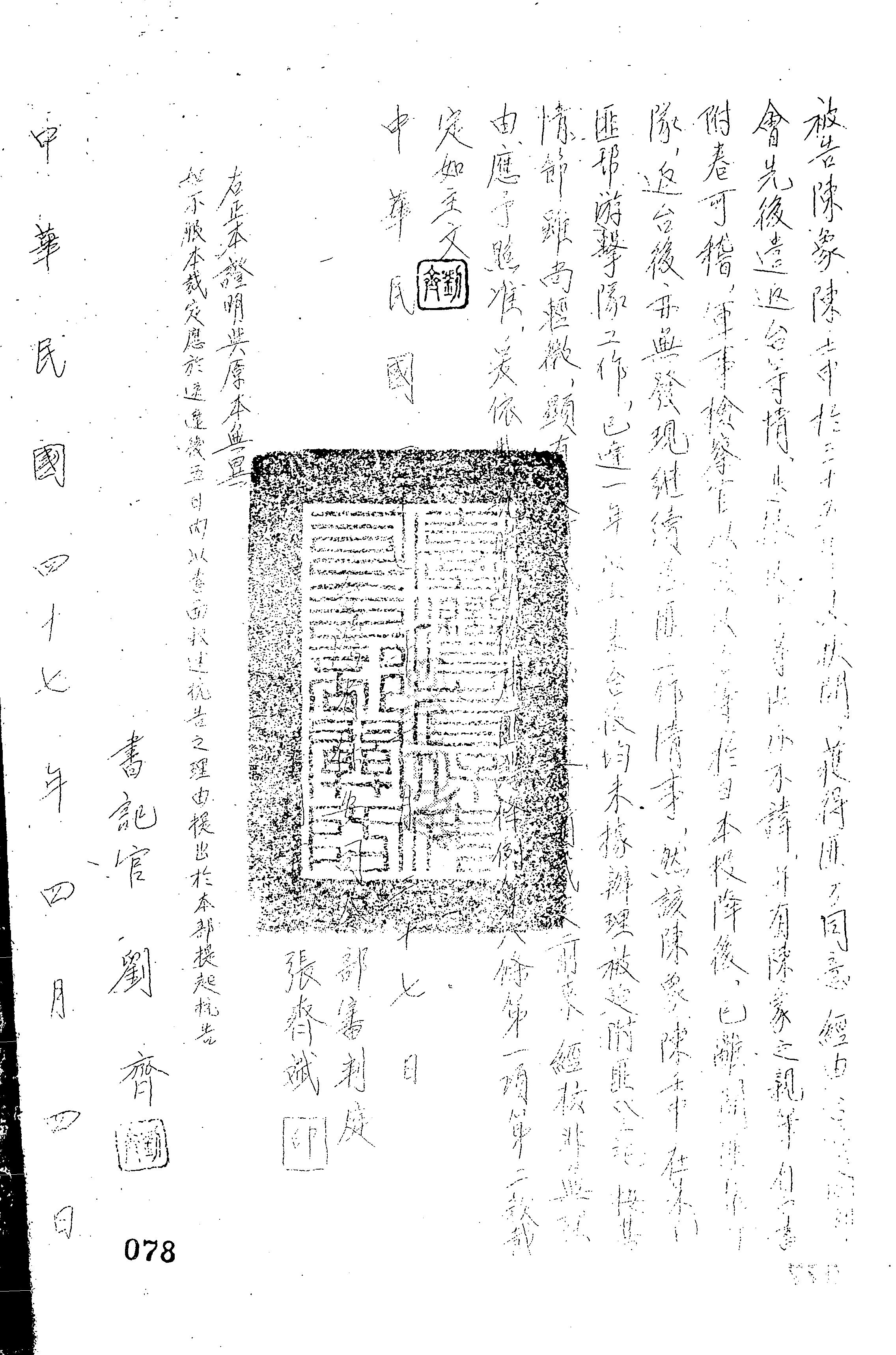 臺灣省保安司令部47年審聲字第0022號裁定書