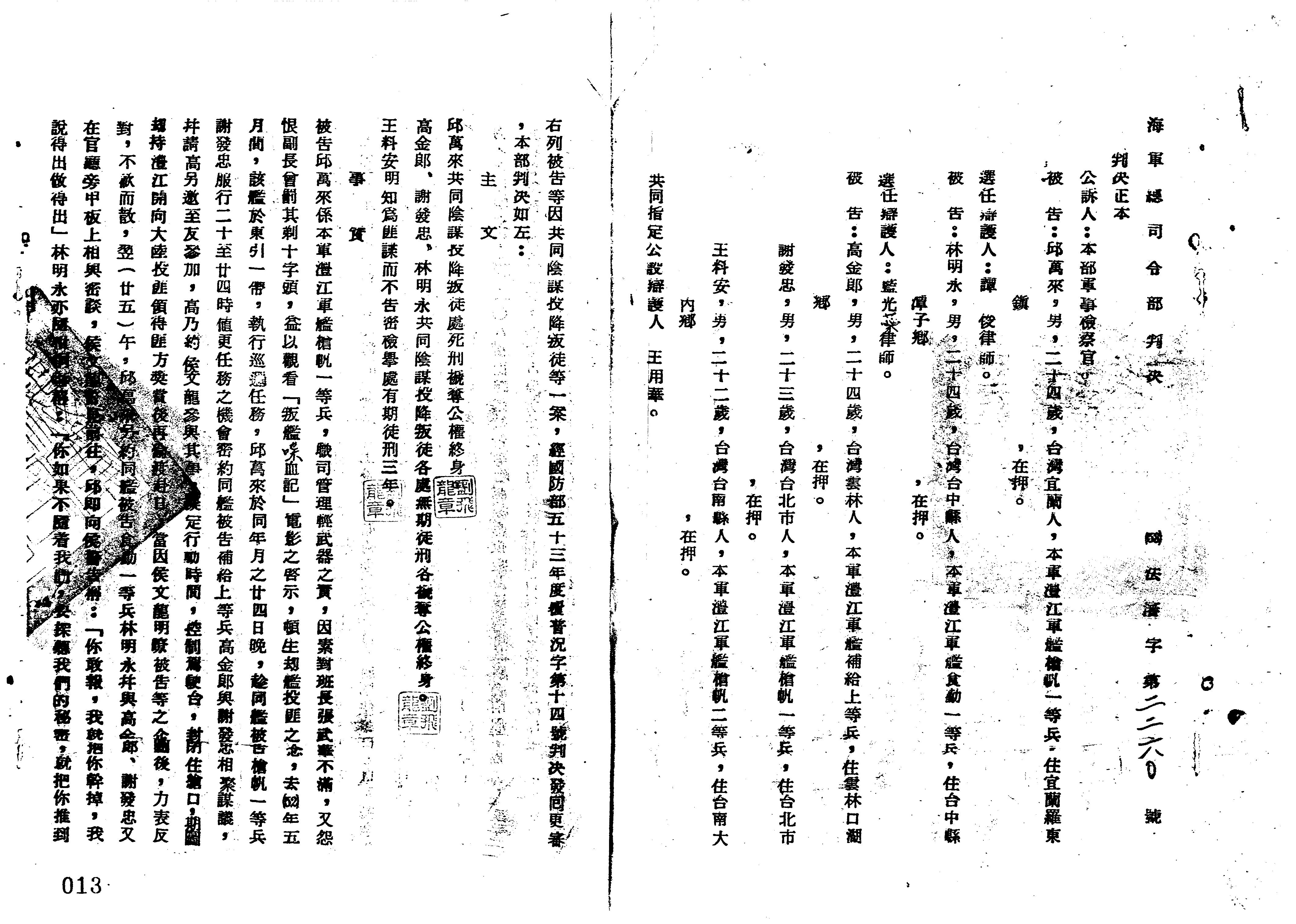 - 裁判書正題名: 海軍總司令部53年法瀋字第2260號判決書