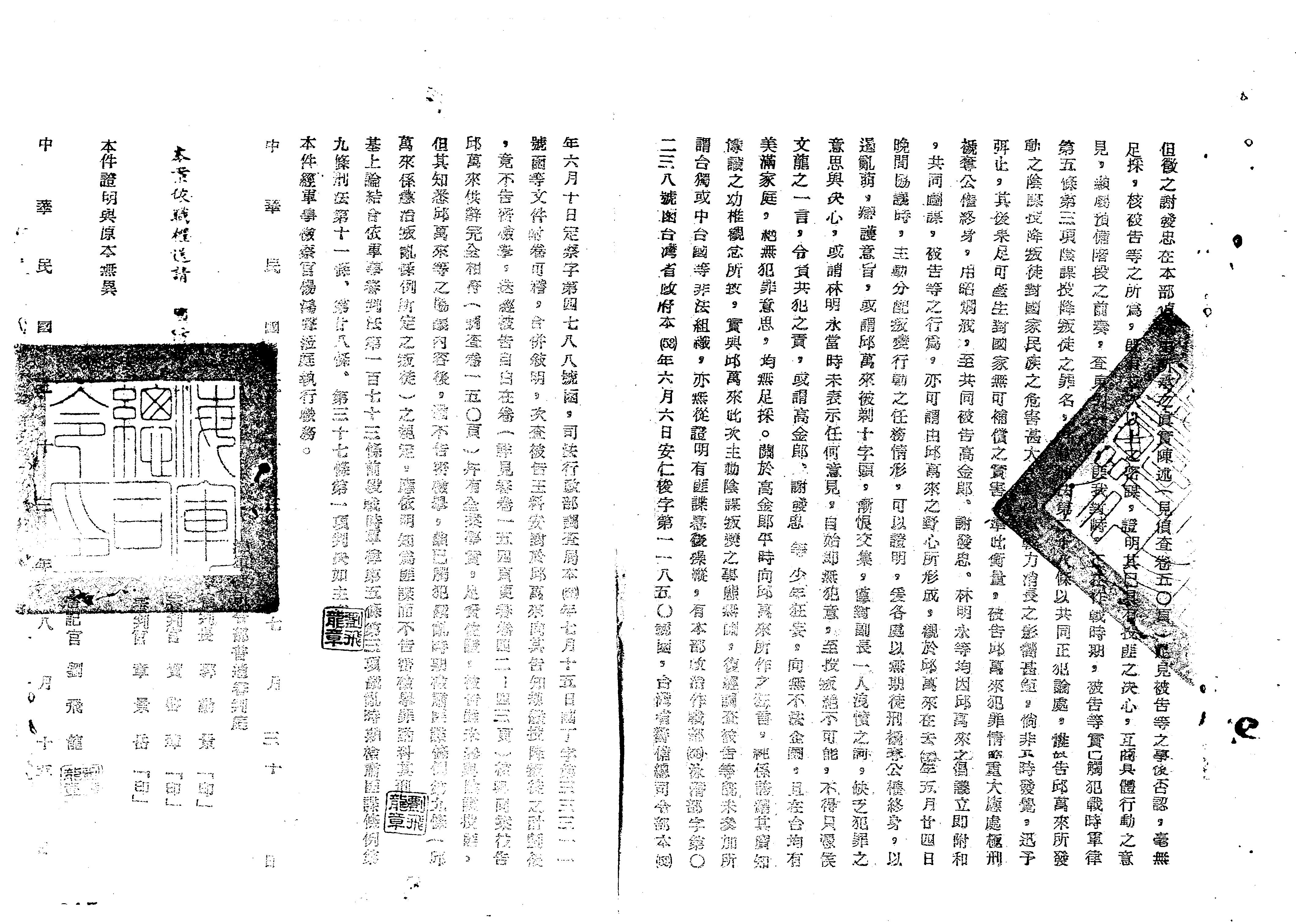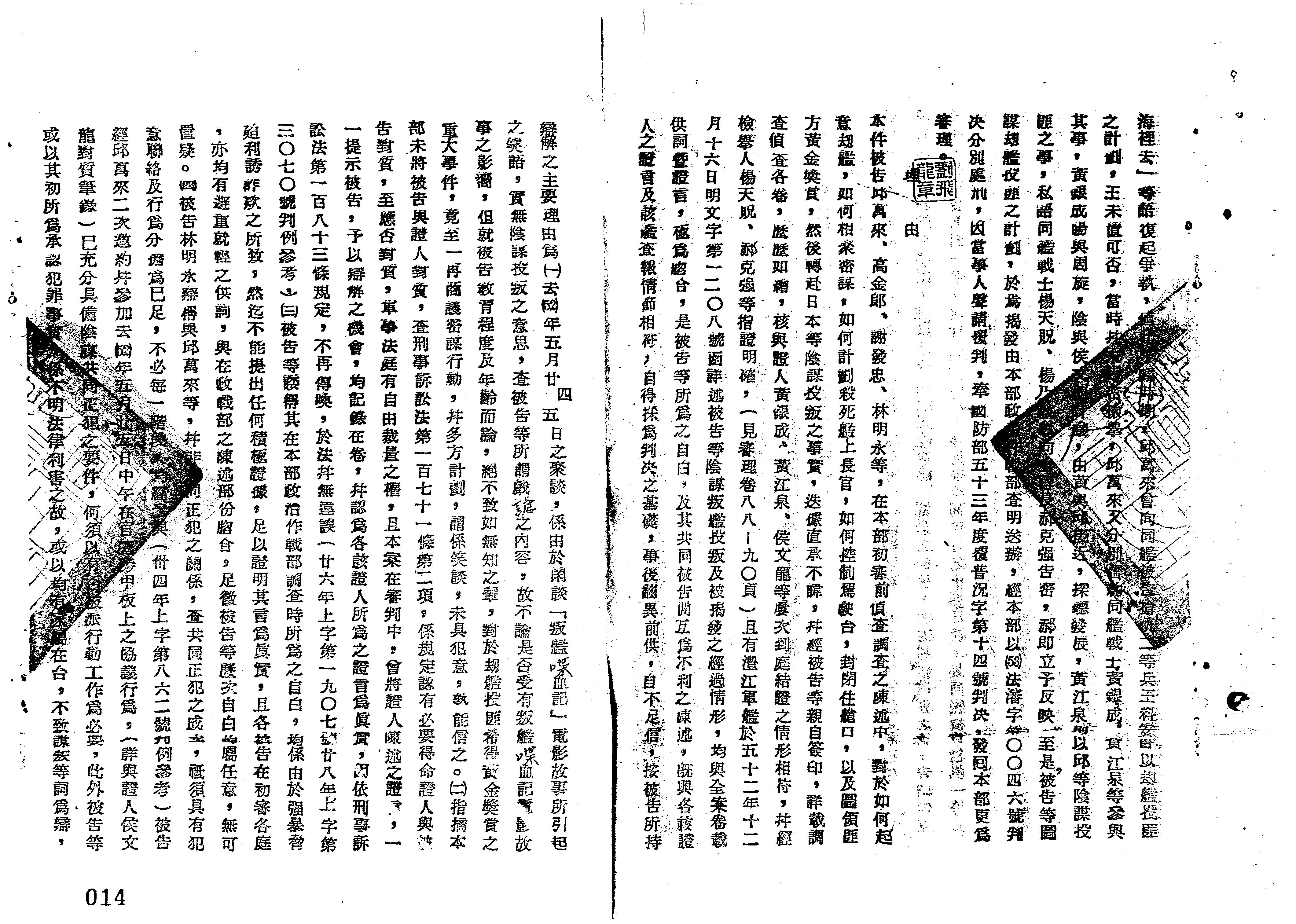 - 法條:軍事審判法第173條前段;戰時軍律第5條第3項;戡亂時期檢肅匪諜條例第9條;刑法第11條、第28條、第37條第1項