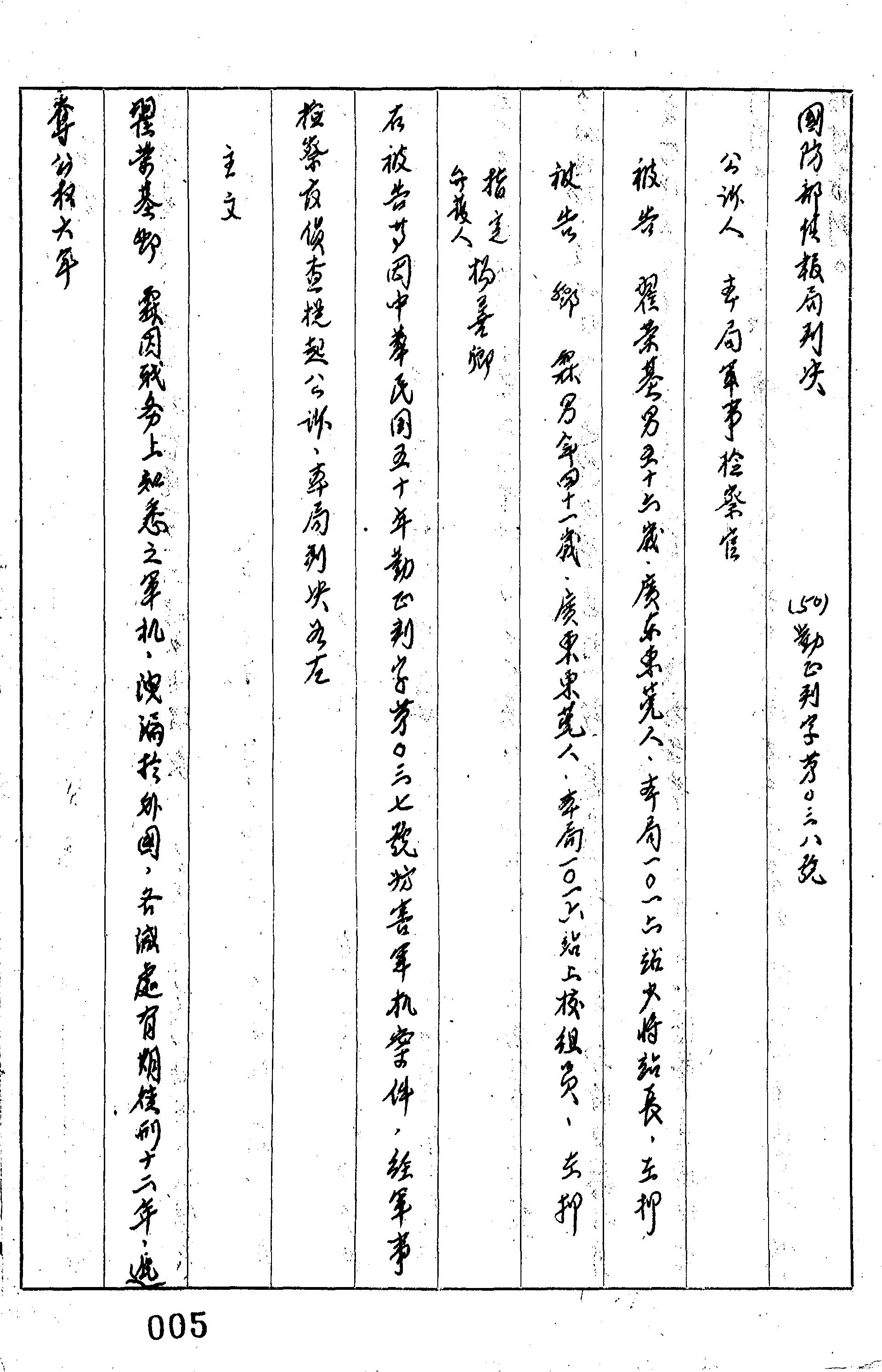 審理機關:國防部情報局