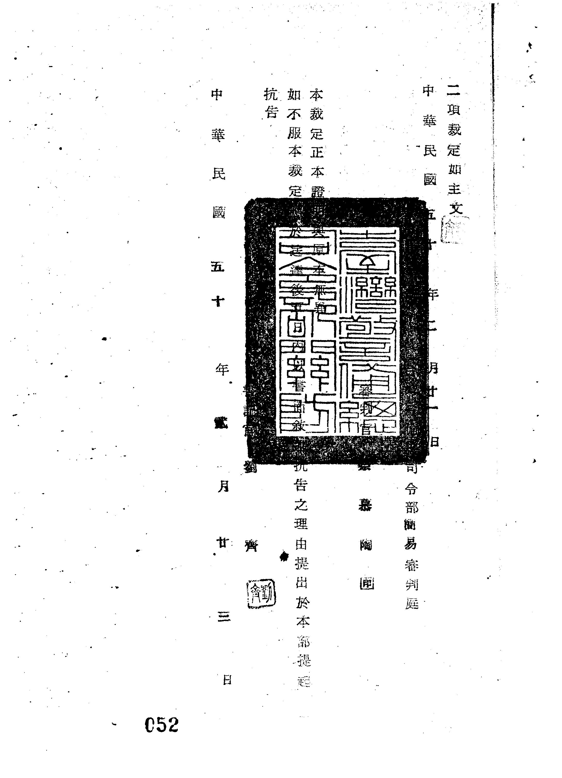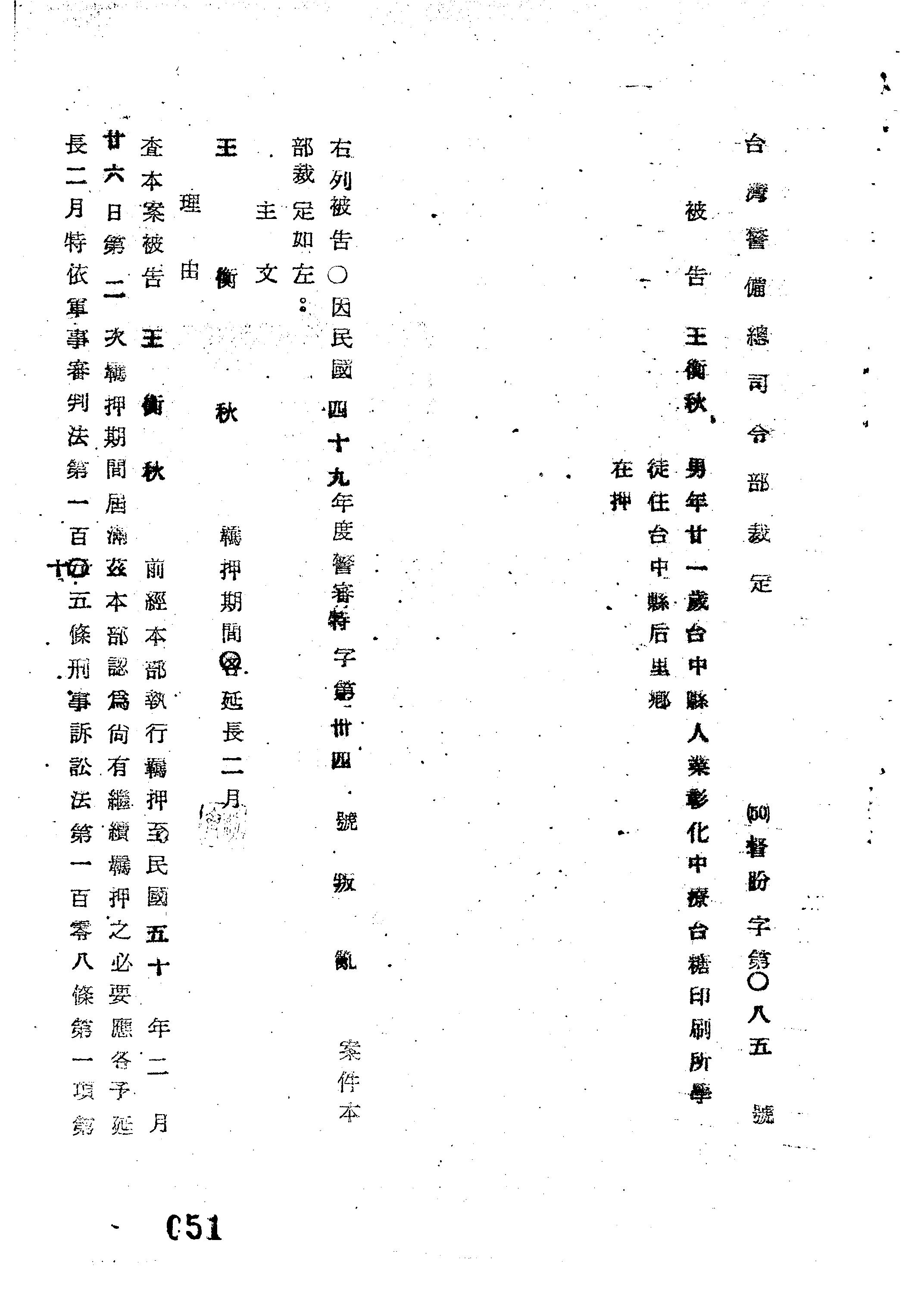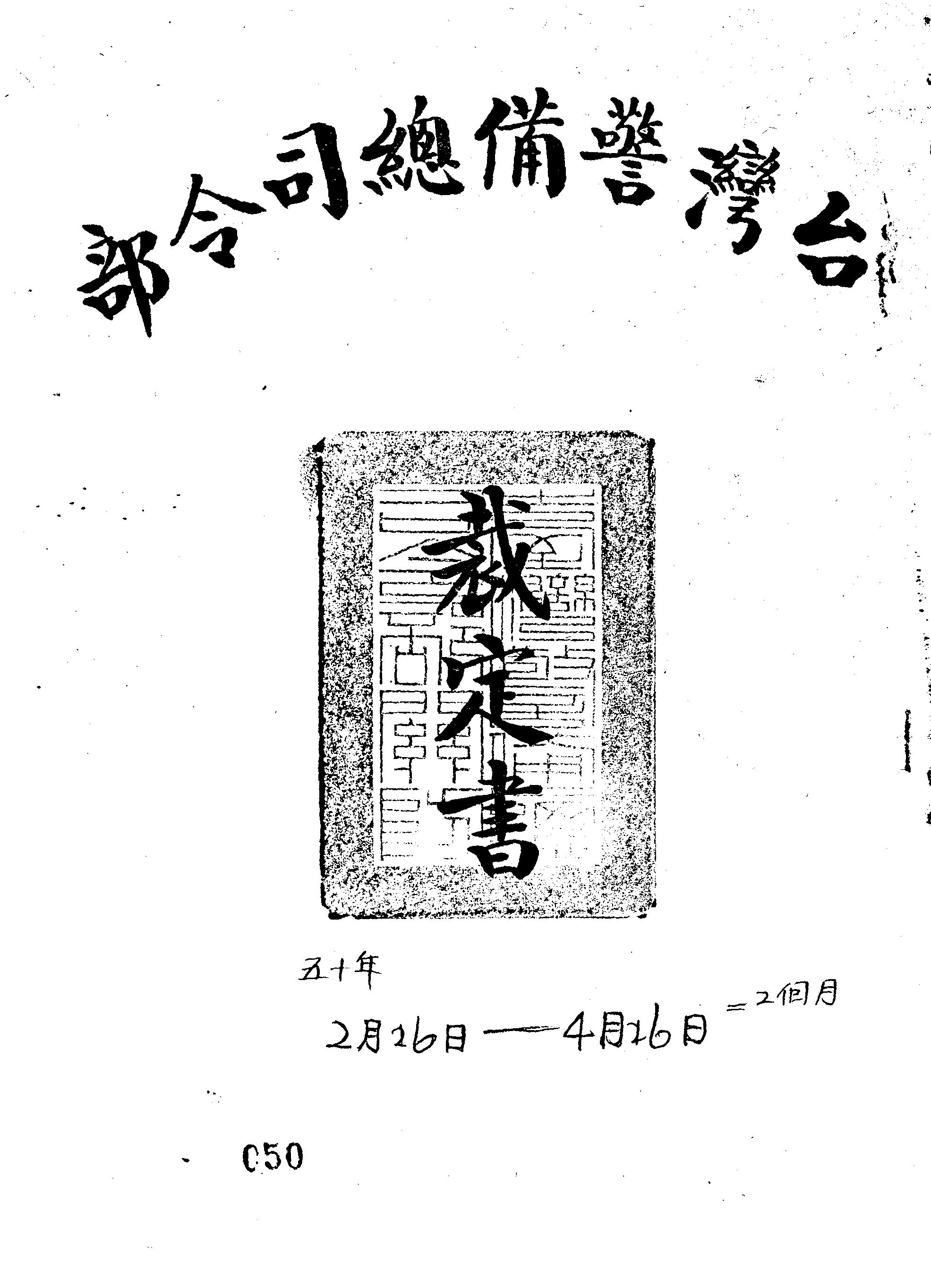 臺灣警備總司令部50年督盼字第0085號裁定書