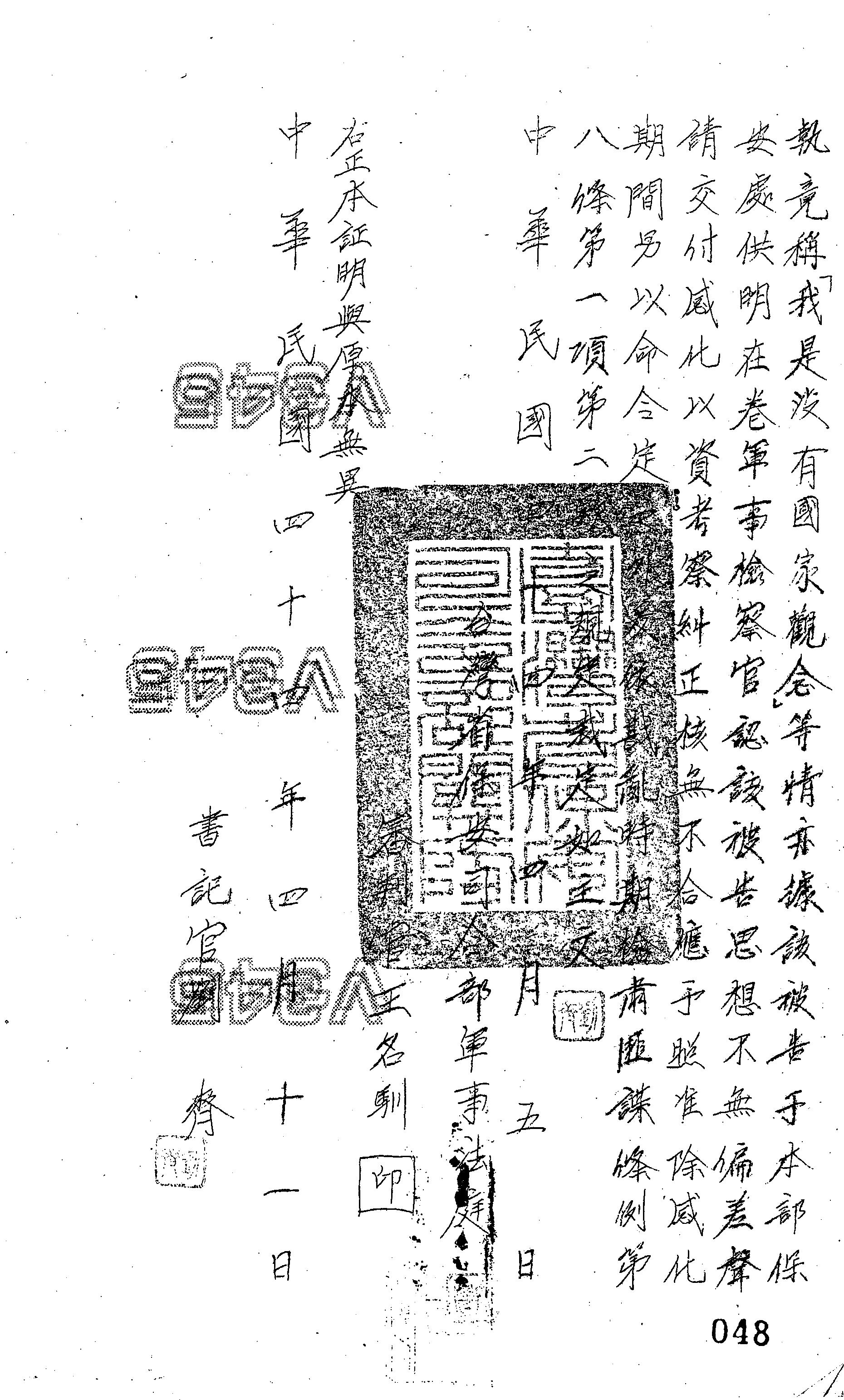 審理機關:臺灣省保安司令部