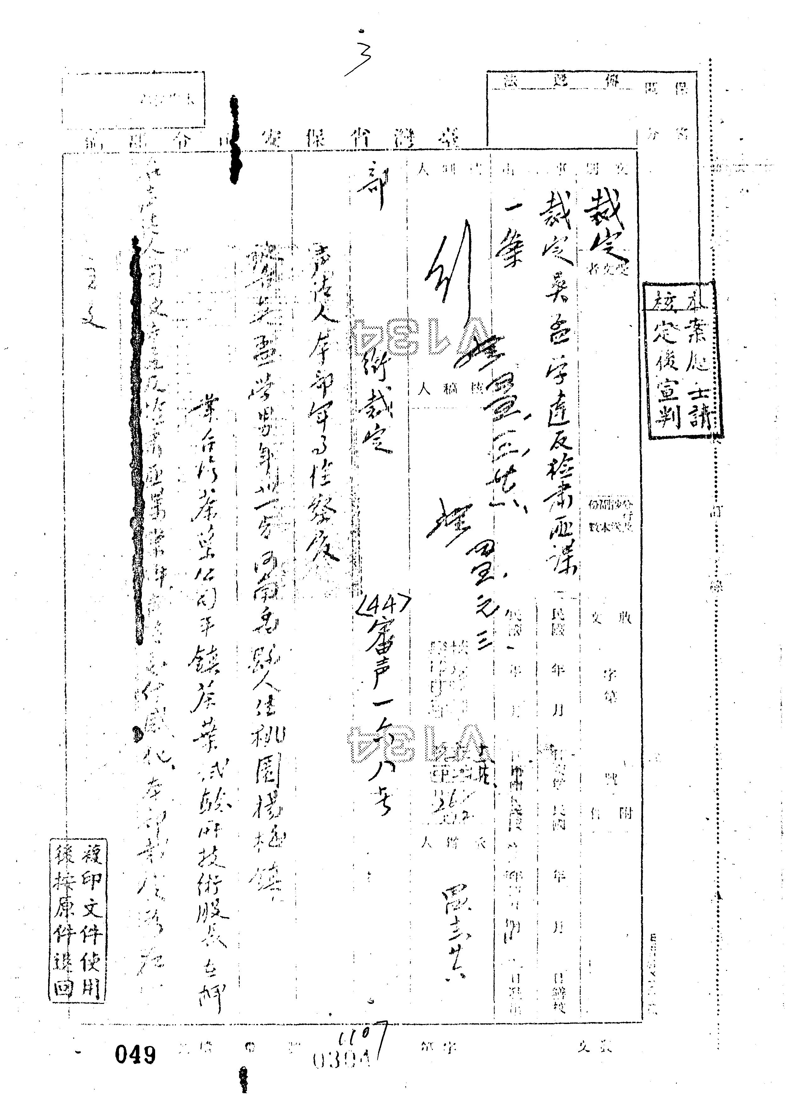 臺灣省保安司令部44年審聲字第0168號裁定書