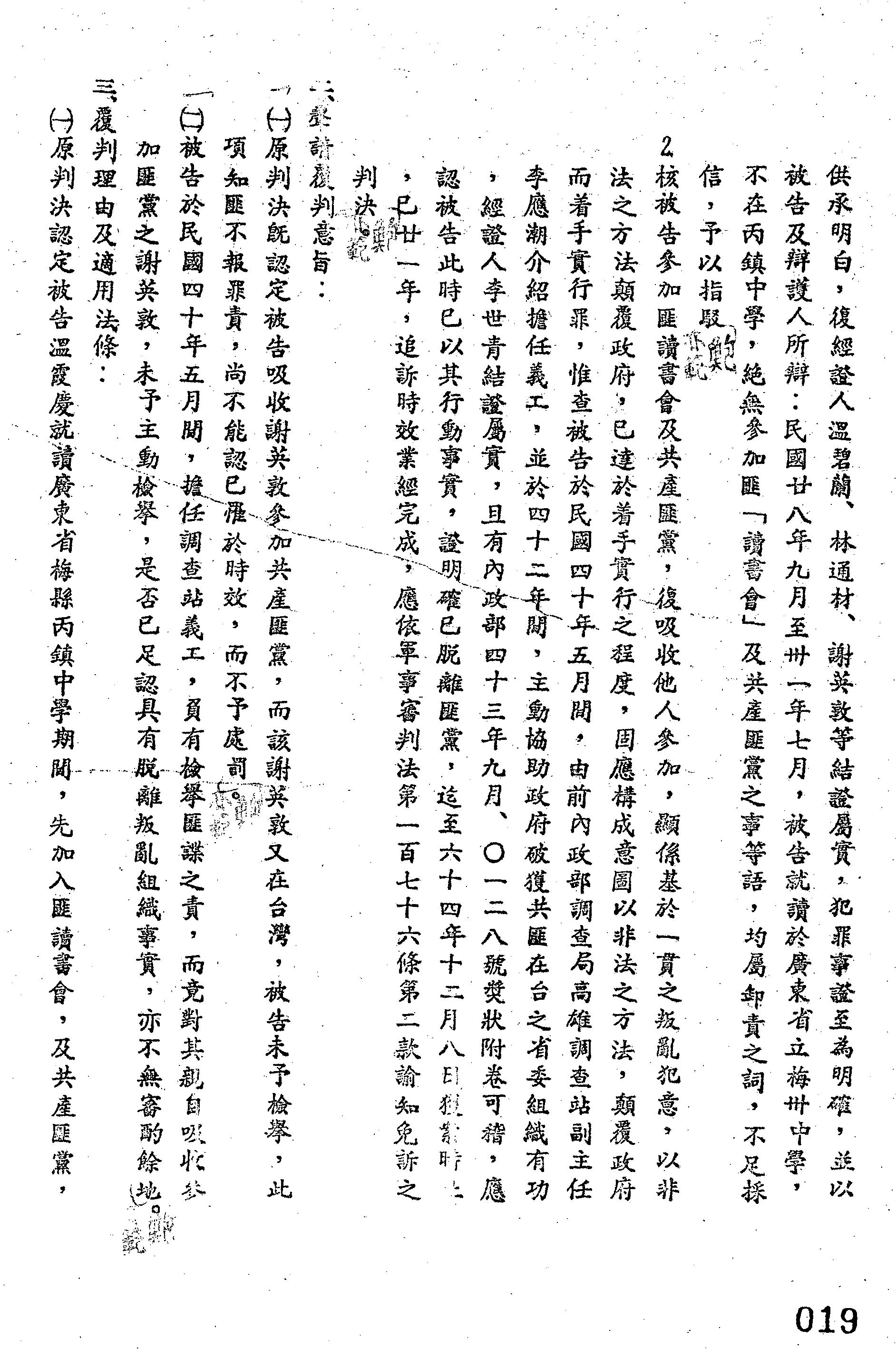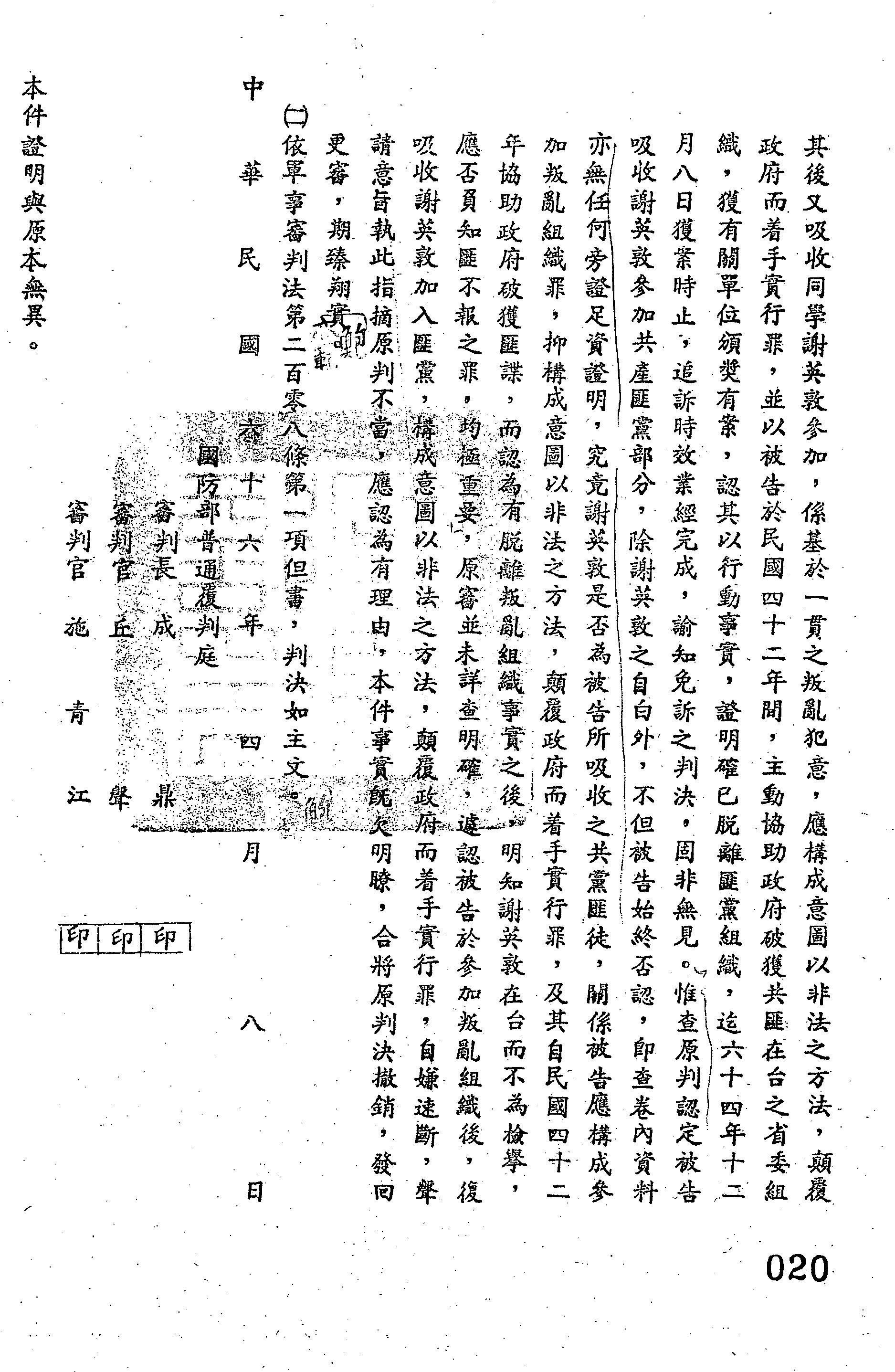 裁判書主文/要旨:原判決撤銷,發回臺灣警備總司令部更為審理。