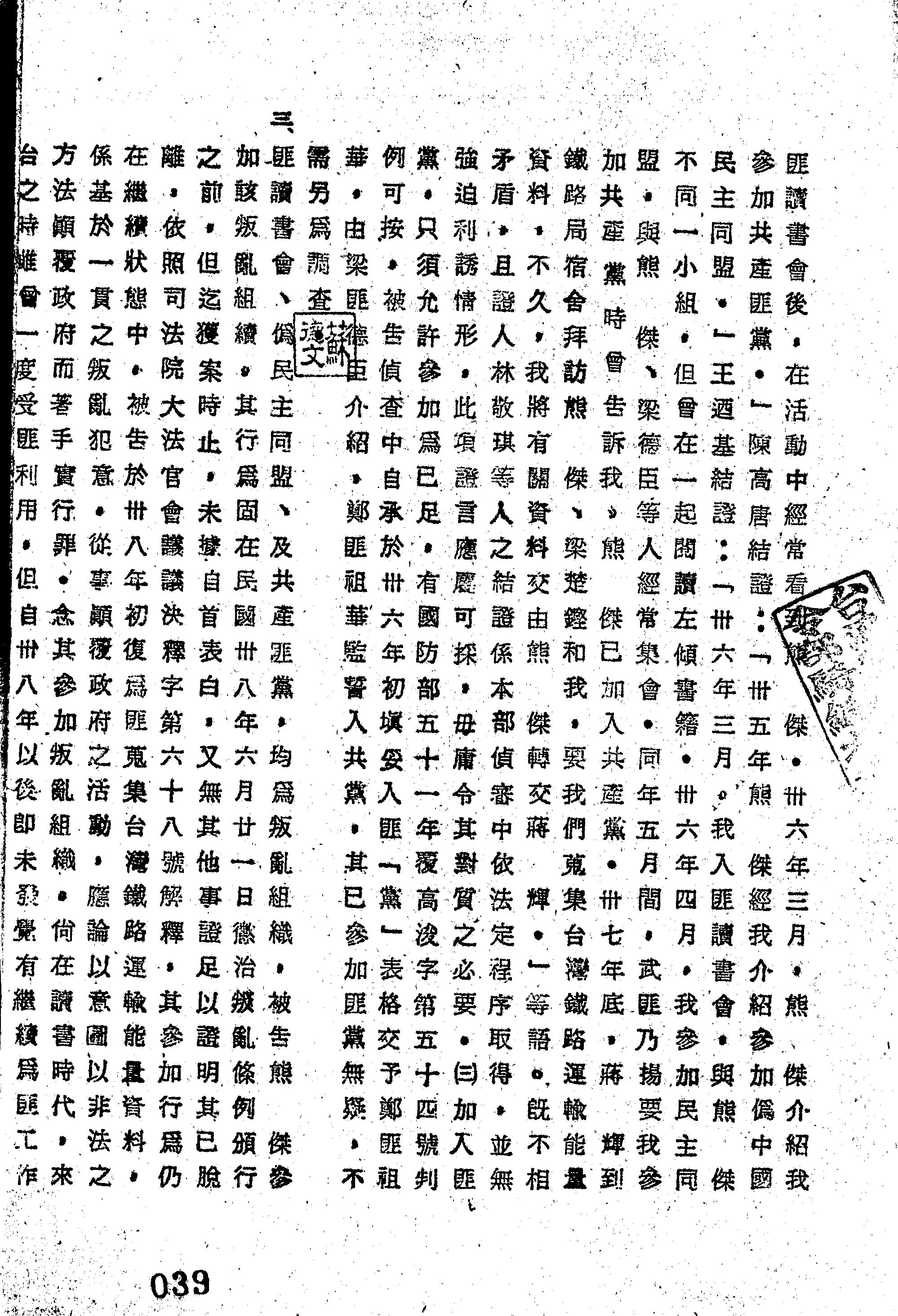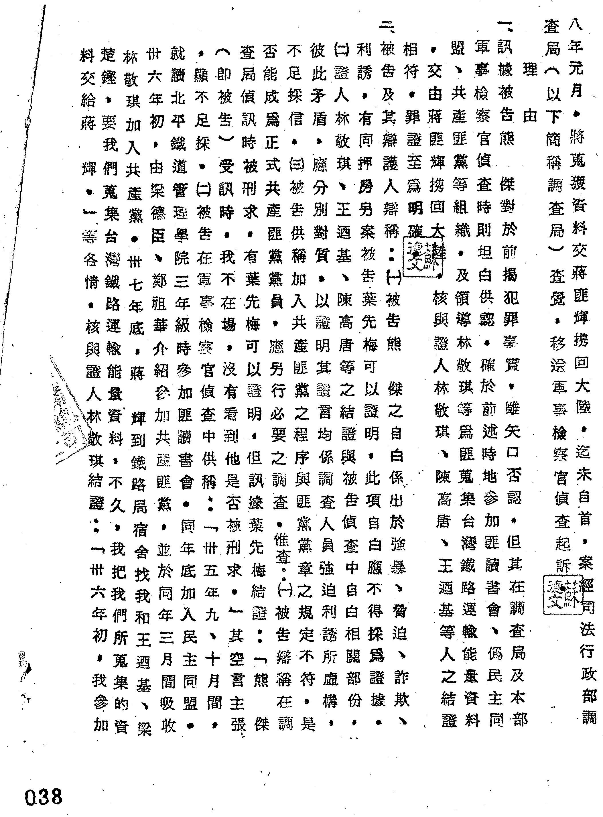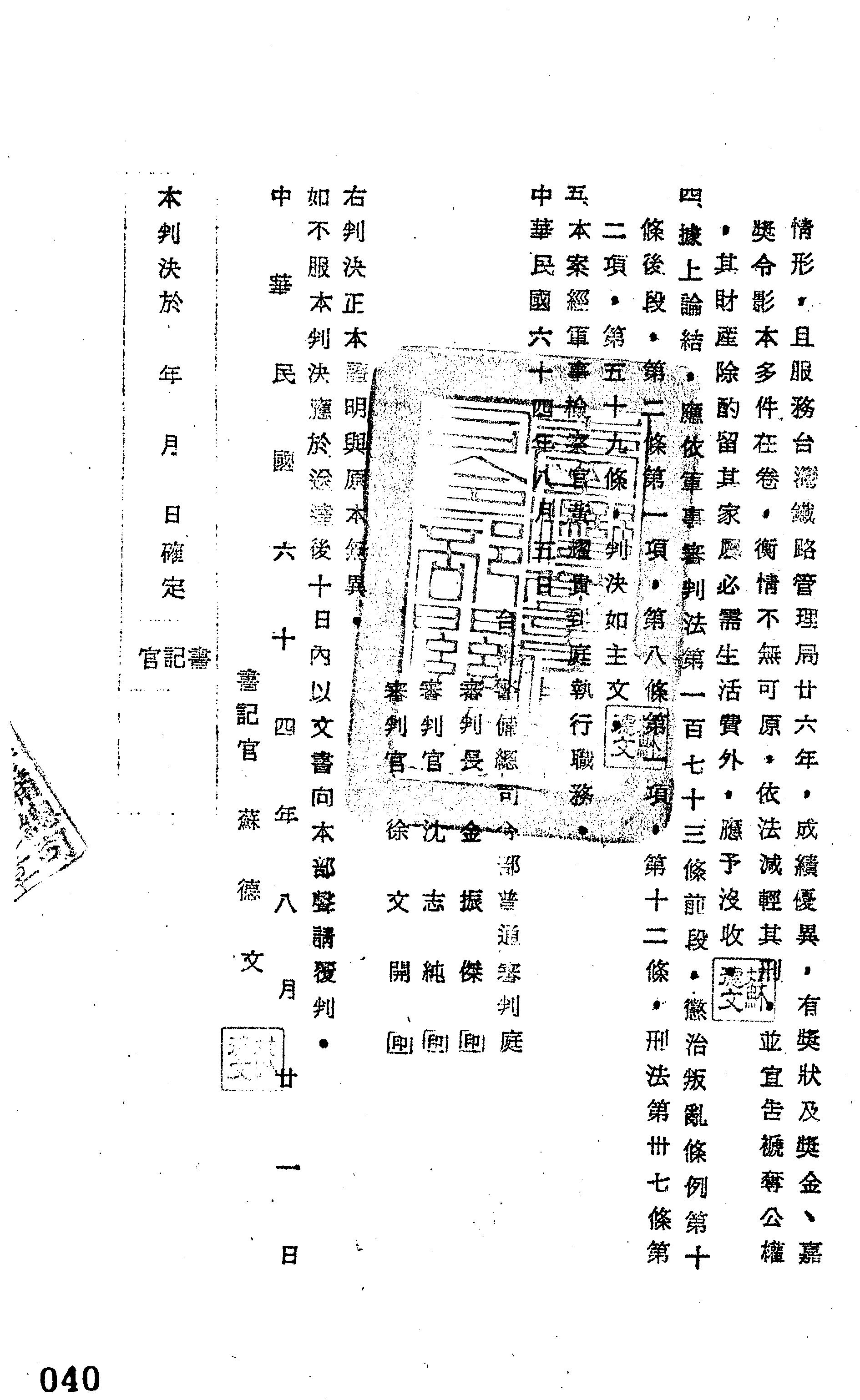 法條:軍事審判法第173條前段;懲治叛亂條例第10條後段、第2條第1項、第8條第1項、第12條;刑法第37條第2項、第59條