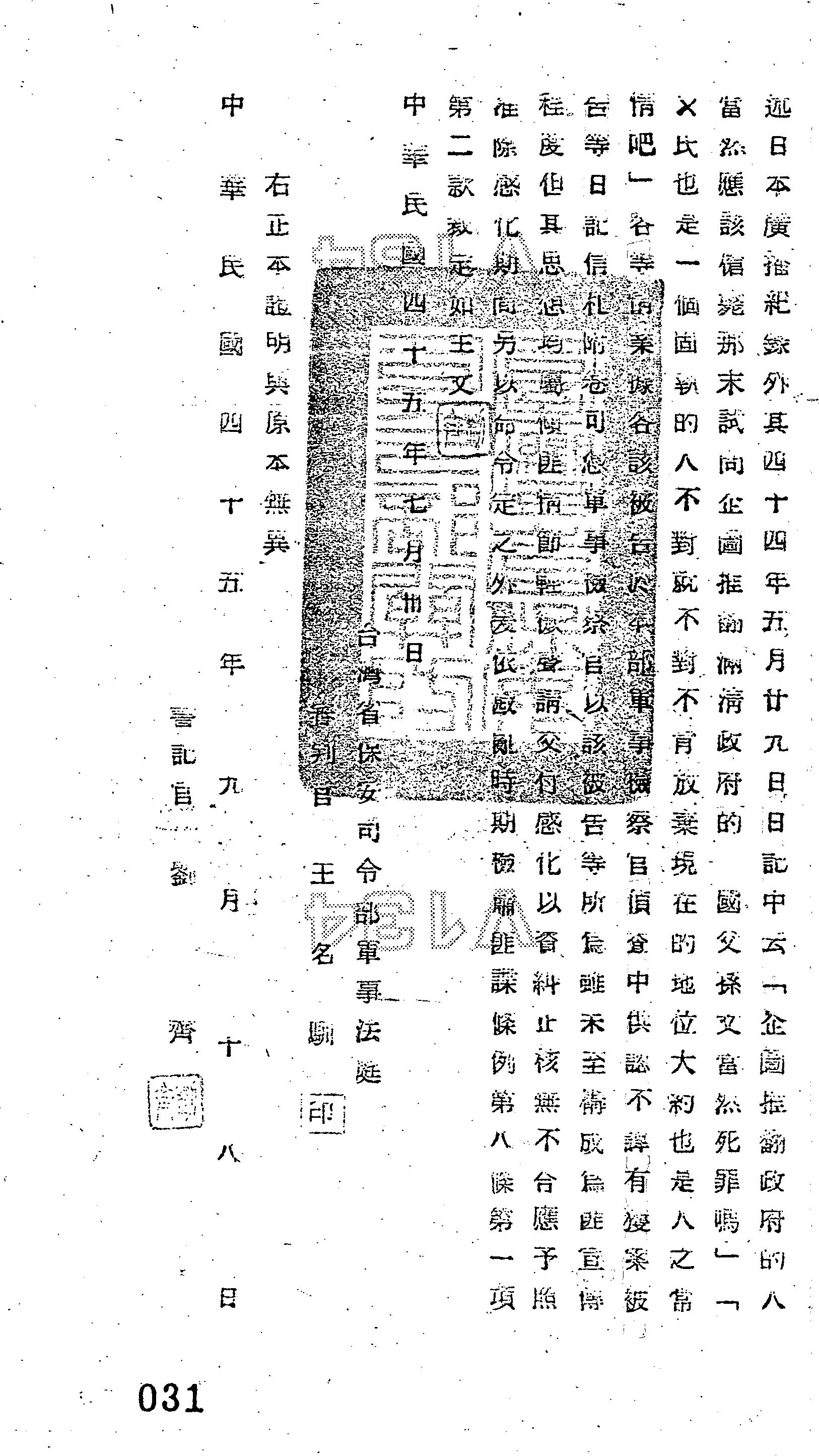 臺灣省保安司令部45年審聲字第0074號裁定書