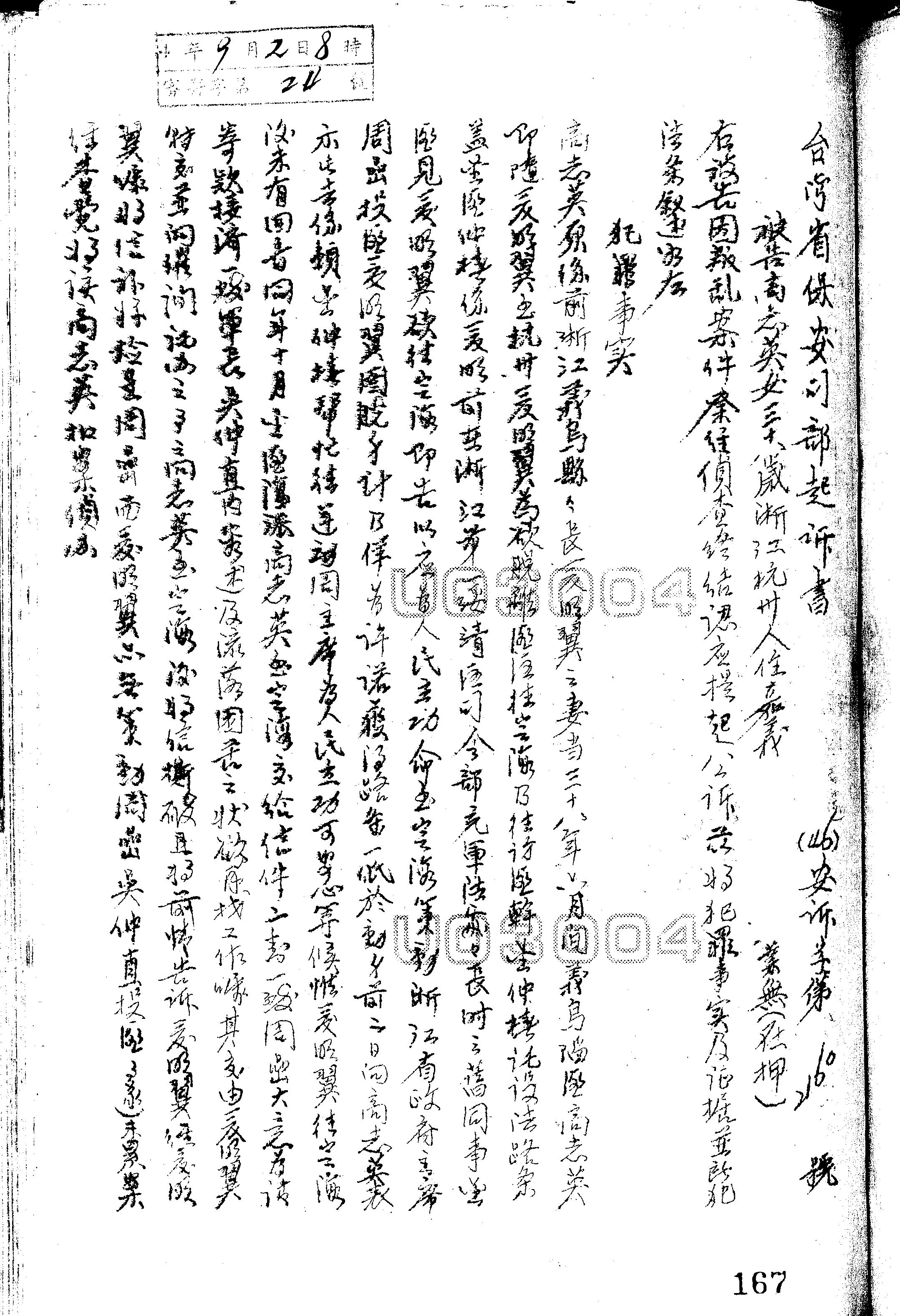 臺灣省保安司令部46年安訴字第2160號起訴書