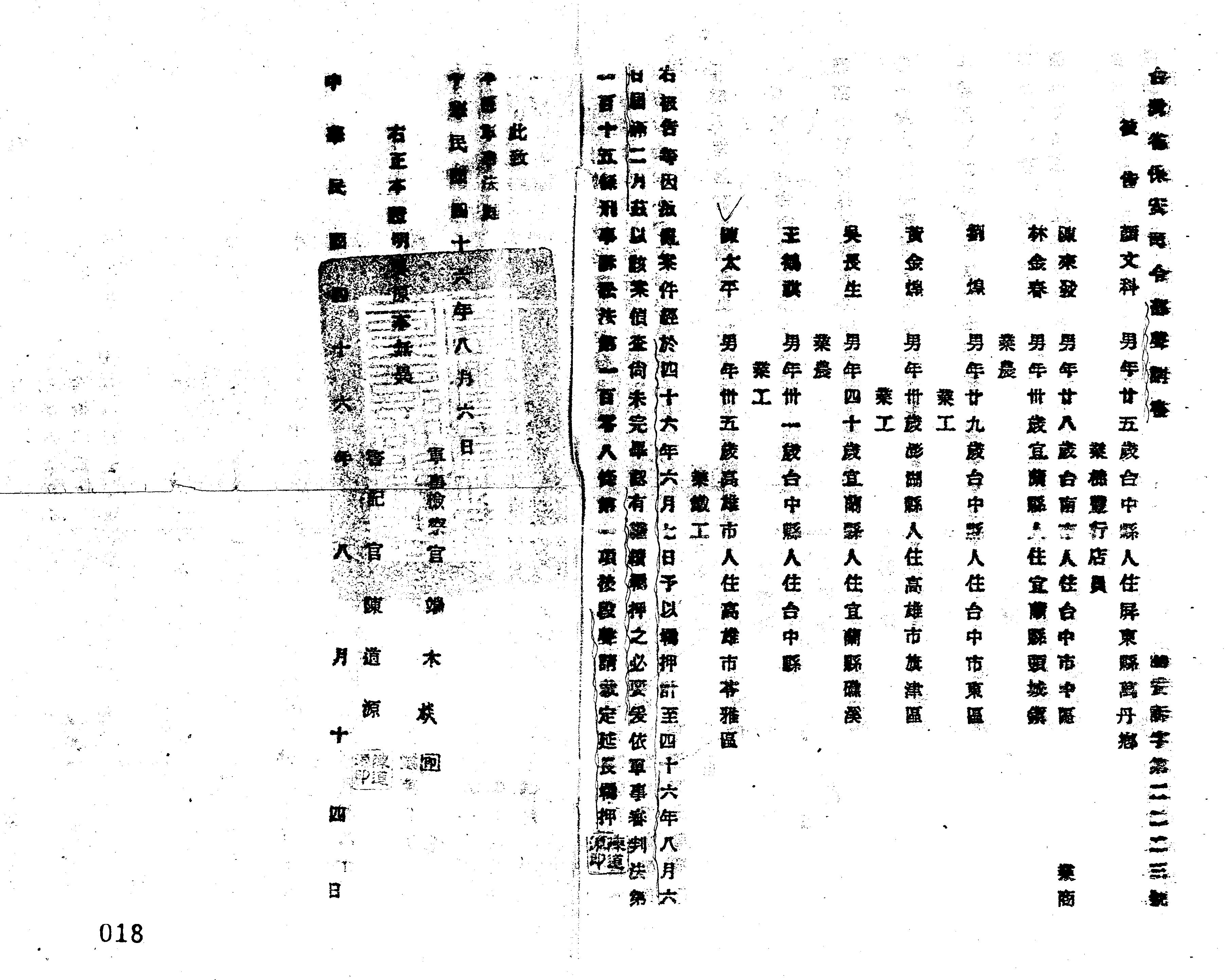 顏文科、陳來發、林金春、劉煌、黃金煌、吳長生、王鶴祺、陳太平
