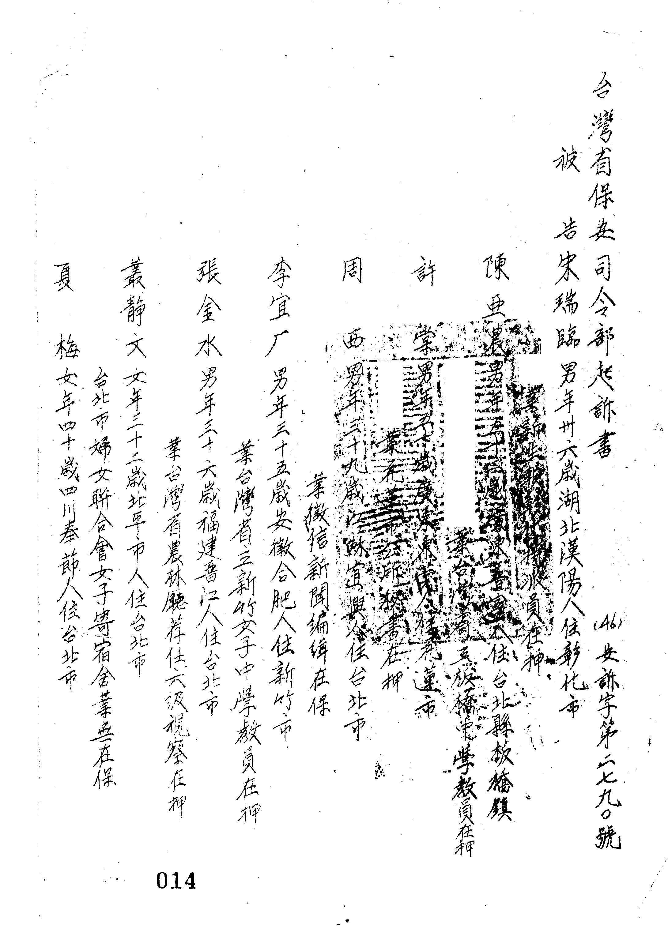 臺灣省保安司令部46年安訴字第2790號起訴書
