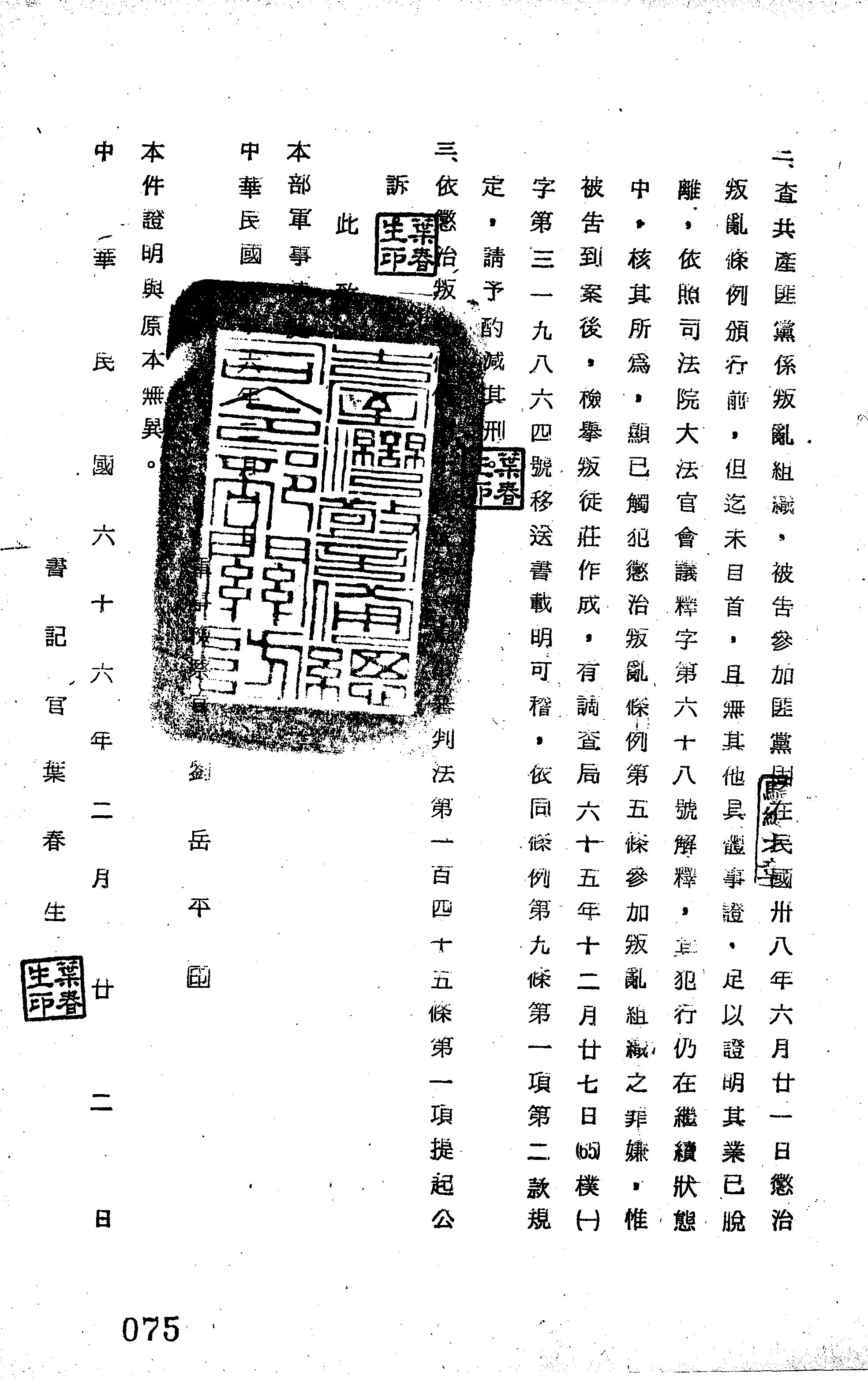 法條:懲治叛亂條例第10條後段;軍事審判法第145條第1項