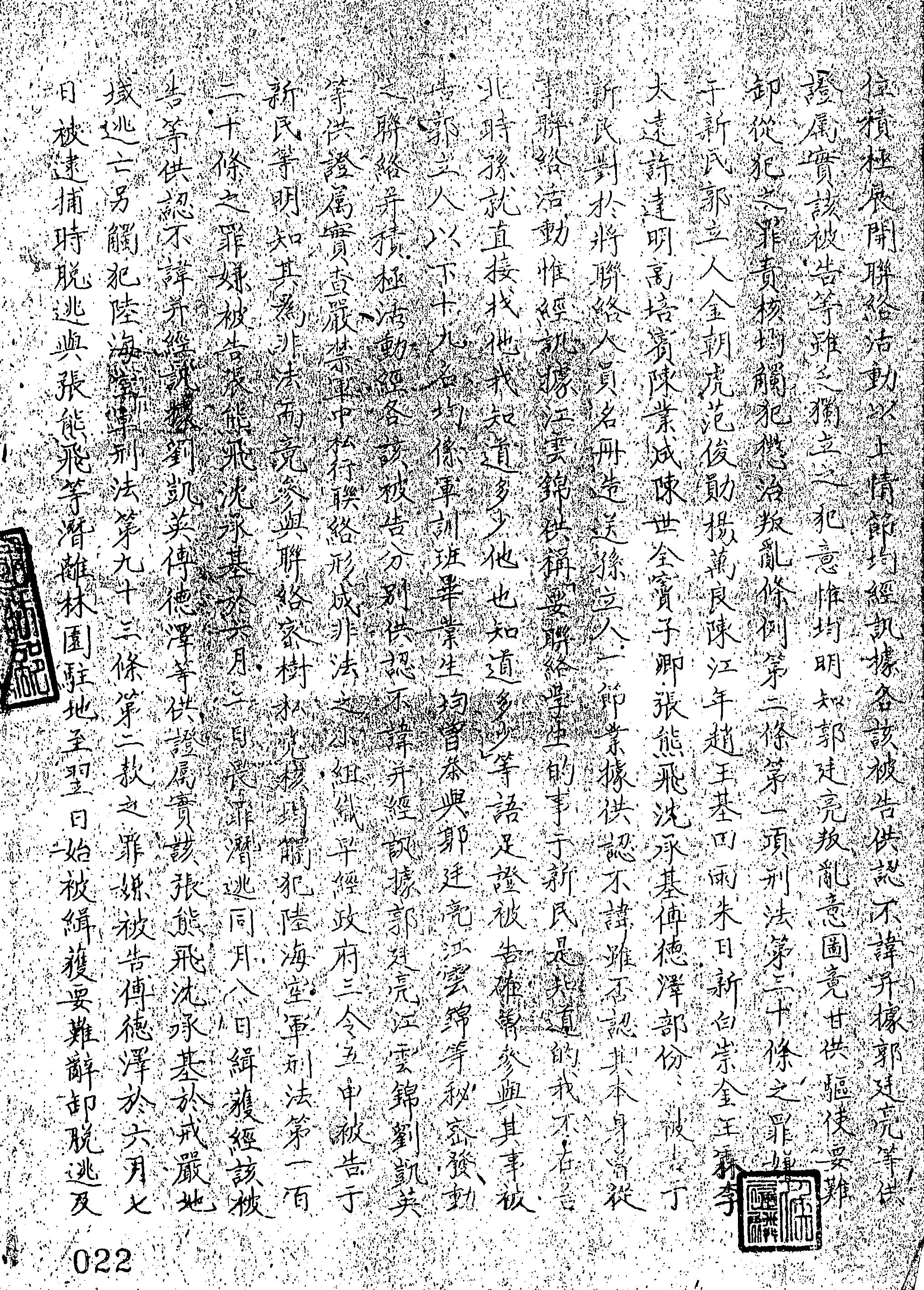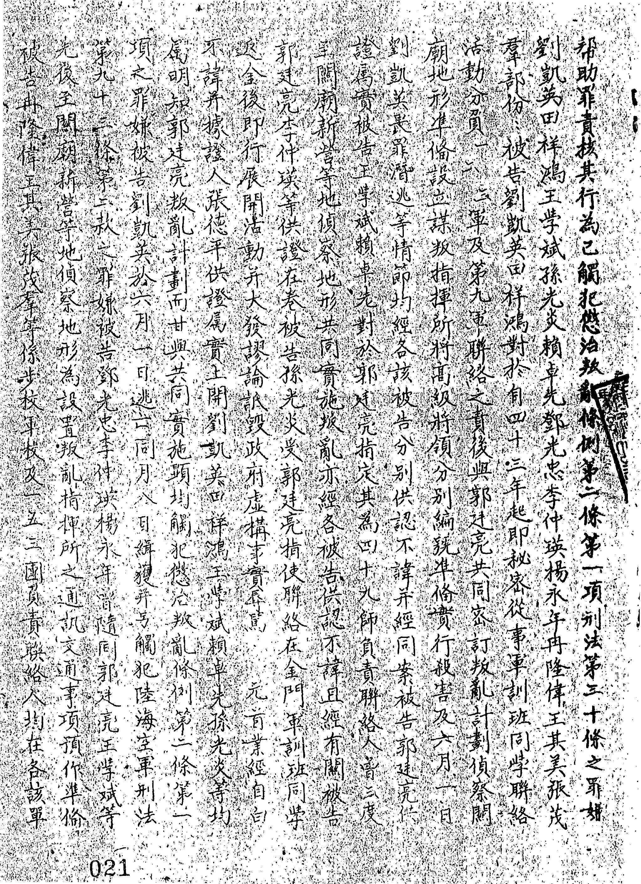 - 裁判書主文/要旨:郭廷亮等因叛亂一案業經偵查終結認應提起公訴。