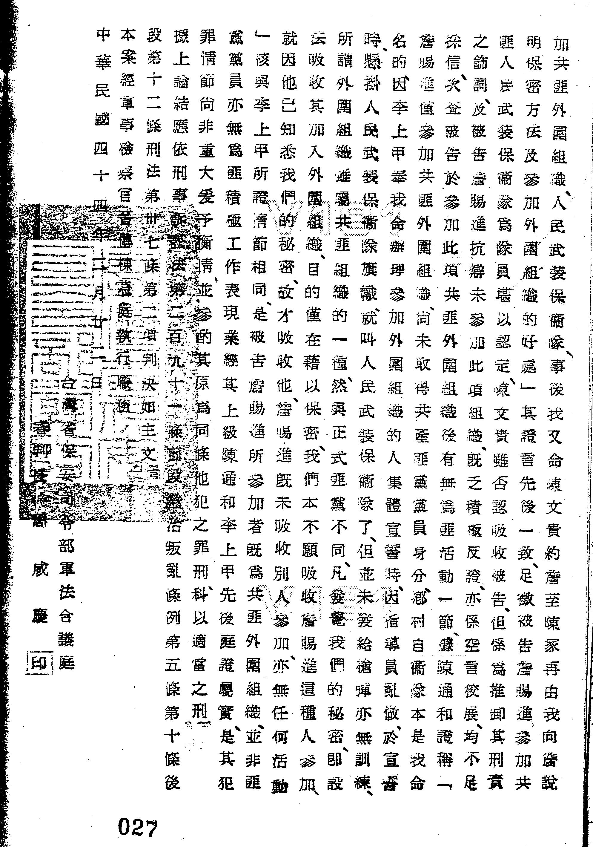 法條:刑事訴訟法第291條前段;懲治叛亂條例第5條、第10條後段、第12條;刑法第37條第2項