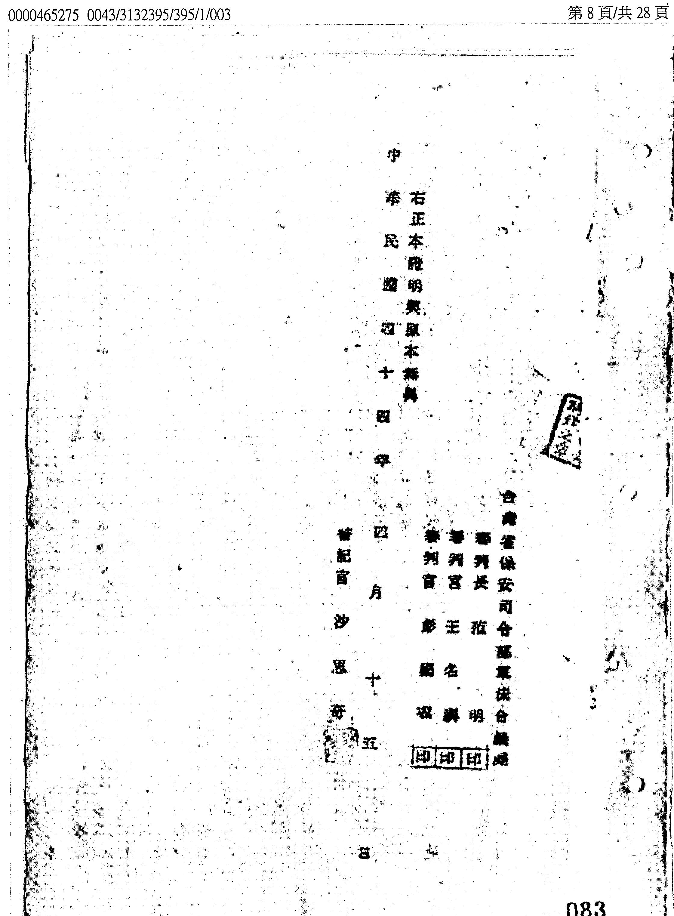 - 審理機關:臺灣省保安司令部