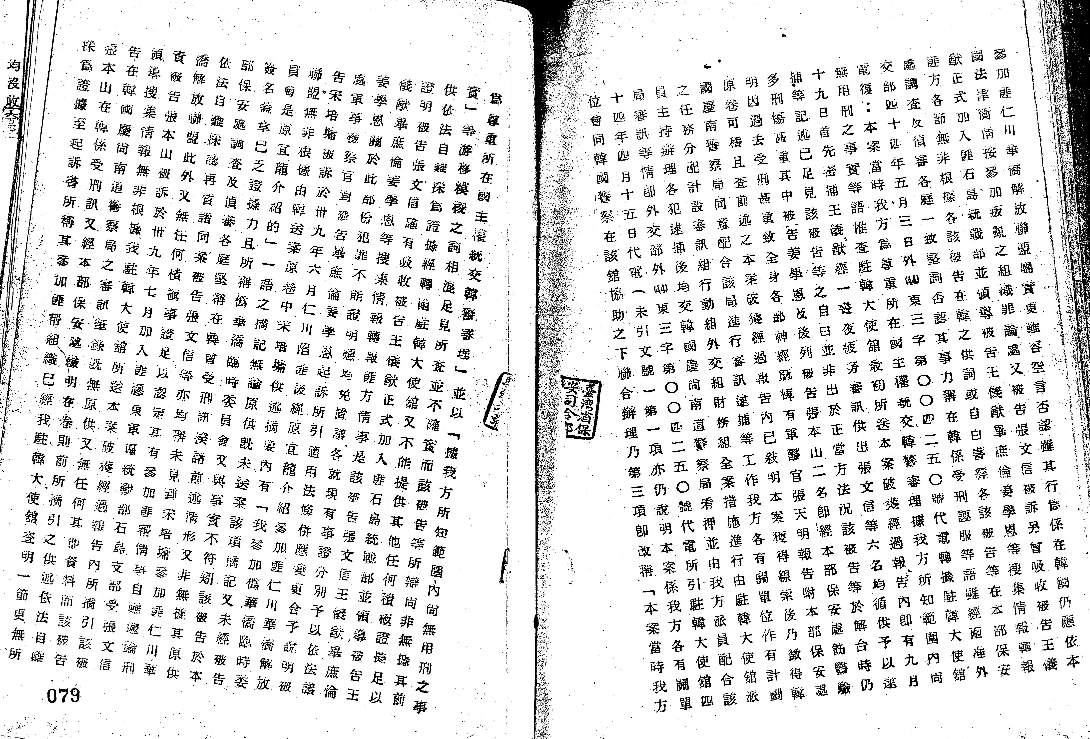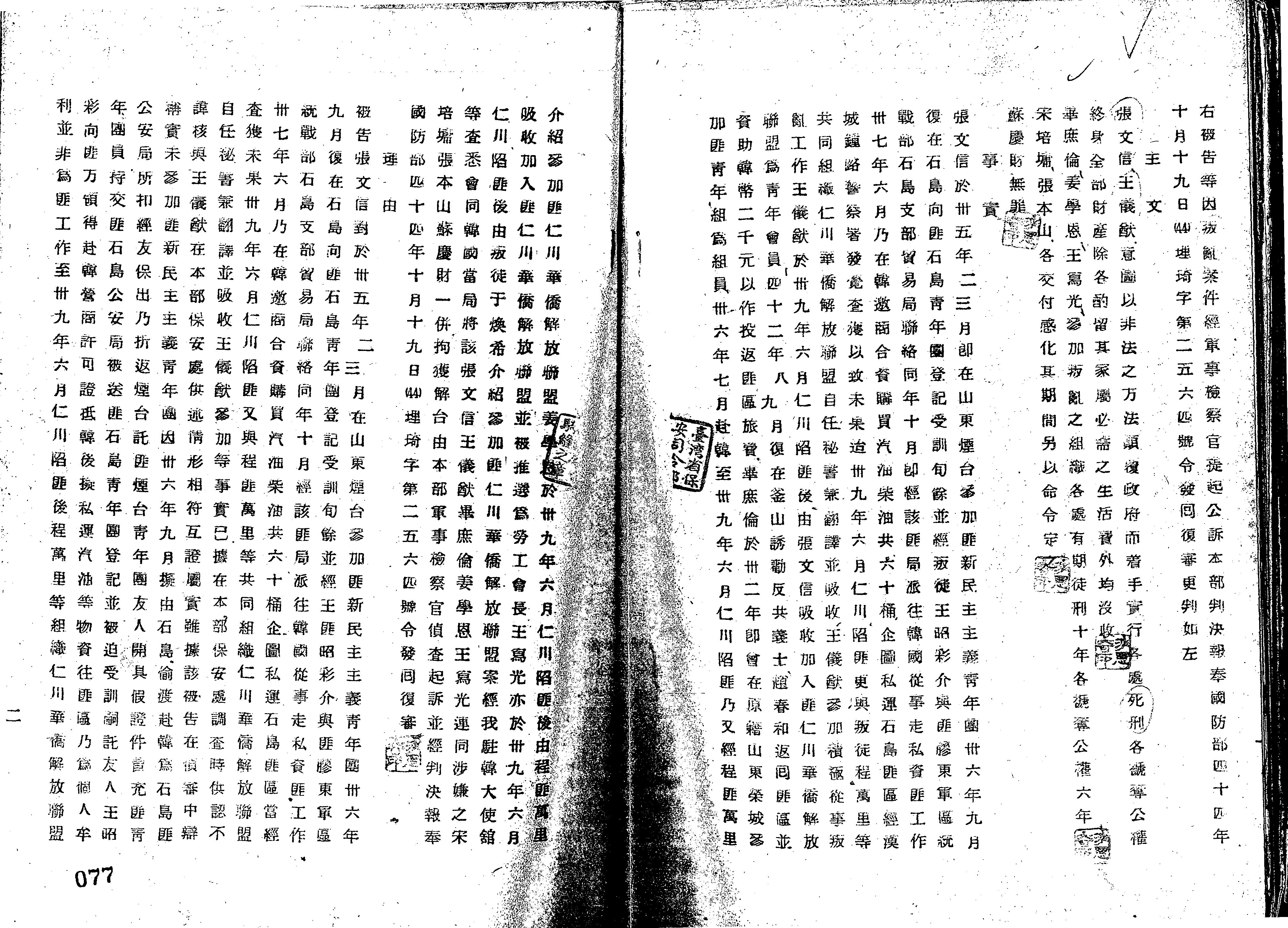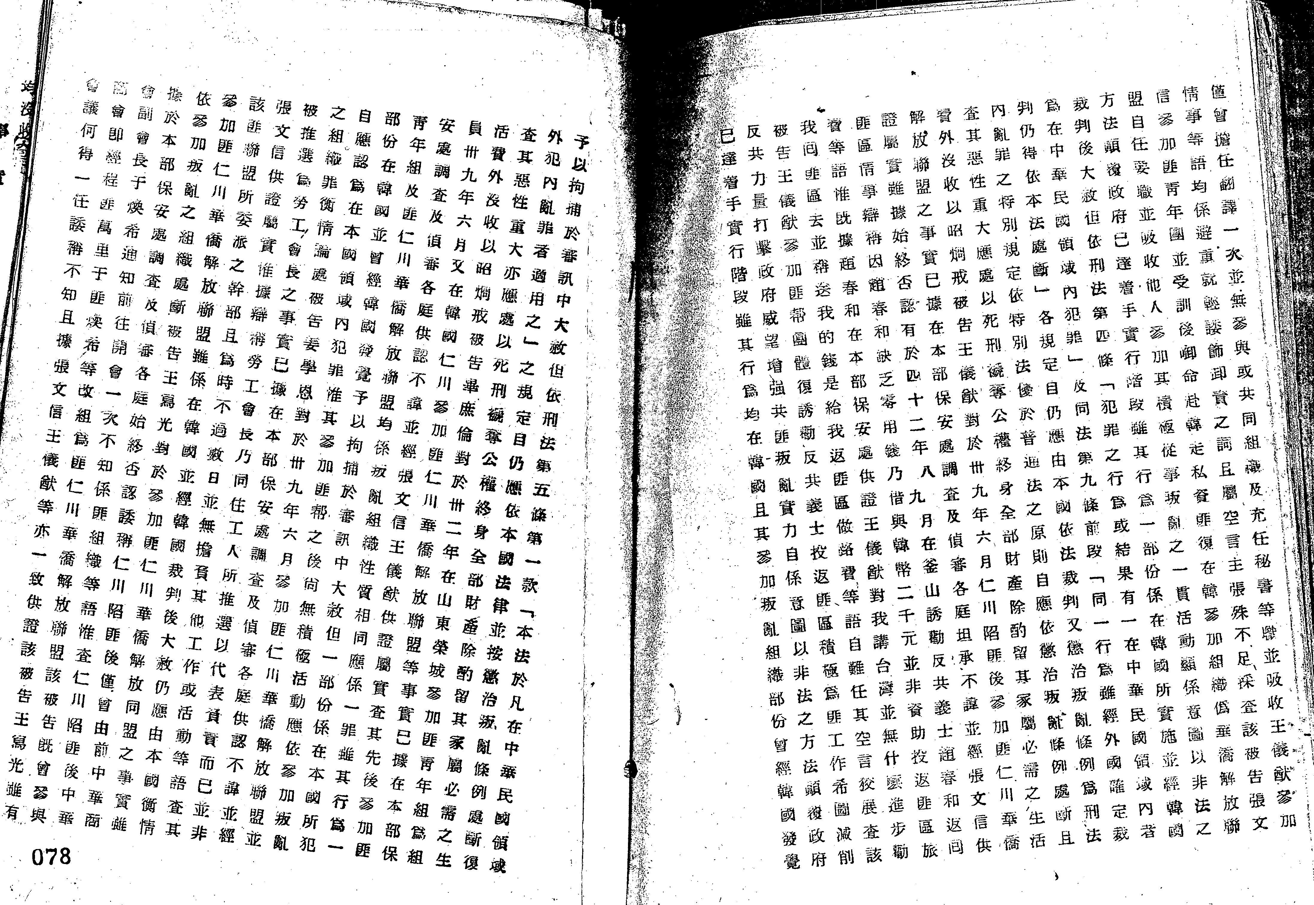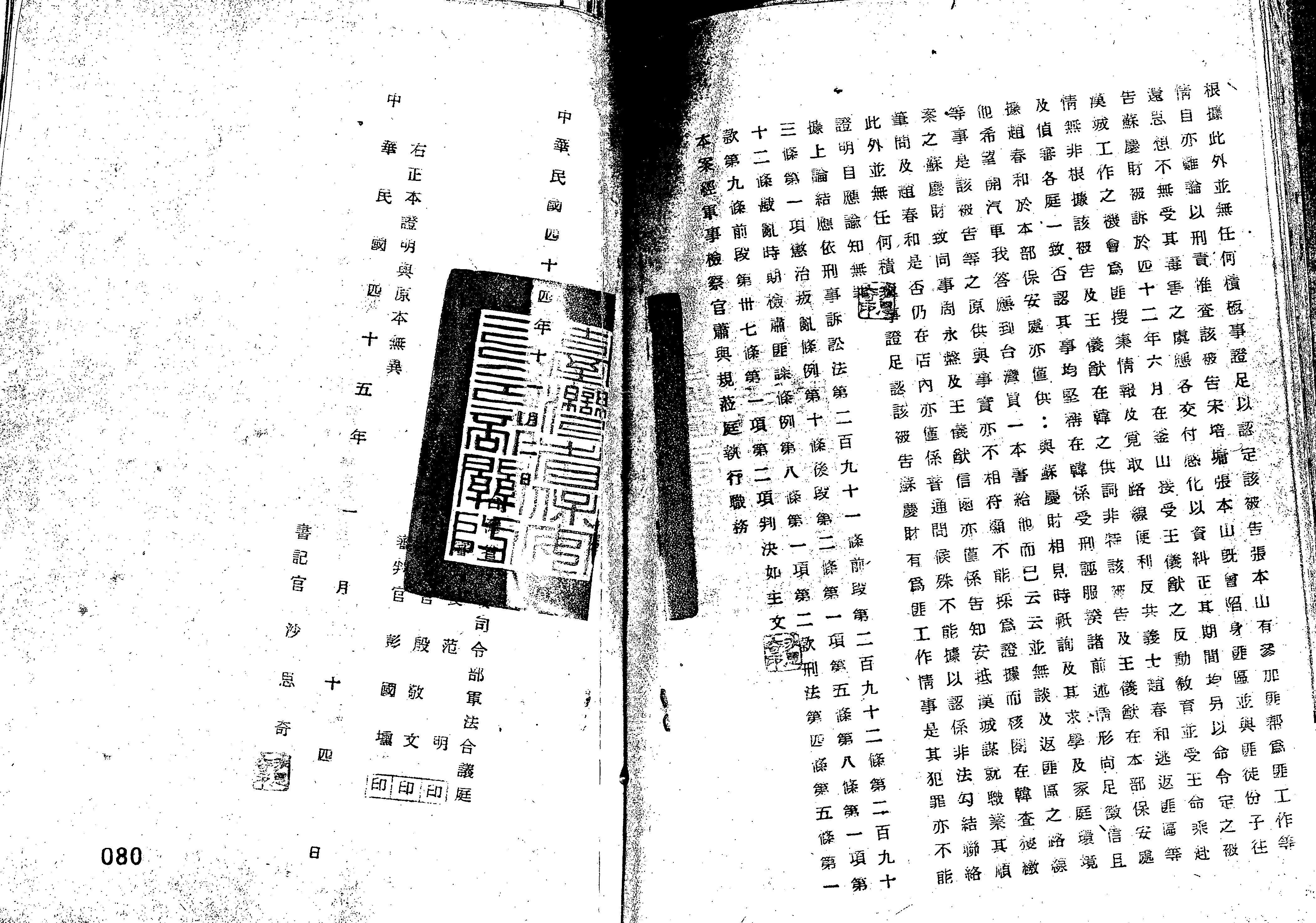 - 法條:刑事訴訟法第291條前段、第292條、第293條第1項;懲治叛亂條例第10條後段、第2條第1項、第5條、第8條第1項、第12條;戡亂時期檢肅匪諜條例第8條第1項第2款;刑法第4條、第5條第1款、第9條前段、第37條第1項、第37條第2項