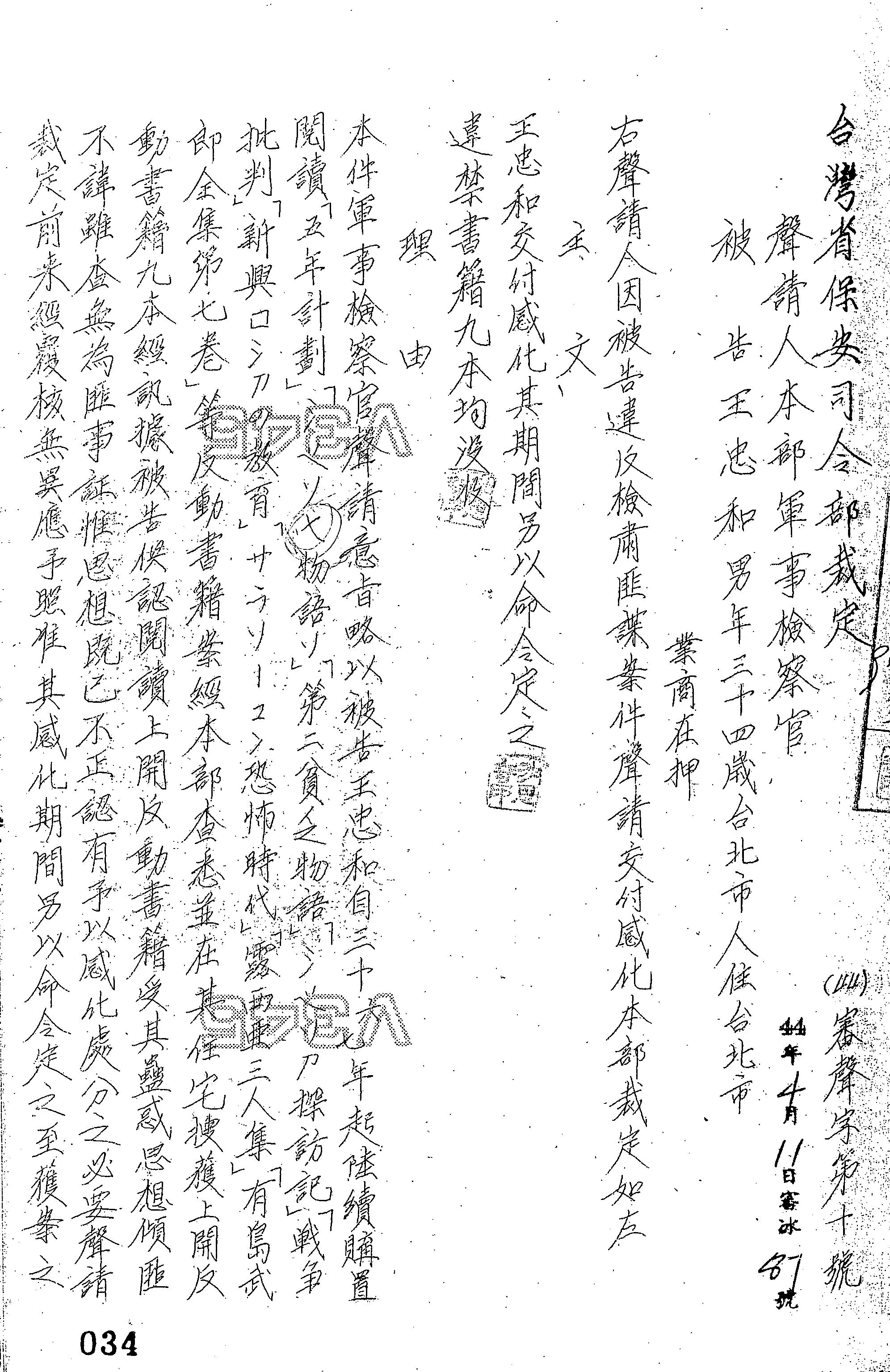 裁判書主文/要旨:王忠和交付感化,其期間另以命令定之,違禁書籍9本均沒收。