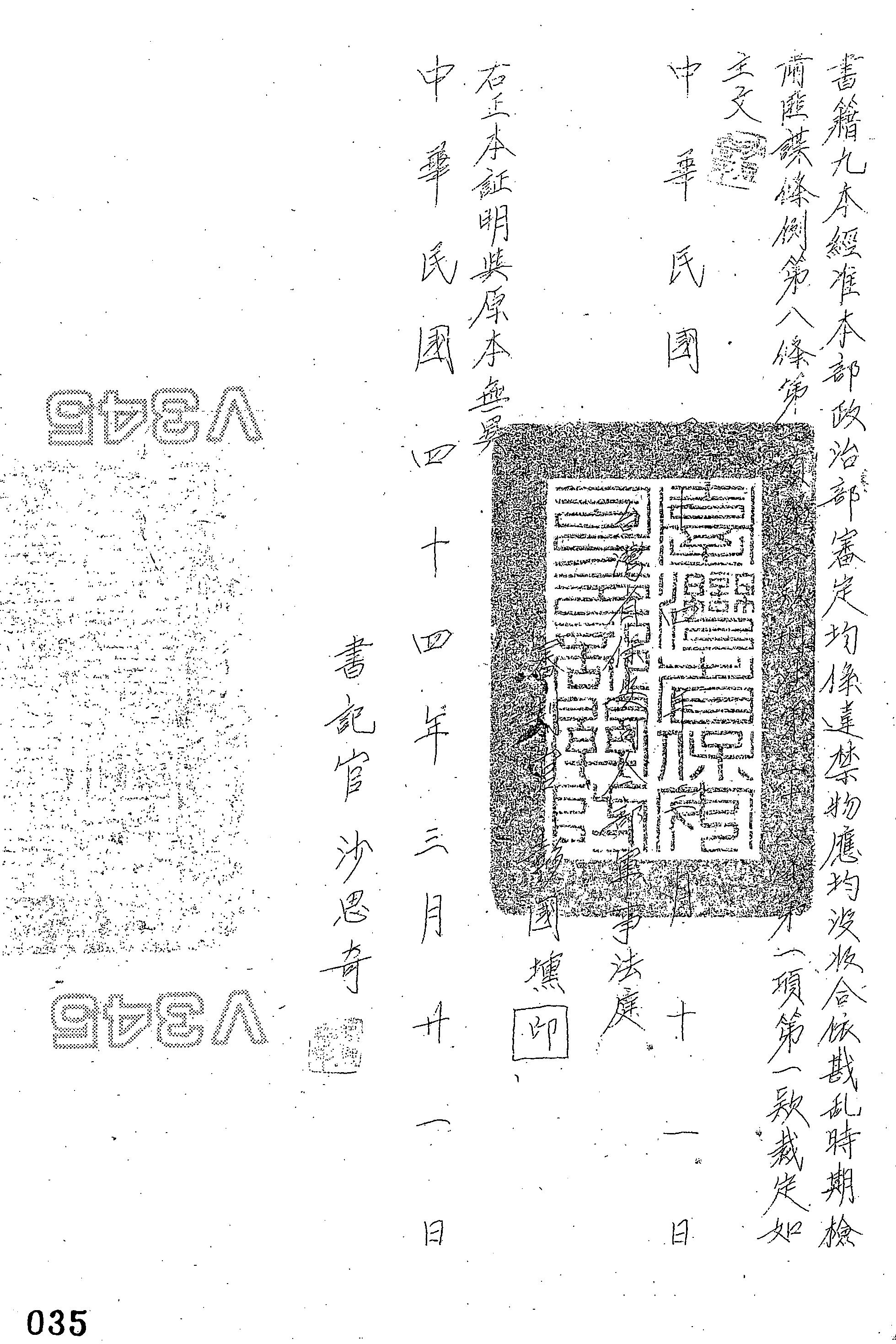 本件資料因年代久遠已逾著作財產權保護期間,或依法令特別規定不受著作權利保護,而進入公眾領域,得自由利用而不受著作權相關權利之限制,但利用時仍應尊重著作人格權。
