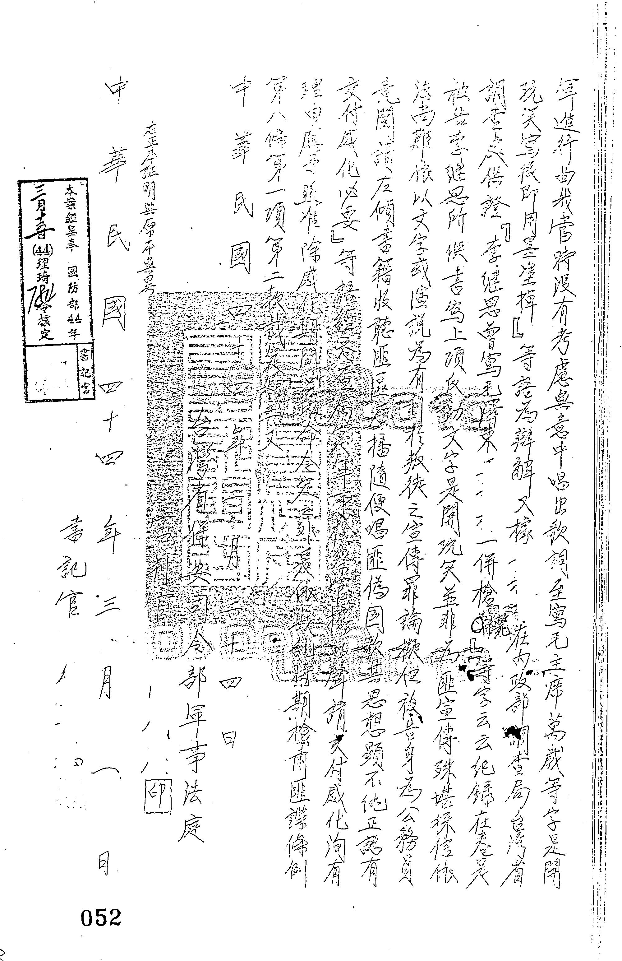 臺灣省保安司令部44年審聲字第0020號裁定書