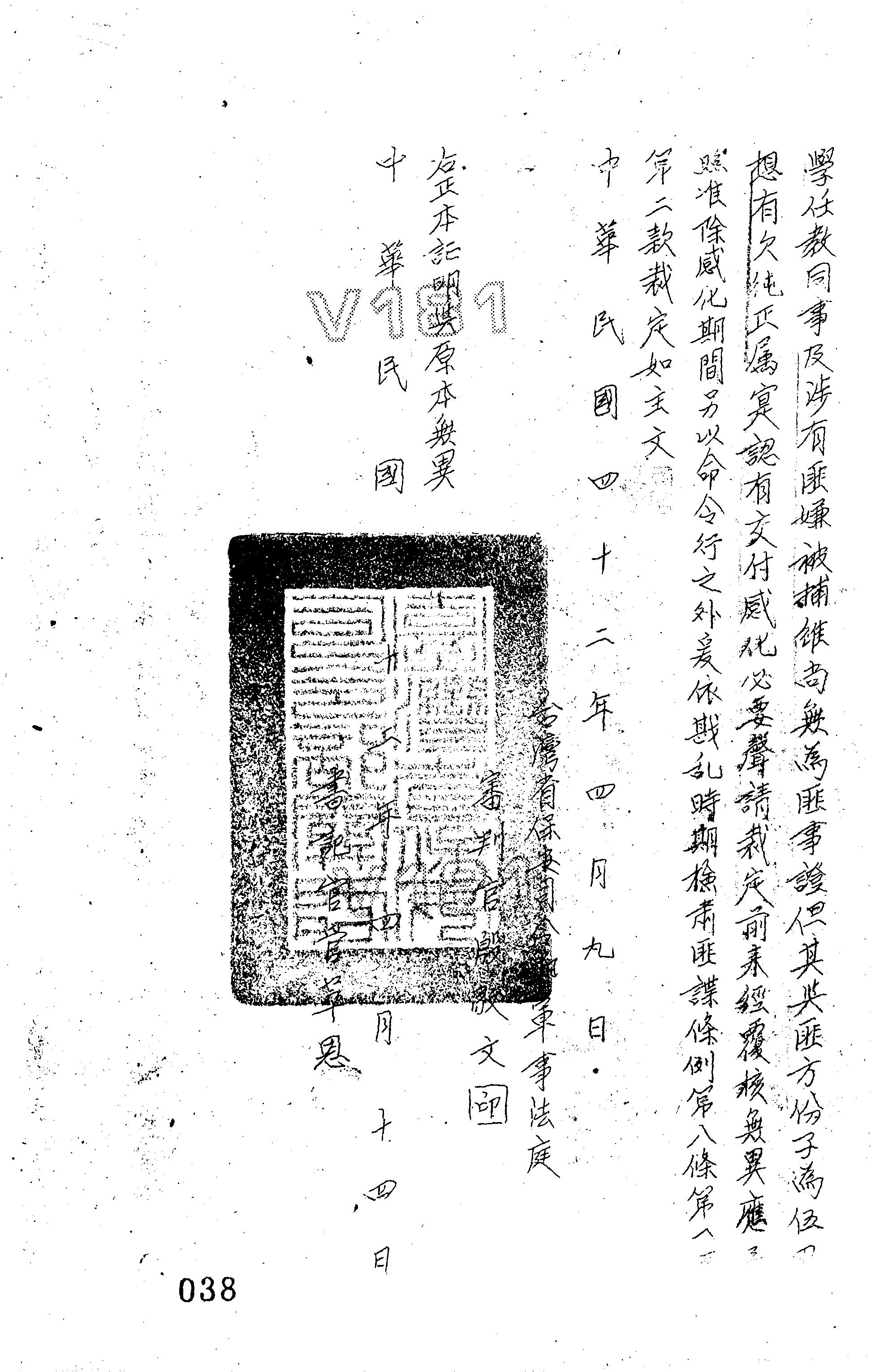 臺灣省保安司令部42年審聲字第0042號裁定書