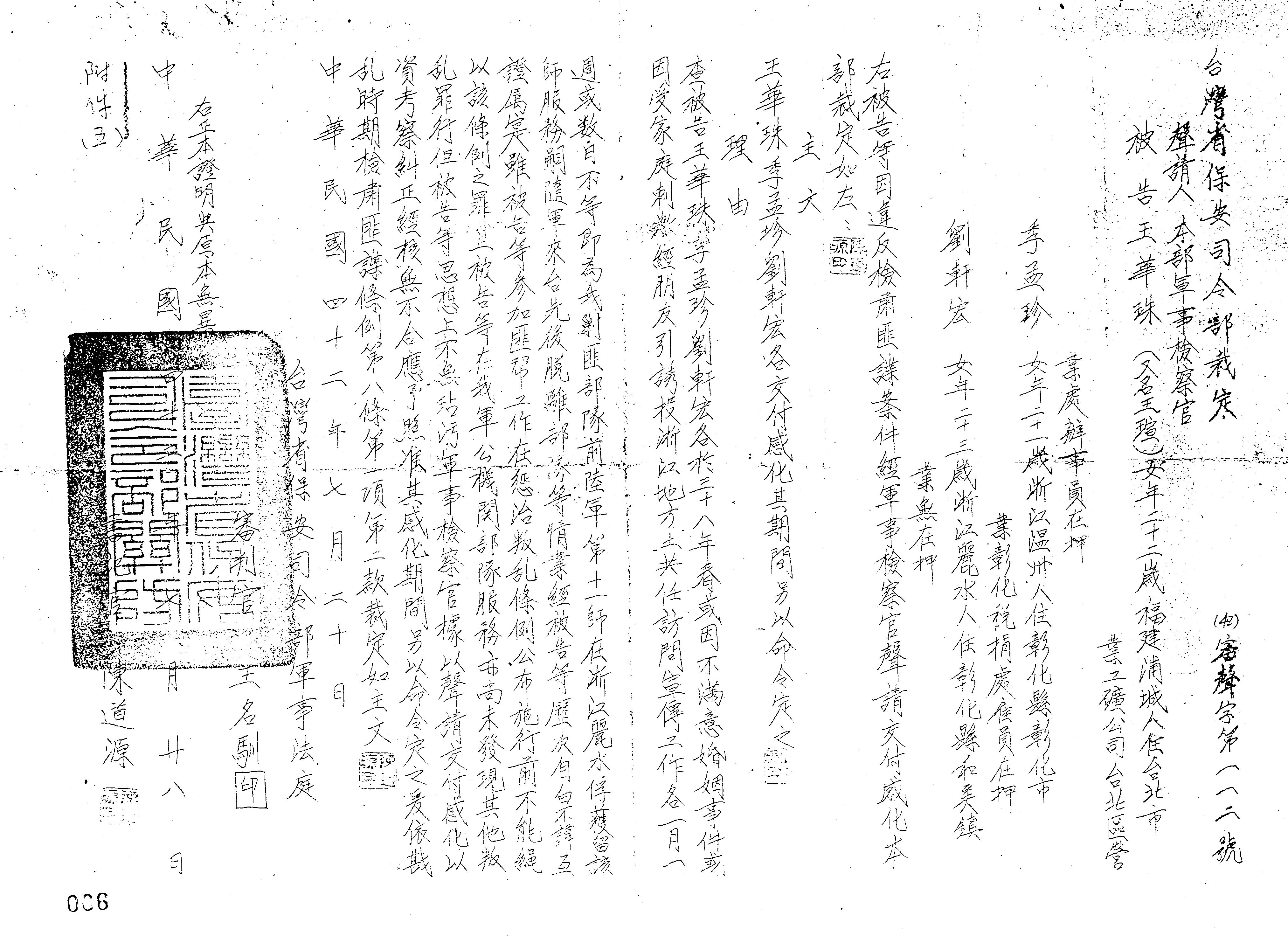 臺灣省保安司令部42年審聲字第0112號裁定書