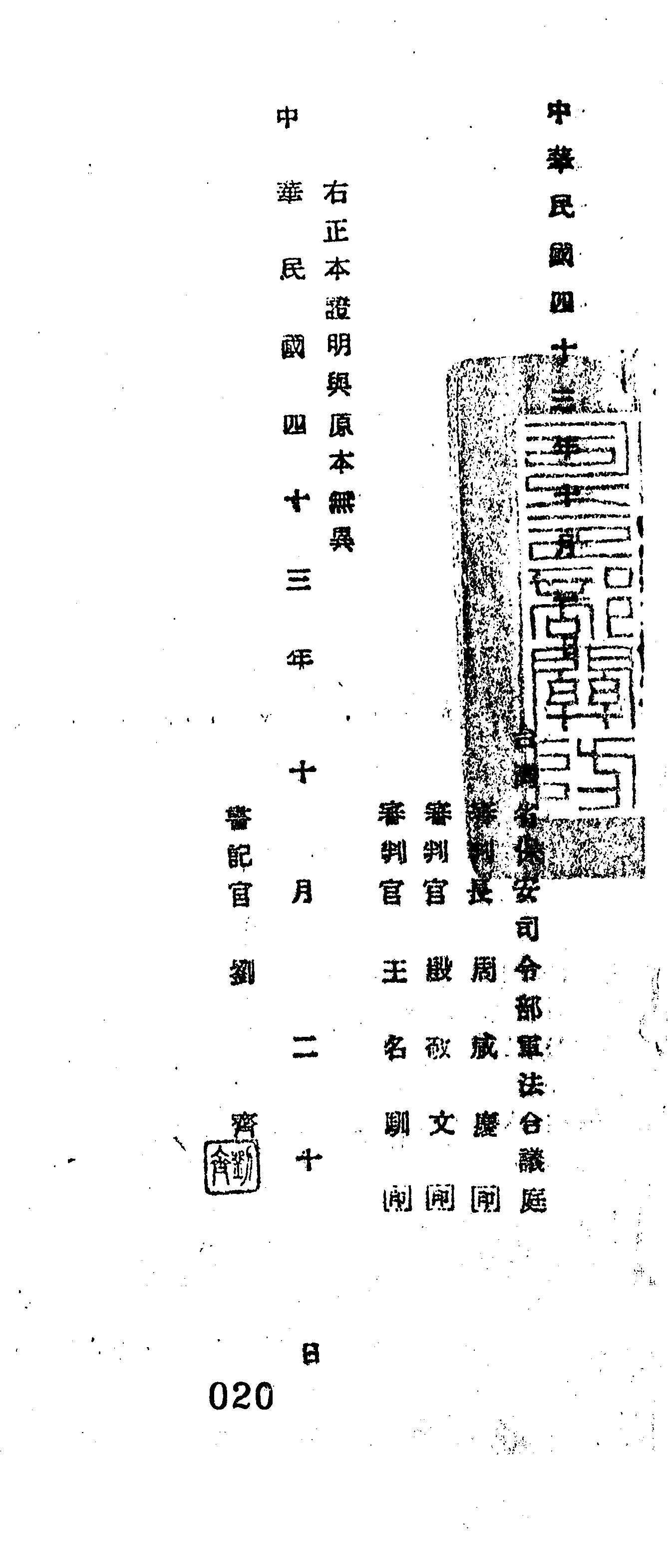 - 裁判書正題名: 臺灣省保安司令部43年審三字第0052號判決書