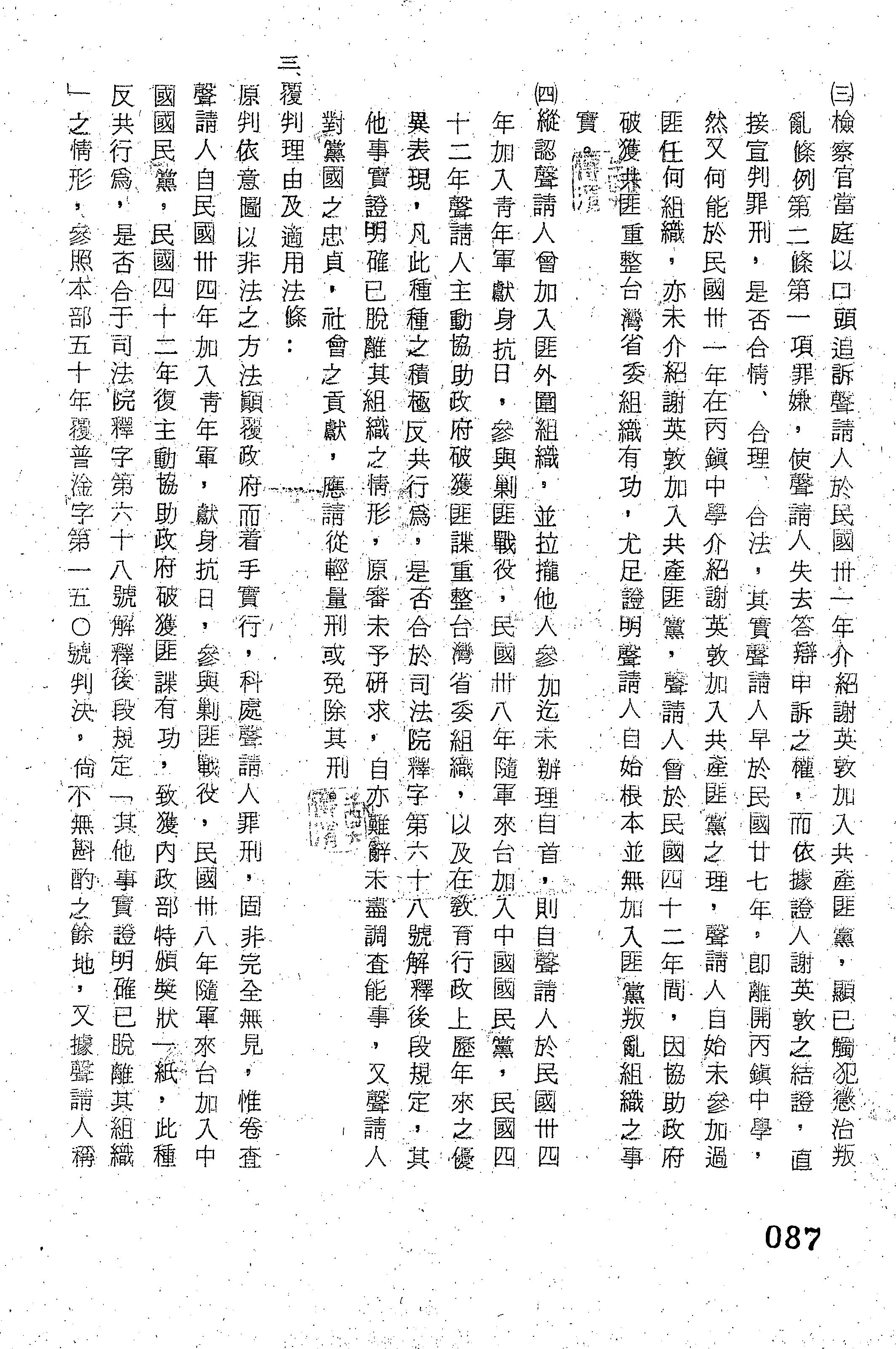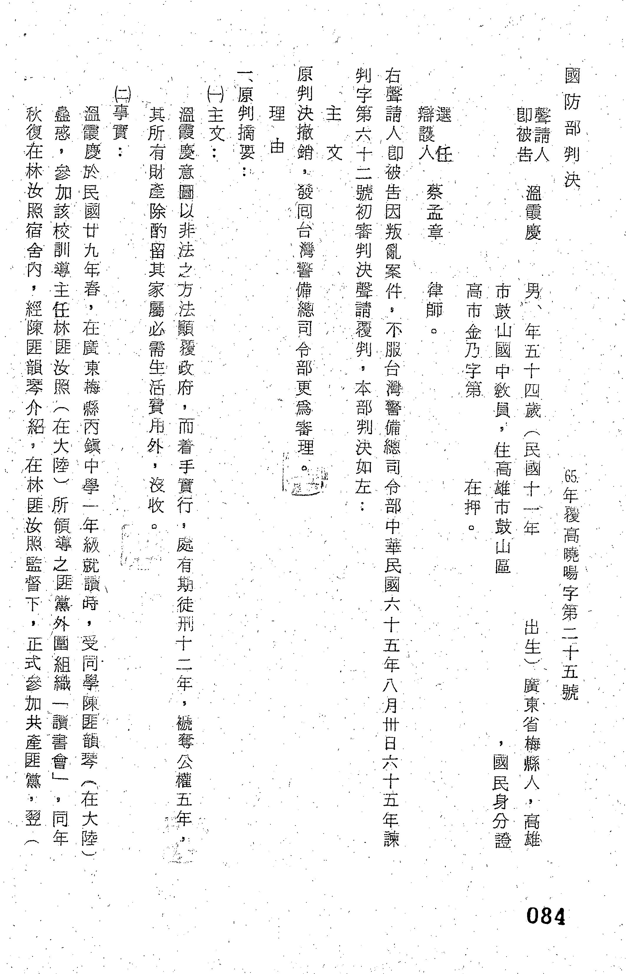 裁判書主文/要旨:原判決撤銷,發回臺灣警備總司令部更為審理。
