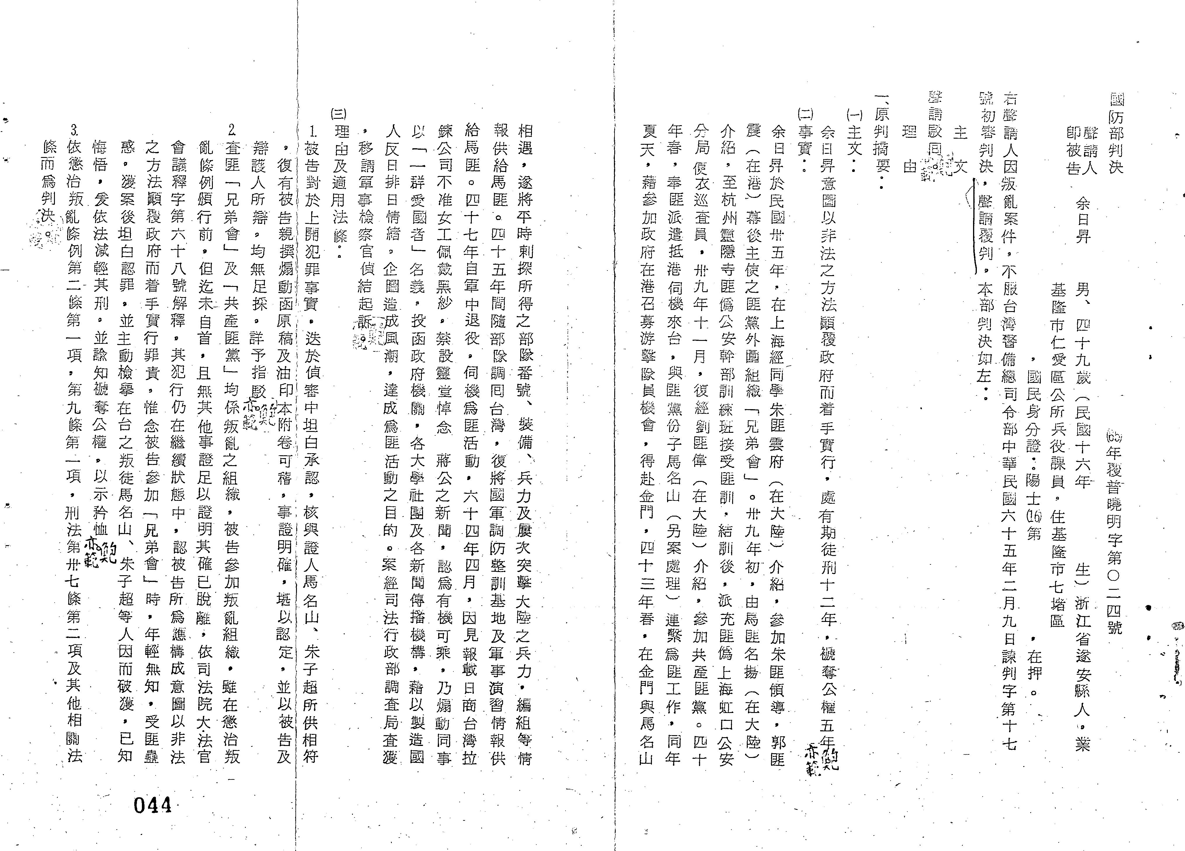 國防部65年覆普曉明字第0024號判決書