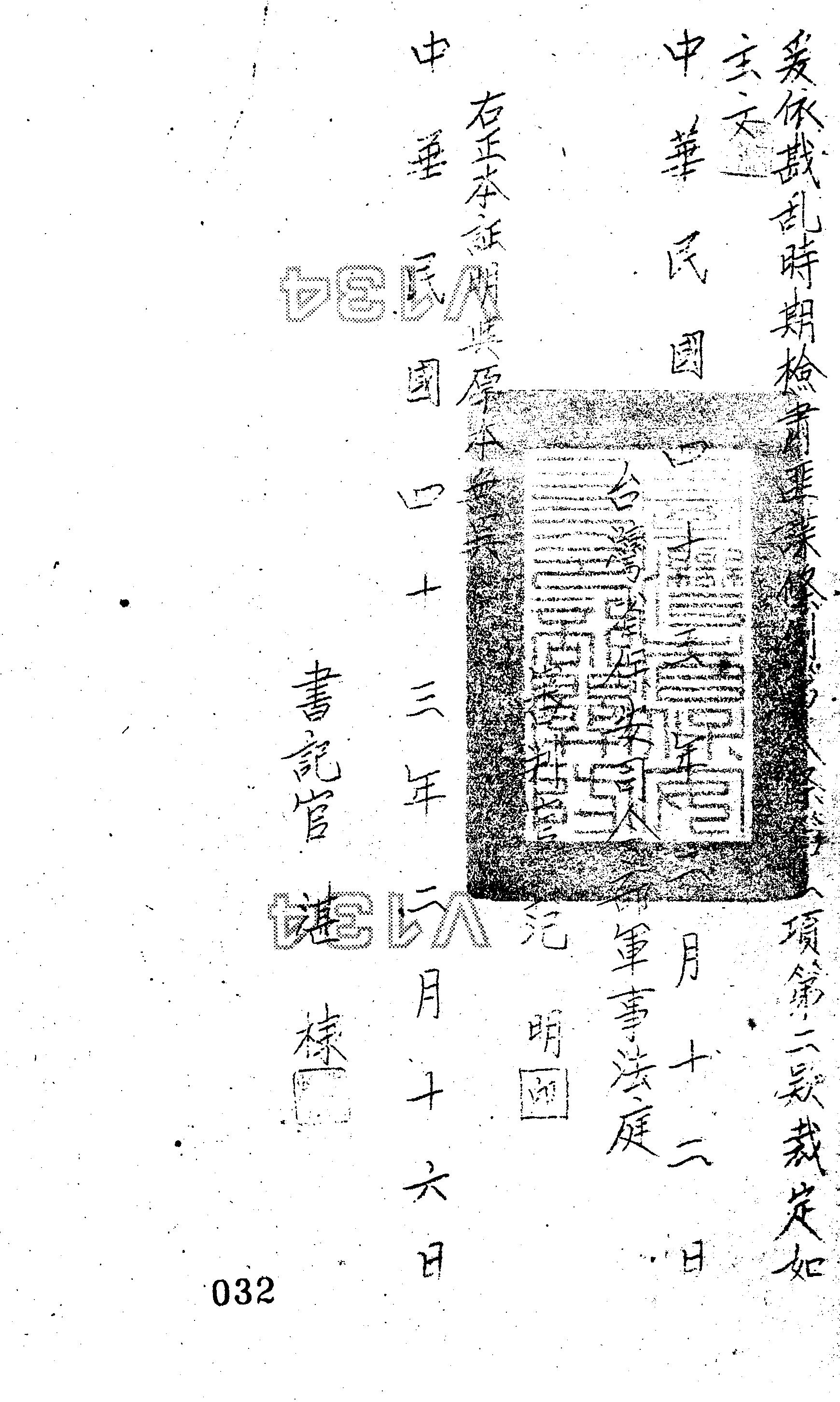臺灣省保安司令部43年審聲字第0034號裁定書