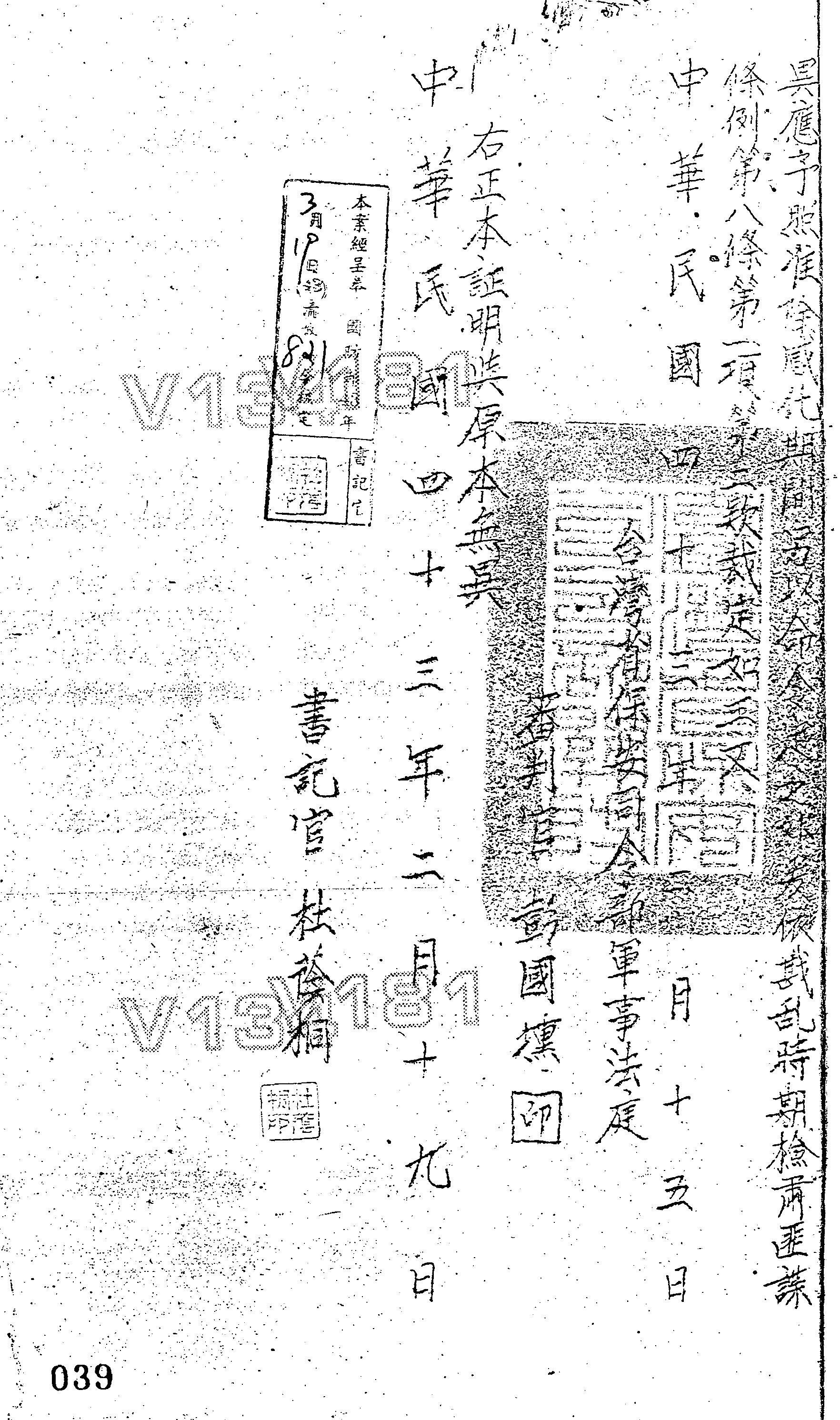 臺灣省保安司令部43年審聲字第0035號裁定書